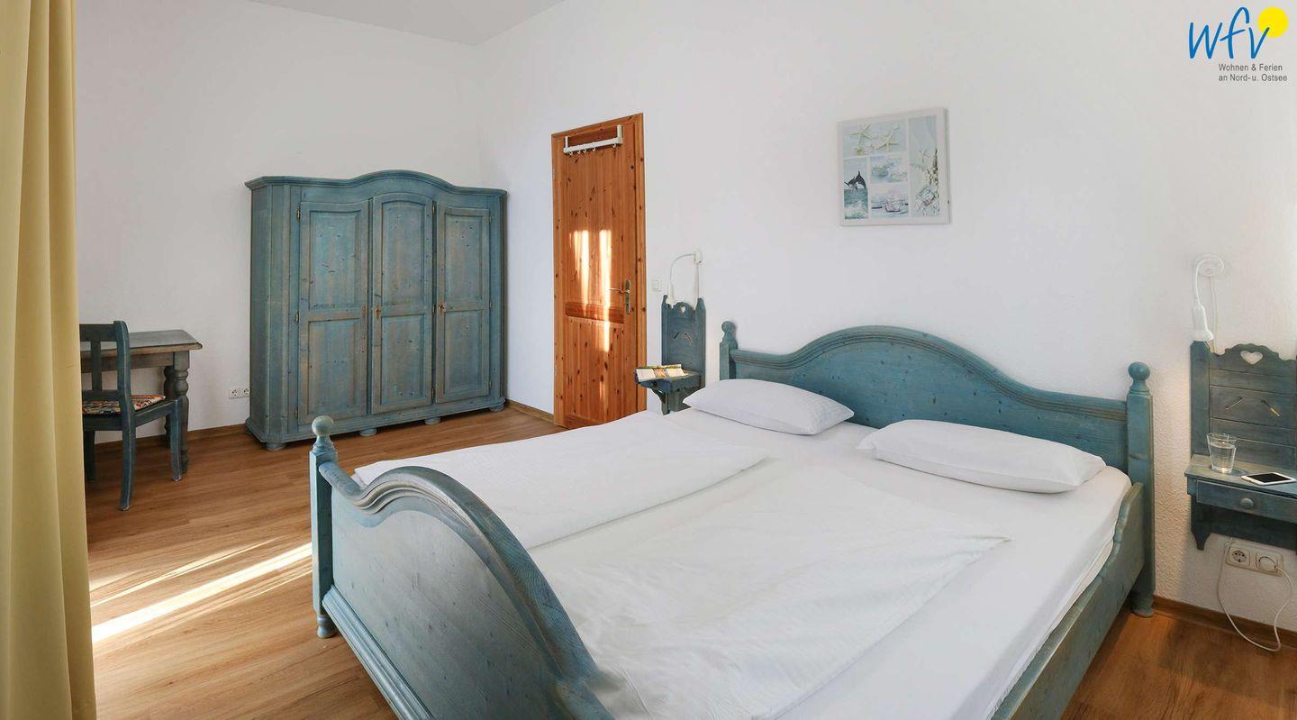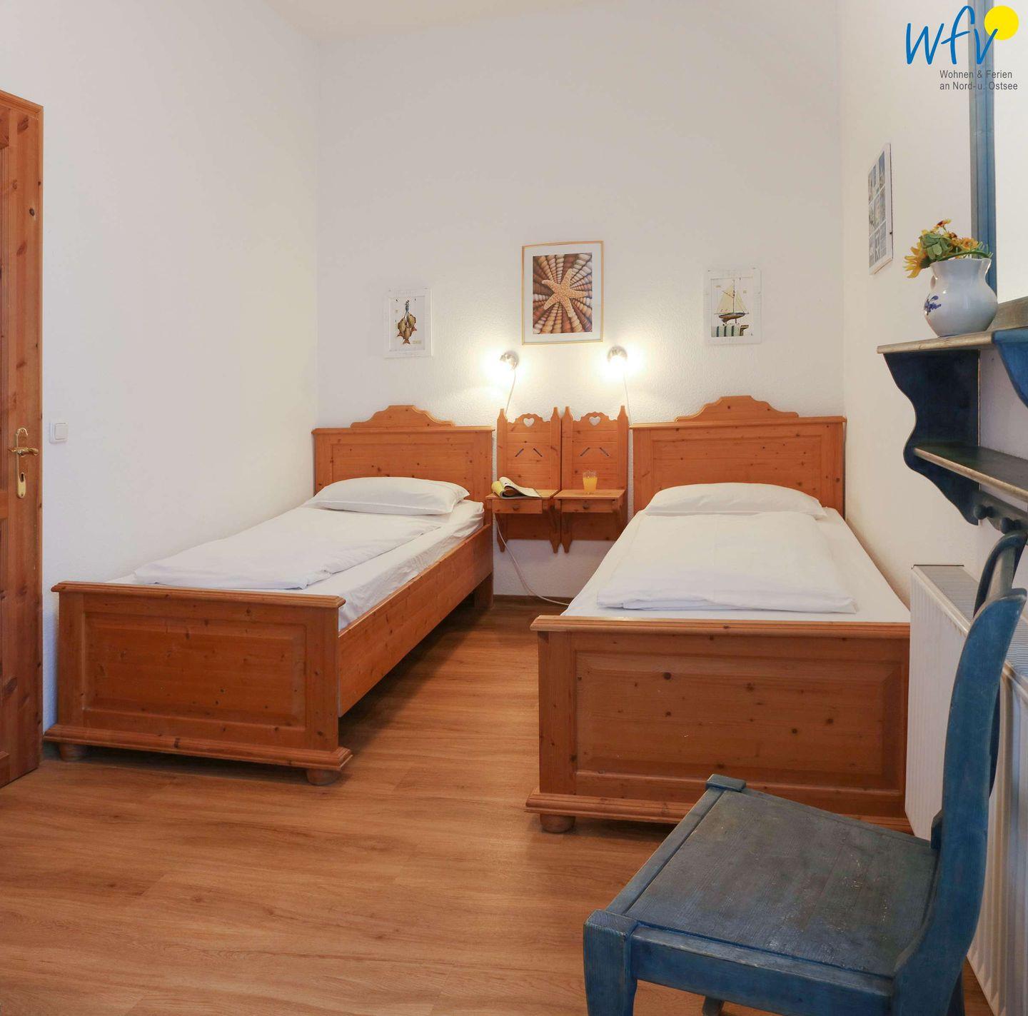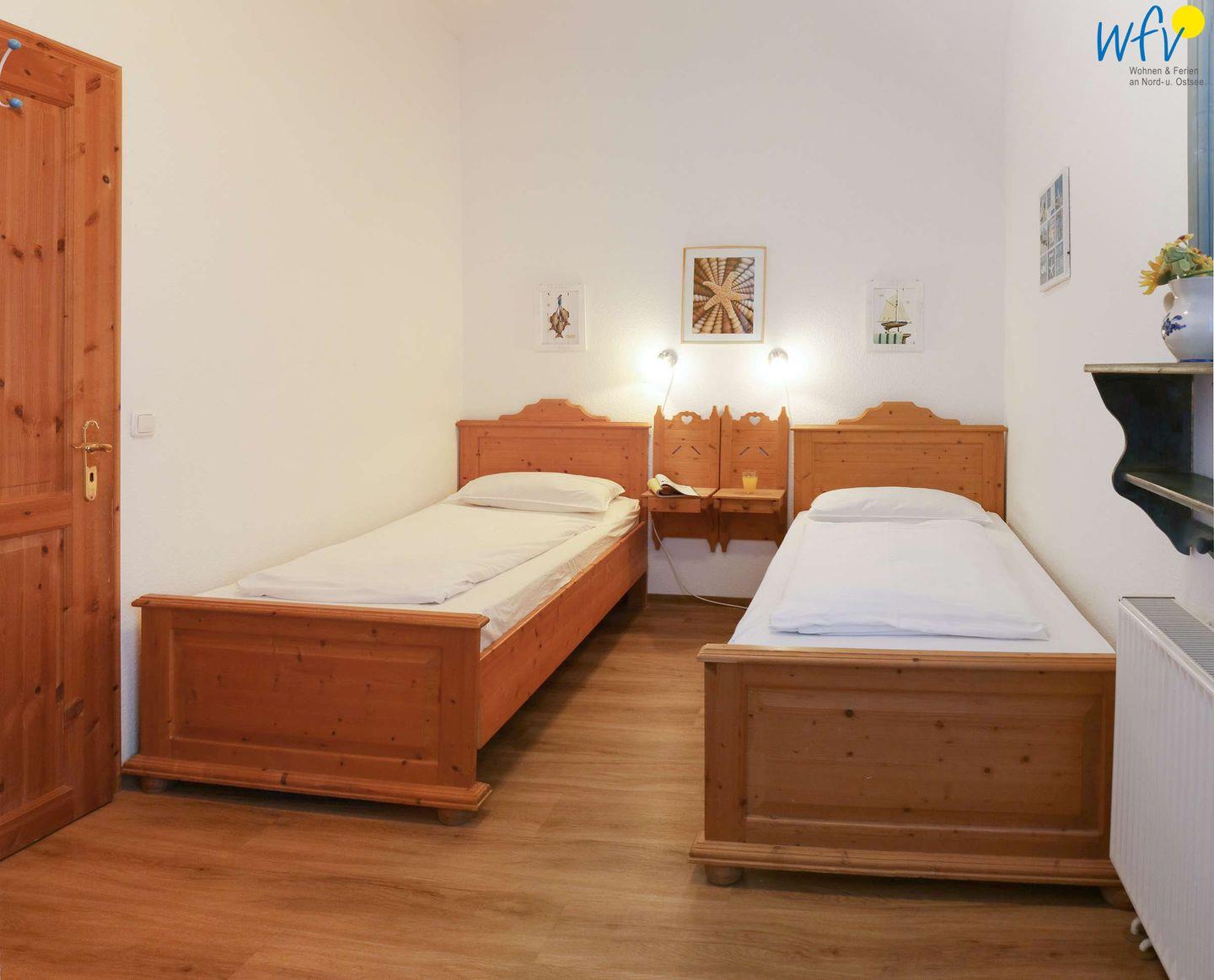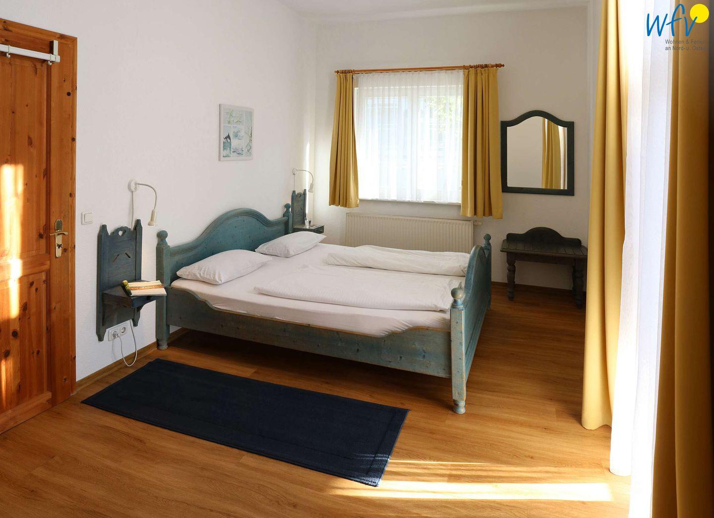 Die zwei separaten Schlafzimmer der Ferienwohnung "Seepferdchen" verfügen über ein Doppelbett bzw. zwei Einzelbetten, sodass auch bei einem Aufenthalt zu mehreren Personen angenehme Rückzugsmöglichkeiten bestehen.