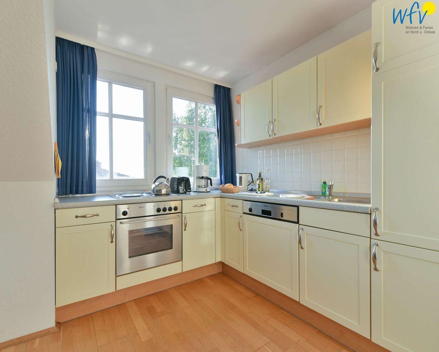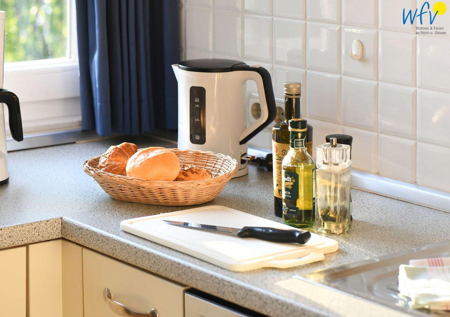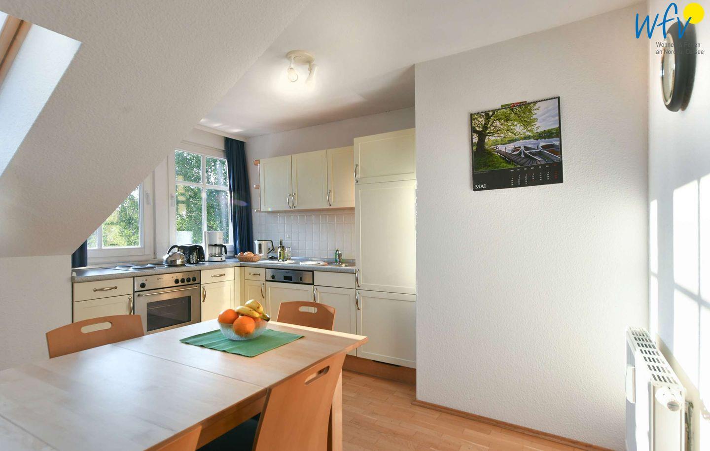 Für gemeinsame Kochabende ist die integrierte Küche komplett ausgestattet (u.a. mit Herd, Backofen und Spülmaschine). Der große Esstisch lädt zu gemeinsamen Mahlzeiten ein.