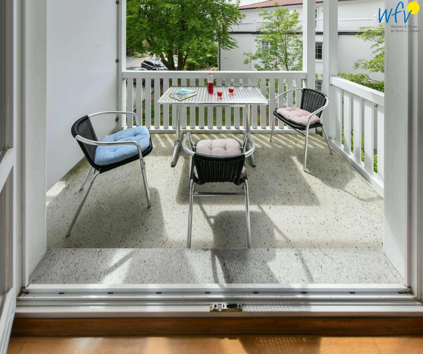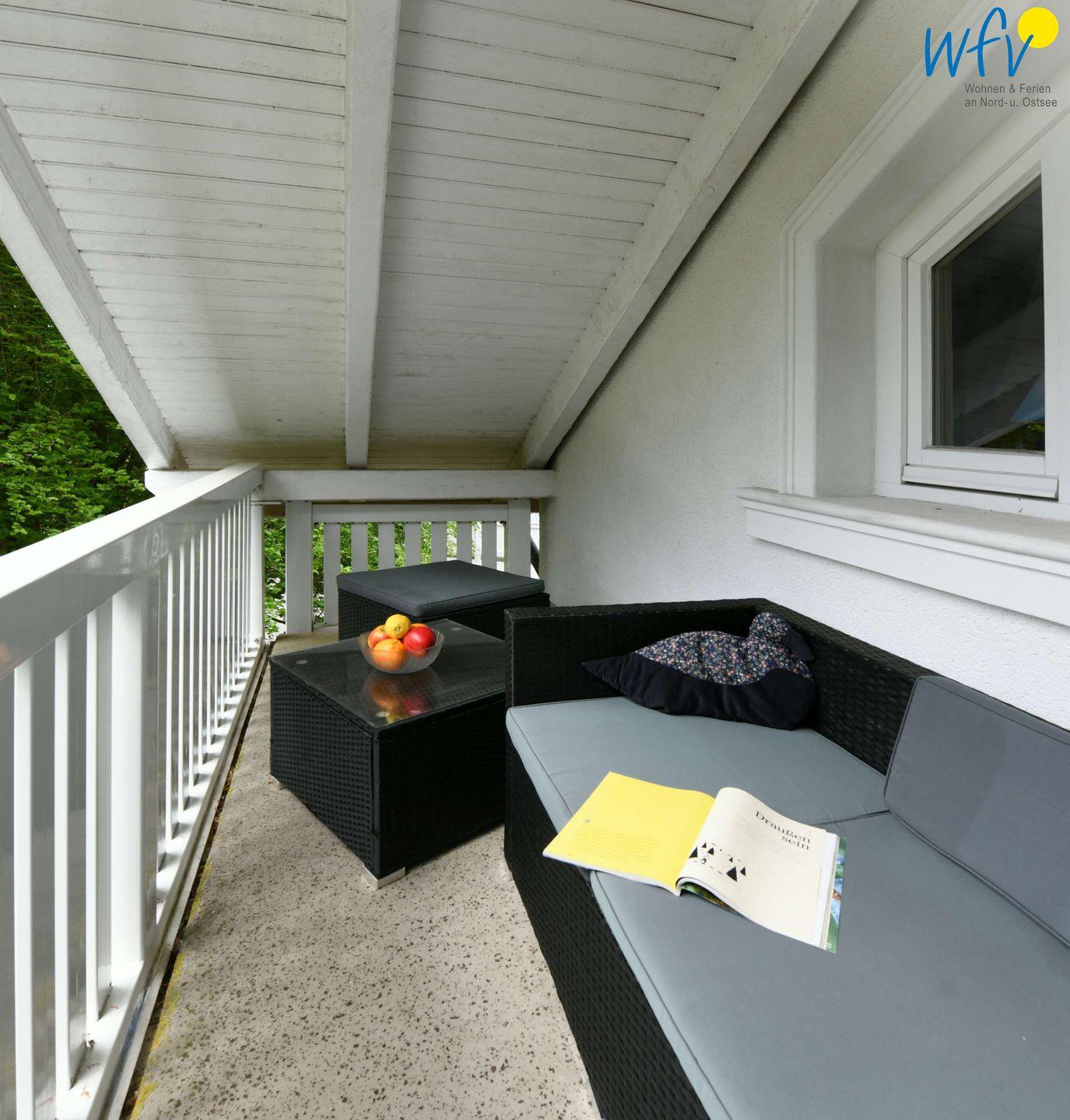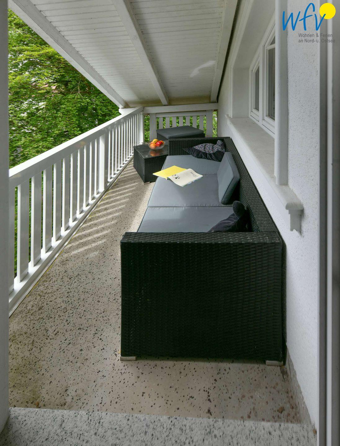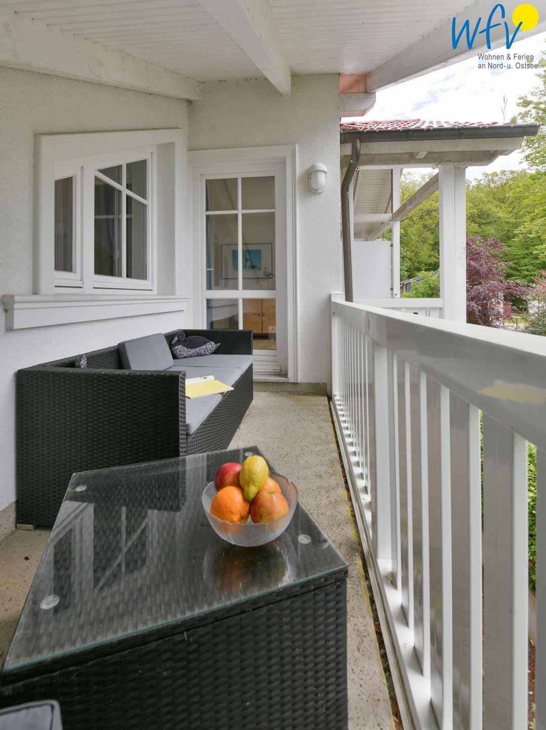 Das Highlight der Rügener Ferienwohnung sind die zwei sonnigen Süd-Balkone! Von hier aus haben Sie einen malerischen Blick auf die angrenzenden Buchenwälder der Granitz.