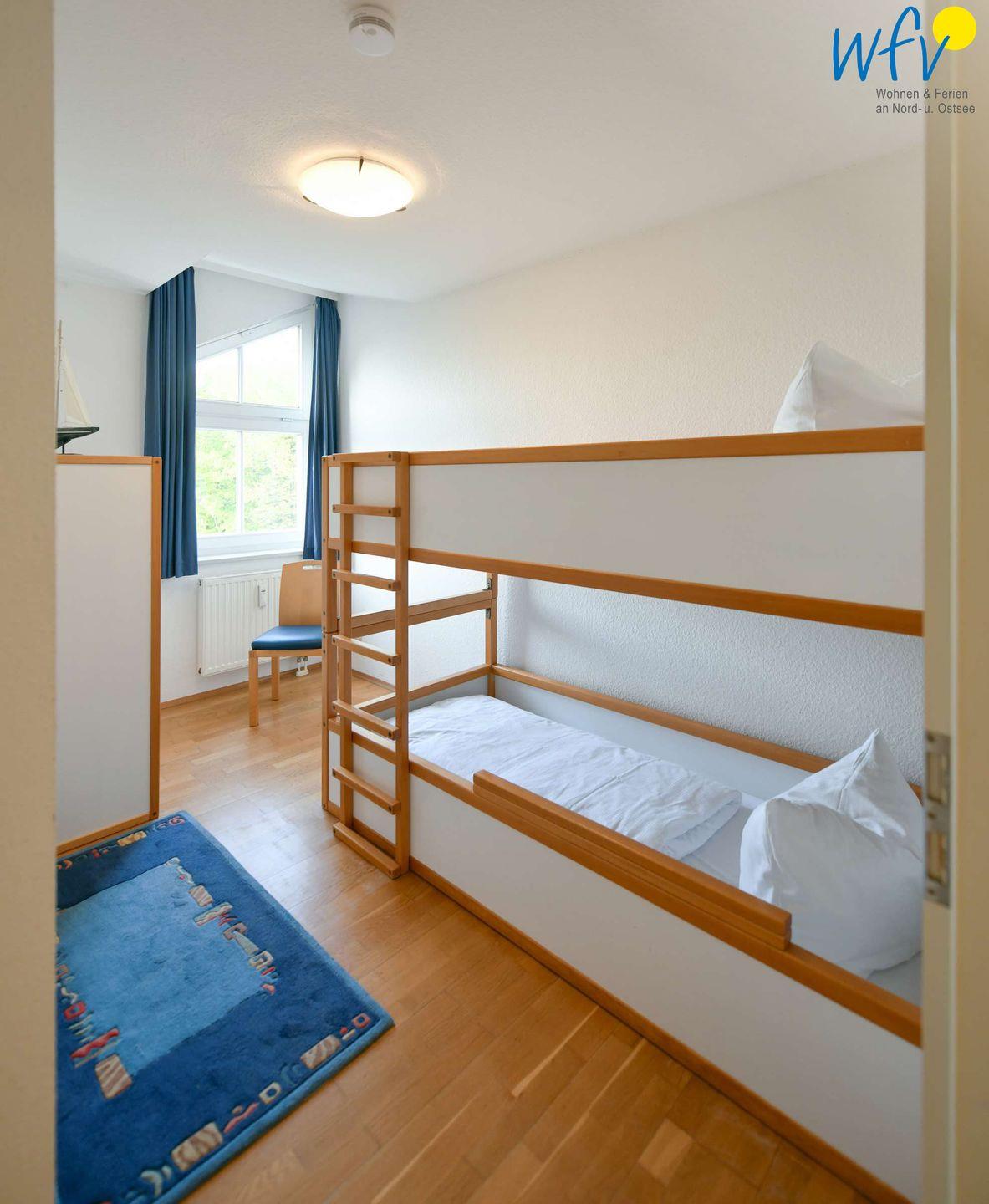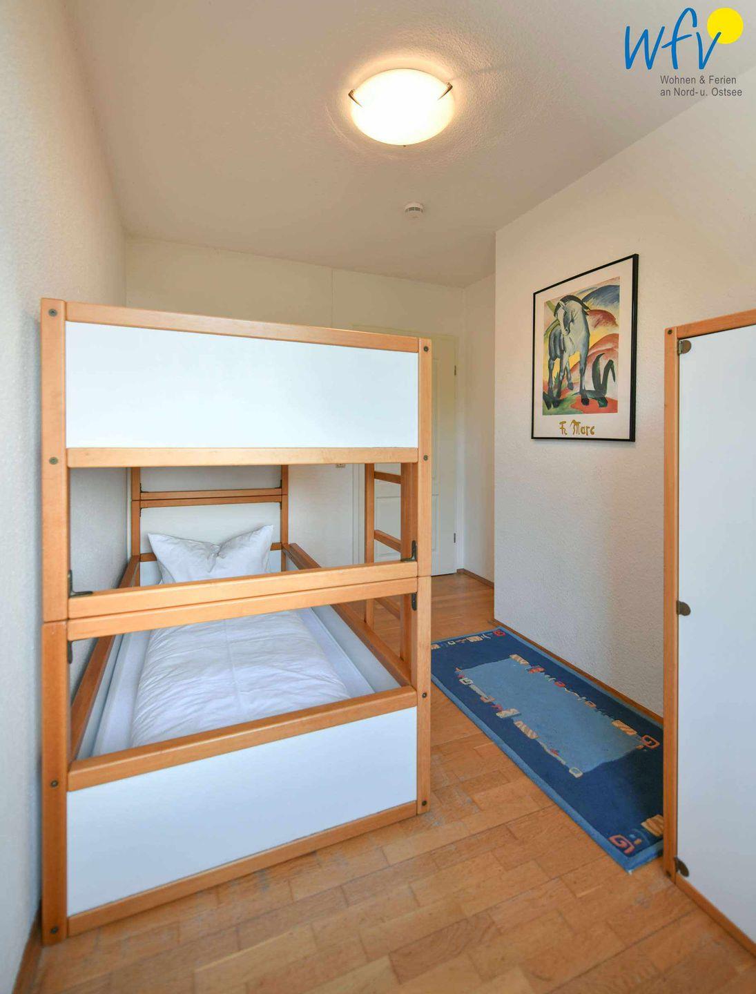 Die zwei separaten Schlafzimmer sind mit einem Doppelbett bzw. einem Etagenbett eingerichtet. Für eine weitere Personen steht ein Schlafsofa im Wohnzimmer zur Verfügung.