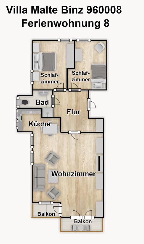 Komfortable Ferienwohnung in Binz mit zwei Balkonen und Blick auf den Granitzer Buchenwald.