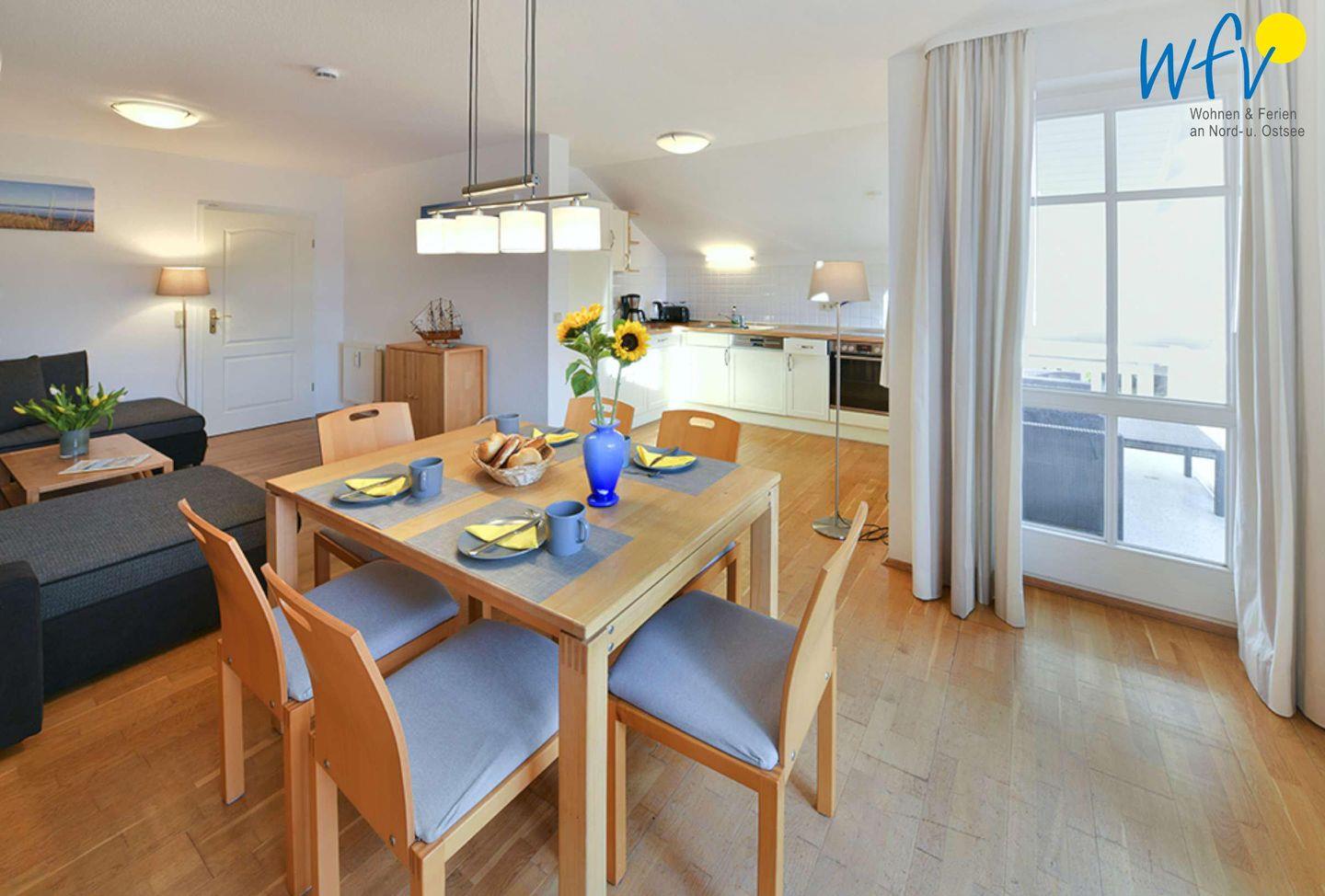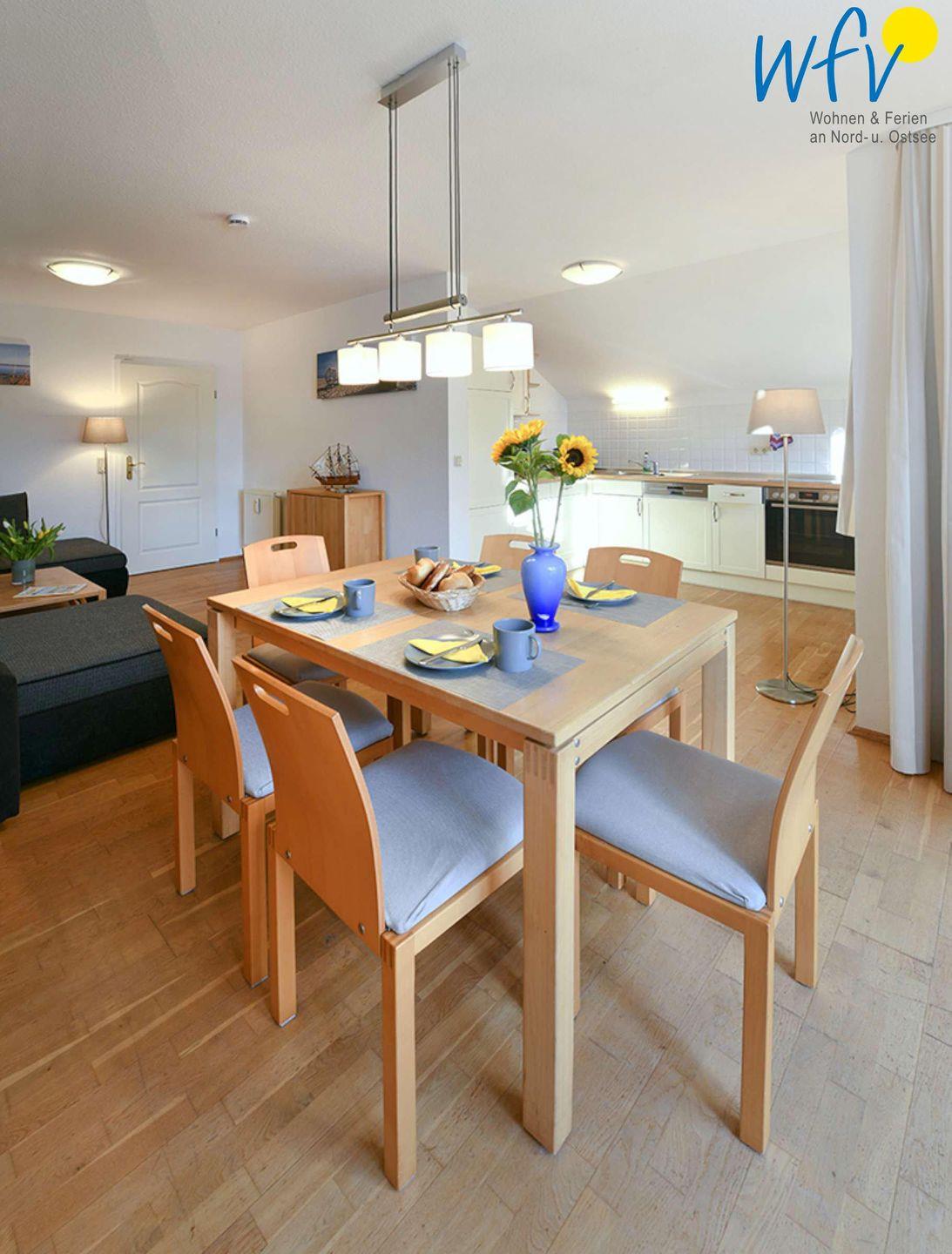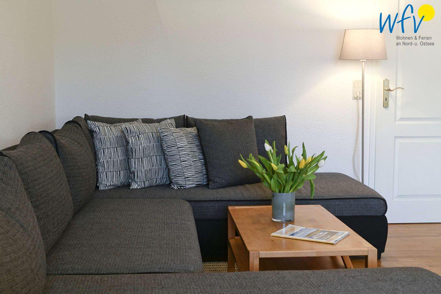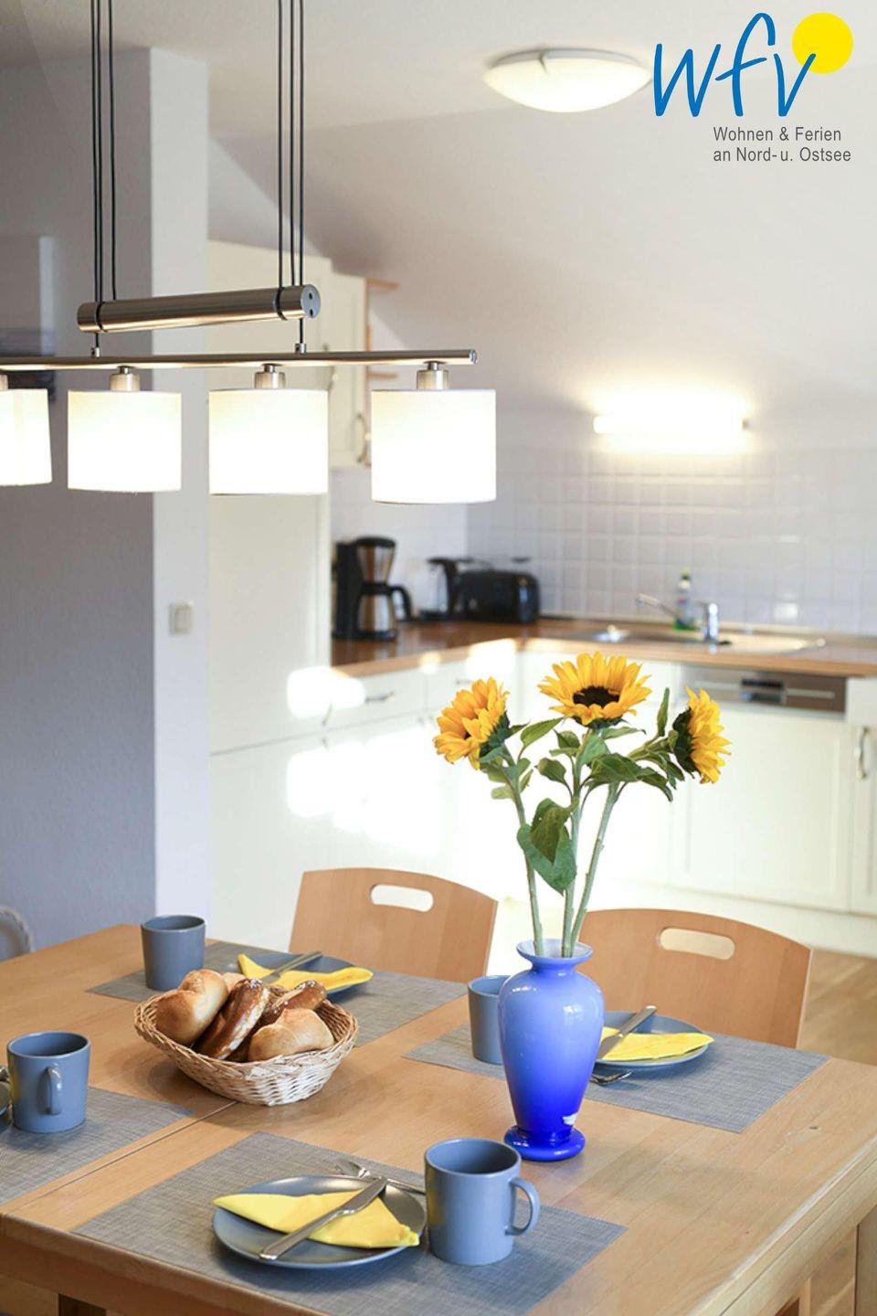 Im Wohnraum laden stilvolle Möbel, eine Couchecke sowie ein modernes TV zu gemütlichen gemeinsamen Stunden ein. Oder möchten Sie gerne zusammen kochen? In der gut ausgestatteten Küche (u.a. mit Herd, Backofen, Mikrowelle und Spülmaschine) lassen sich köstliche Leckereien für entspannte Urlaubsabende zaubern!