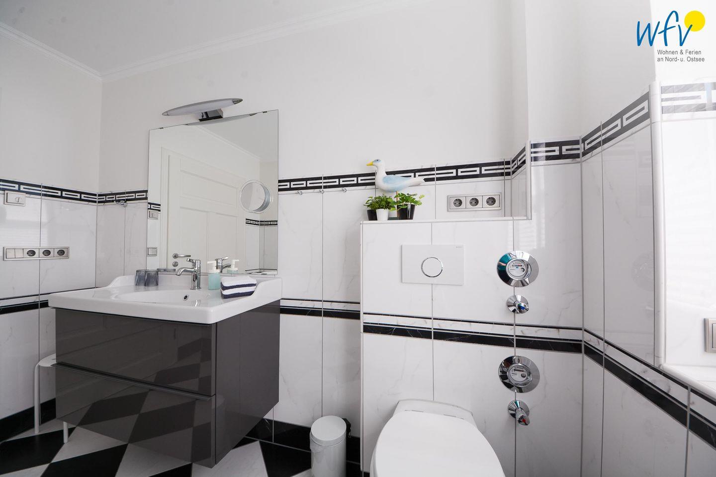 Das gepflegte Bad ergänzt den Wohnkomfort der Ferienwohnung.
