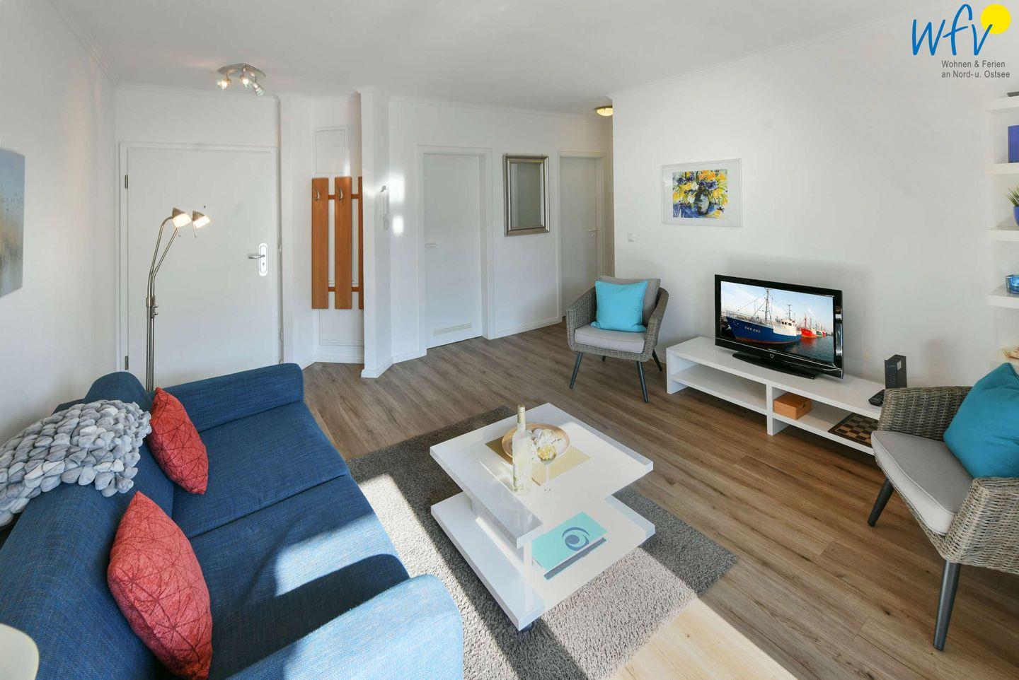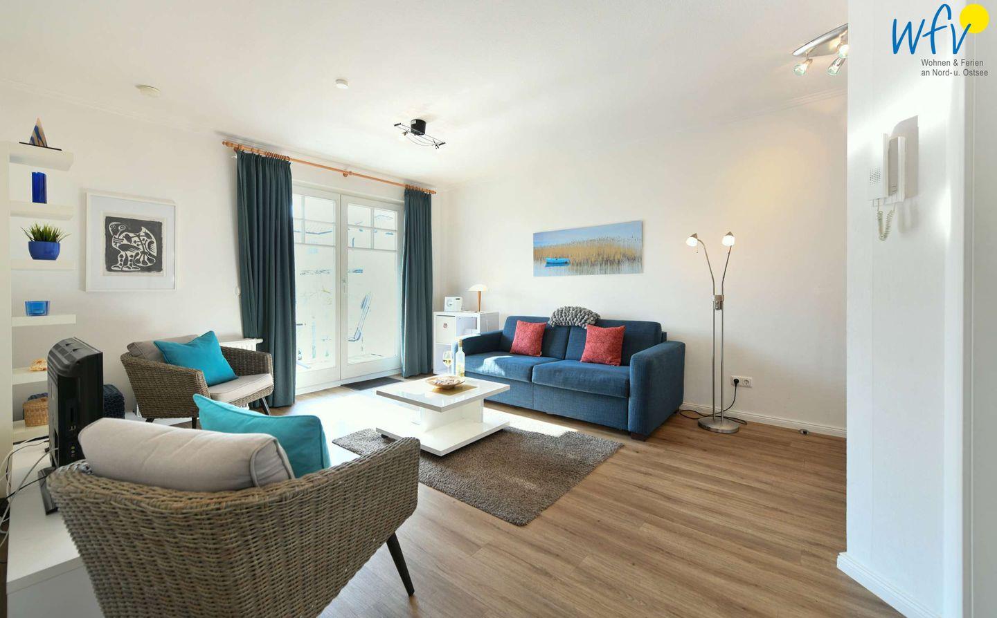 Ob nach der Fahrradtour oder dem Strandtag - in dem gemütlichen Wohnraum können Sie ausgiebig relaxen, gemeinsam beisammen sitzen, Filme schauen oder Musik hören. Zum Surfen vom Smartphone aus empfangen Sie freies WLAN.