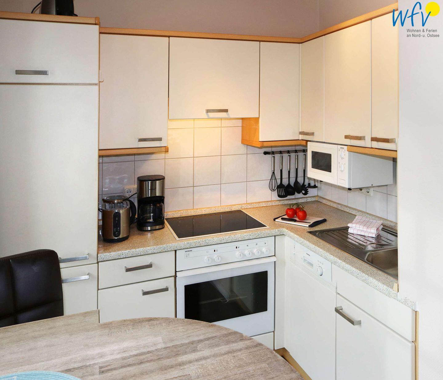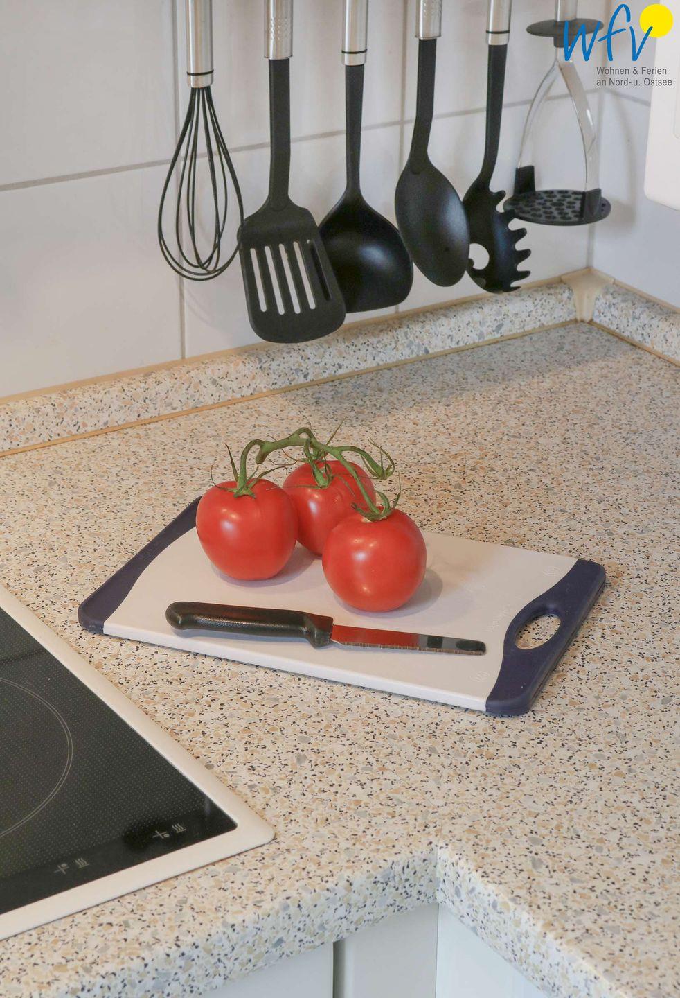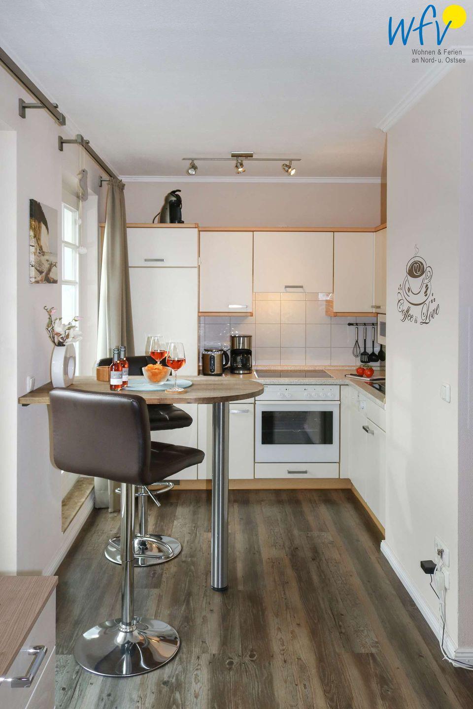 In der integrierten Küche mit Küchentheke können Sie wunderbar Ihre Mahlzeiten genießen.