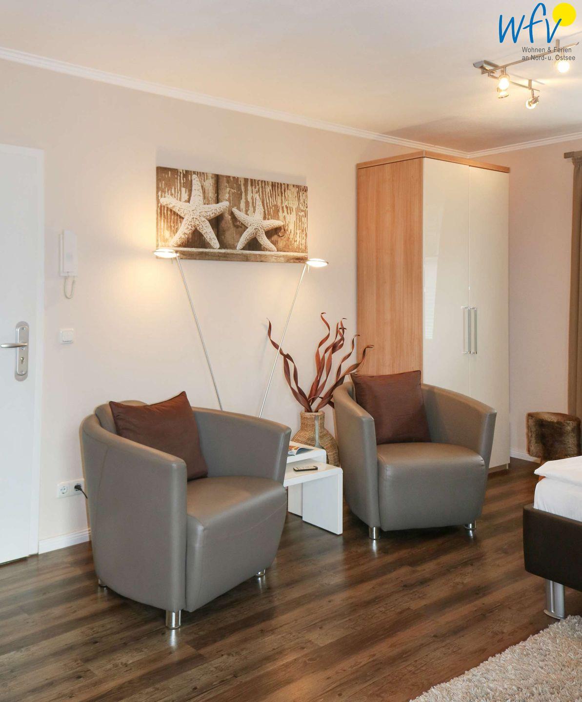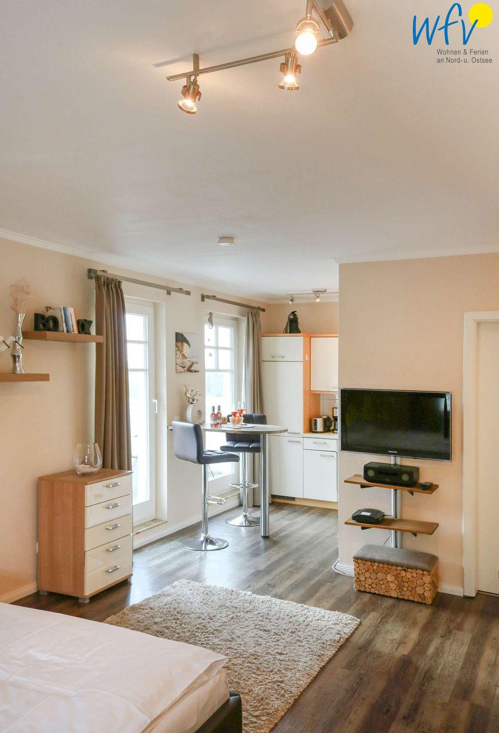 Diese gut geschnittene Ferienwohnung ist mit Liebe zum Detail im modernen Stil eingerichtet. Herrliche Entspannungsmomente erwarten Sie auf der sonnigen möblierten Terrasse oder im gemütlichen Wohn-/Schlafraum mit Sitzecke und TV.