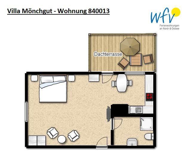 Moderne Ferienwohnung mit Dachterrasse in der Villa Mönchgut, Ostseebad Binz, ideal für entspannte Urlaubstage auf Rügen.