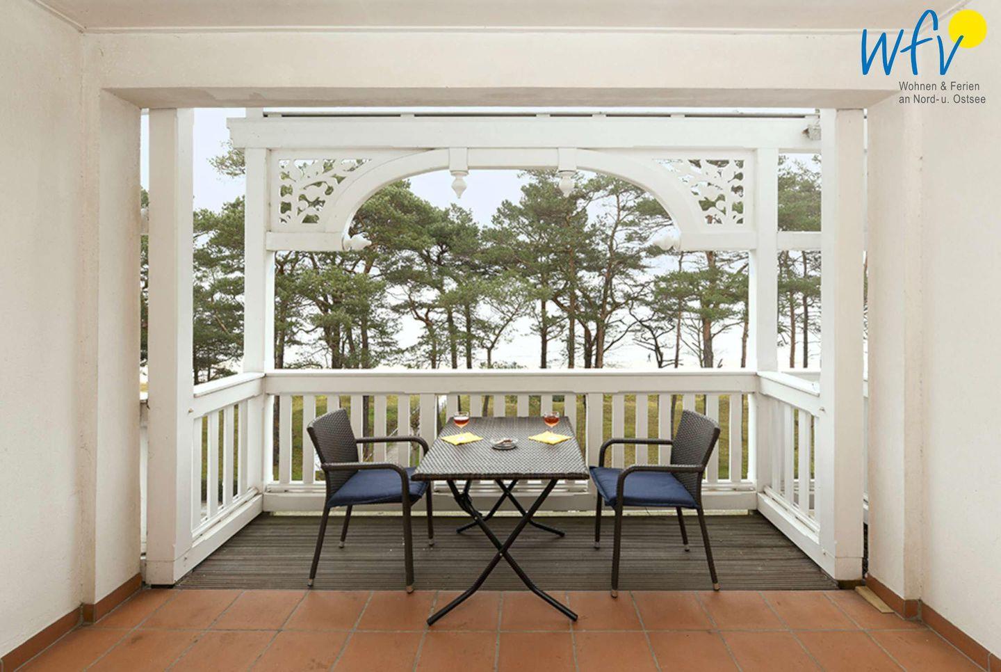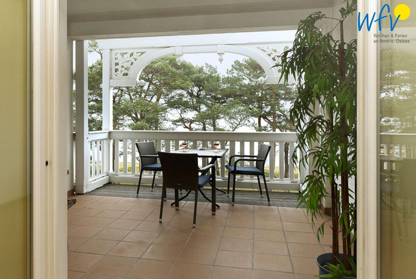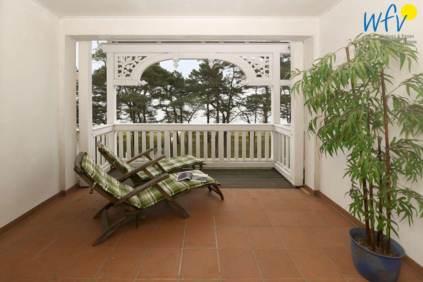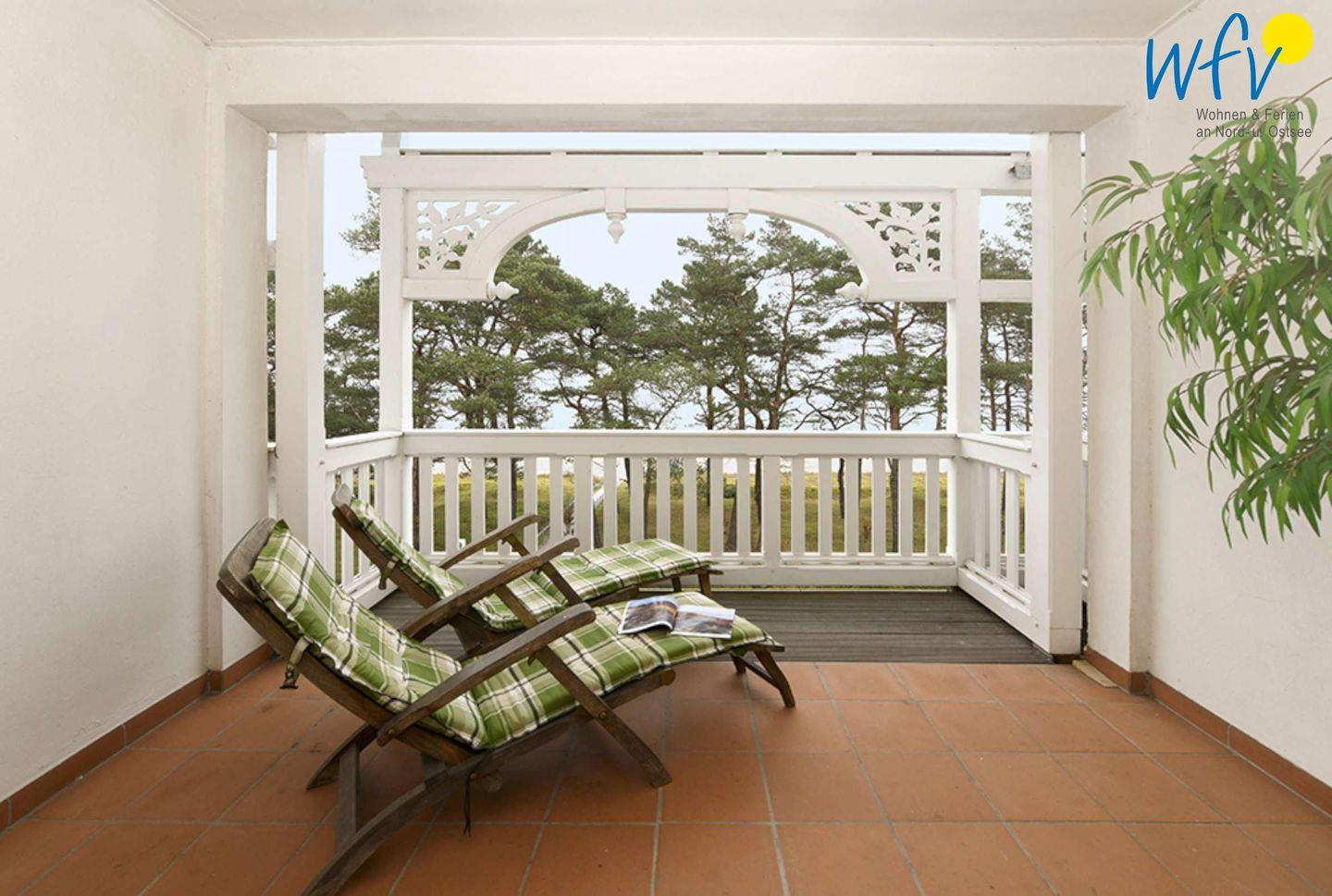 Herrlich relaxen können Sie vor allem auf der überdachten Loggia der Ferienwohnung „Adlerhorst“. Von hier aus haben Sie einen schönen Blick auf den Ostseestrand. Zwei Liegen und eine Sitzgruppe laden zum ausgiebigen Entspannen ein.