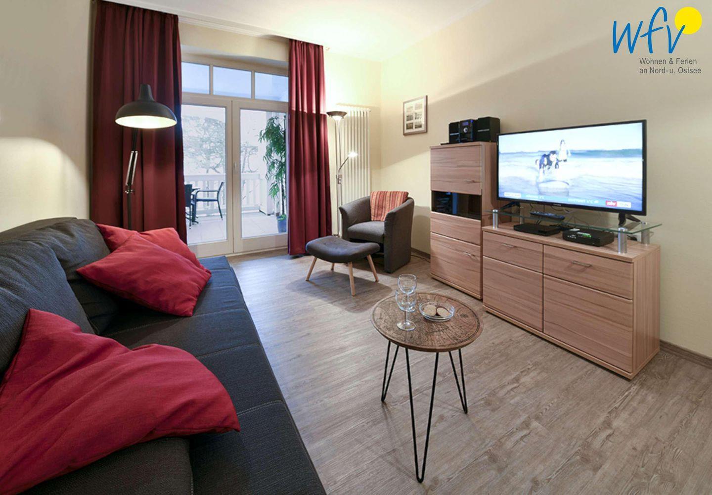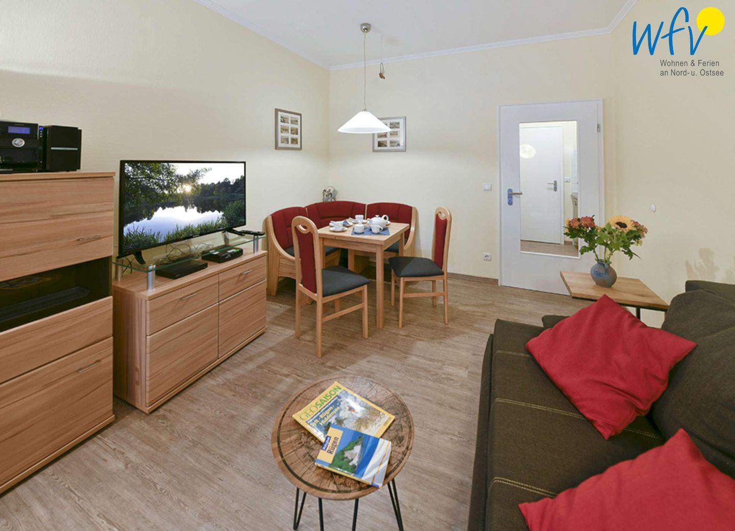 Auch im Wohnraum können Sie gemütliche Stunden verbringen! Es stehen Ihnen ein 40 Zoll TV mit Blu-ray-Player und ein CD-Player sowie freies WLAN zur Verfügung – selbstverständlich kostenlos.