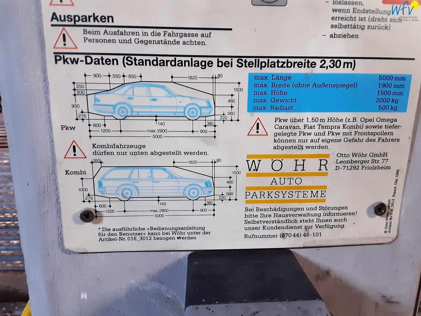 Ihr Fahrzeug kann in der Tiefgarage auf einem Duplexplatz abgestellt werden (das Fahrzeug darf nicht höher als 1,50 m sein). Alternativ können Sie auf dem ca. 500 Meter entfernten Großparkplatz parken (kostenfrei).