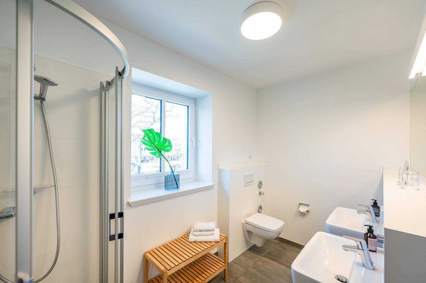 2 Bäder :Dusche, Waschbecken, Toilette,Schrank