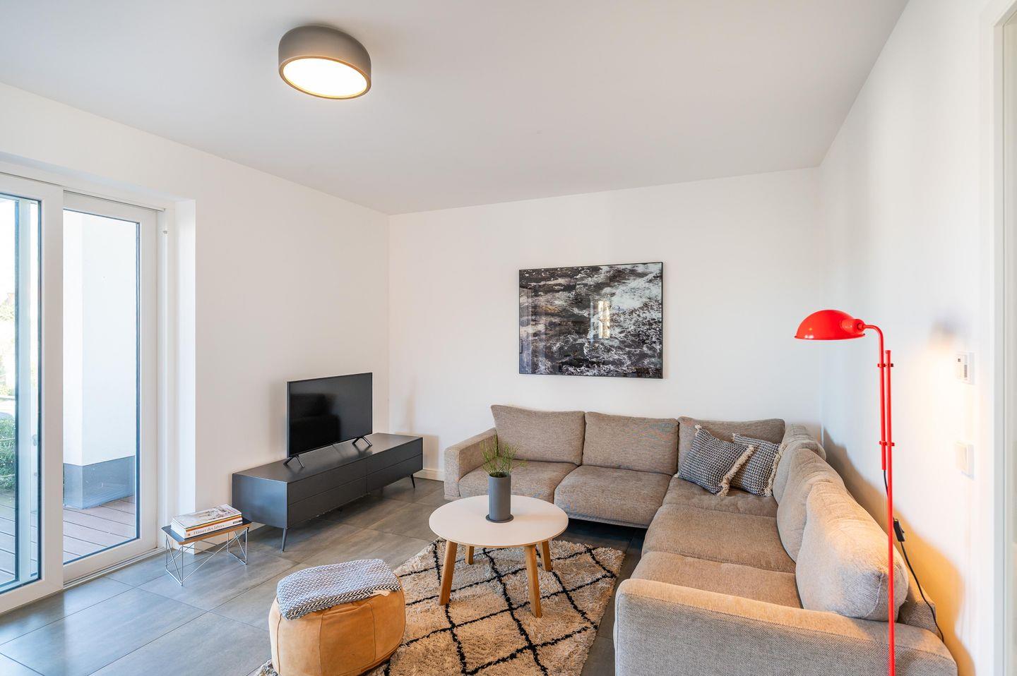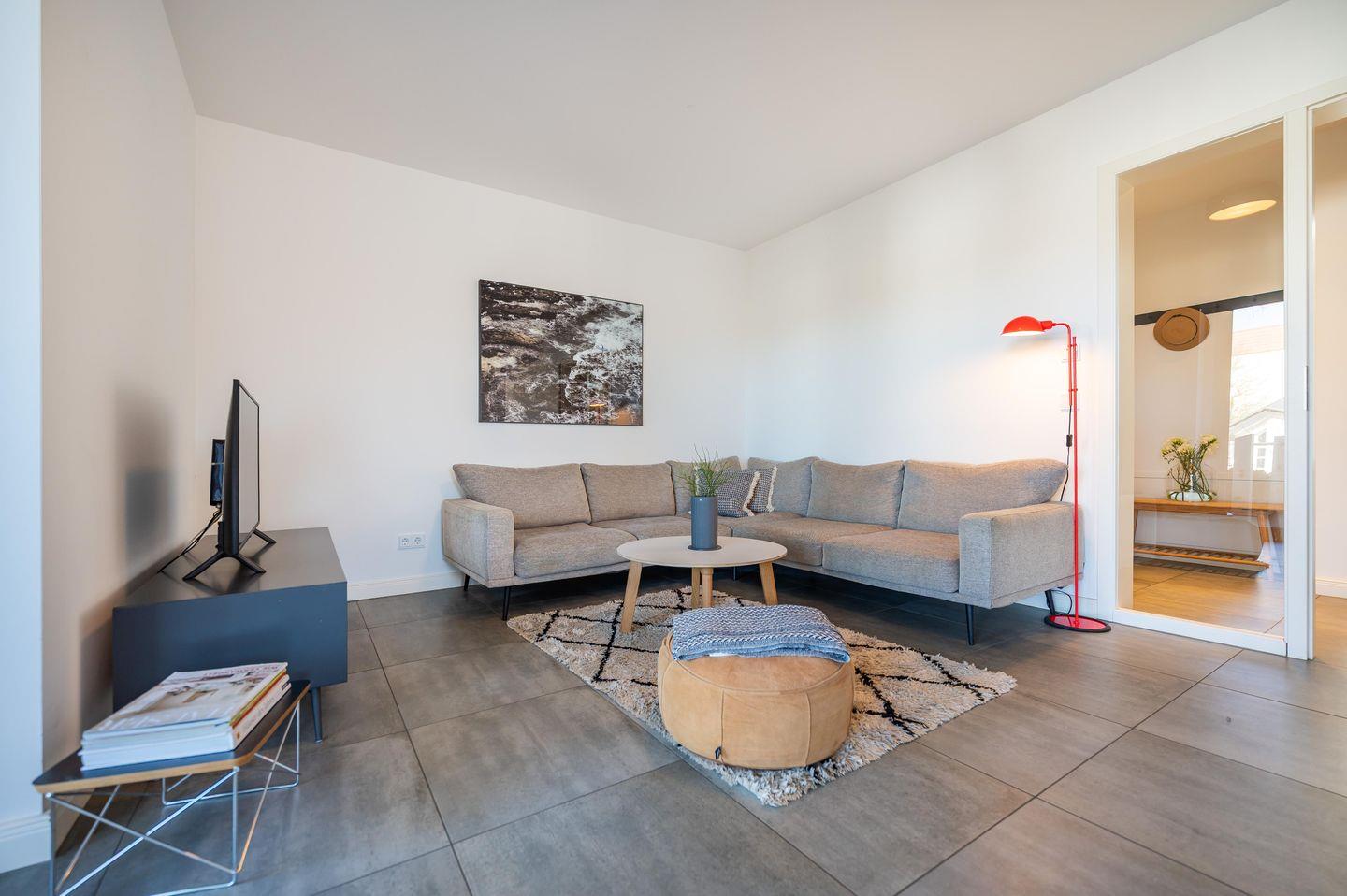 Das Appartement befindet sich im Erdgeschoss der Villa, und zwar vom Haupteingang an der Sonnenstraße (Sackgasse) gesehen rechts. Das Schöne daran ist: Da die Villa auf einer kleinen Düne steht, befinden Sie sich im Erdgeschoss nach normalen Maßstäben bereits im Obergeschoss.