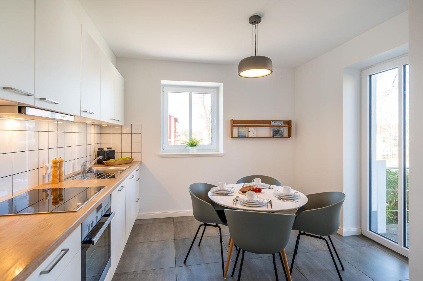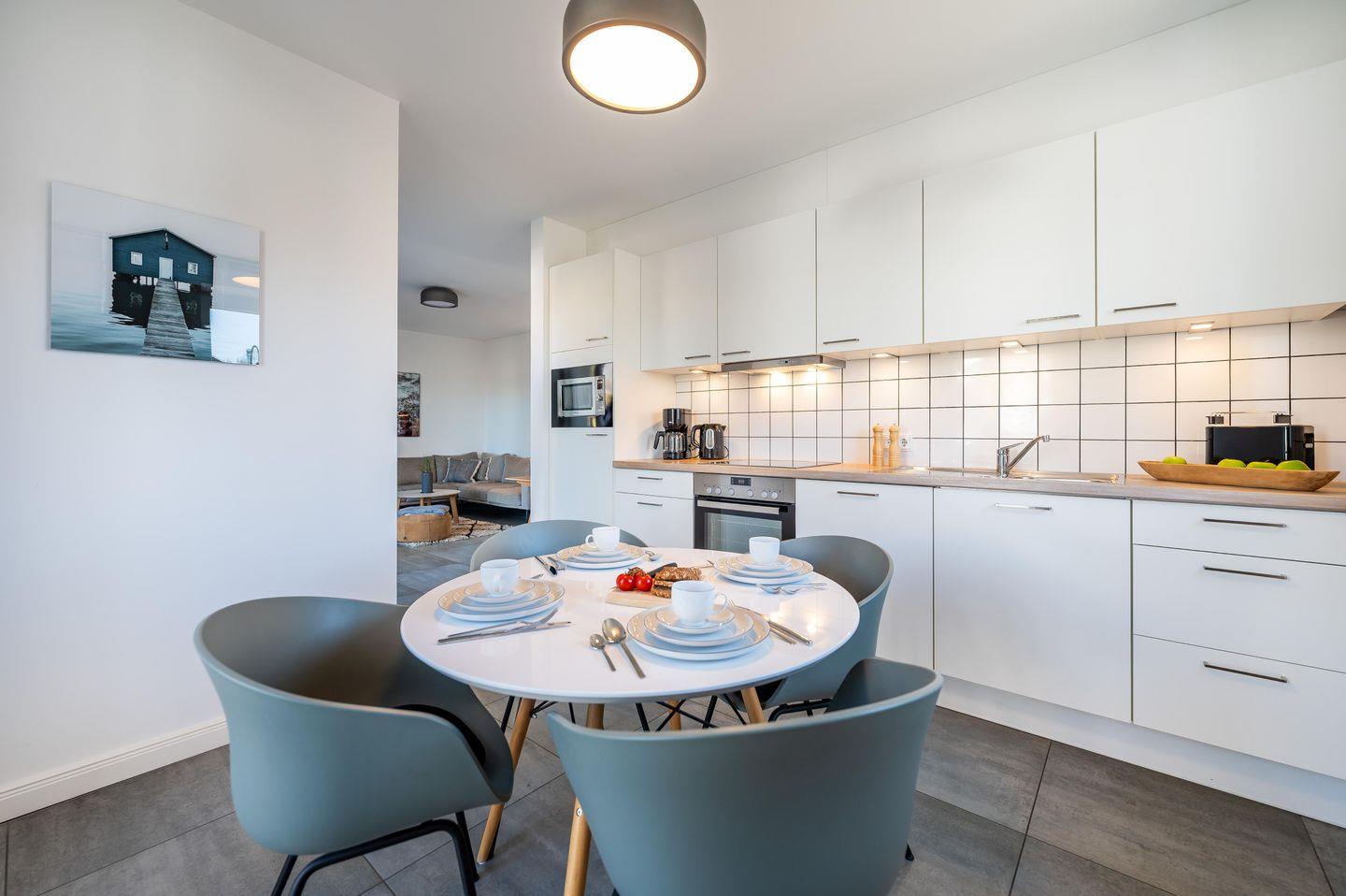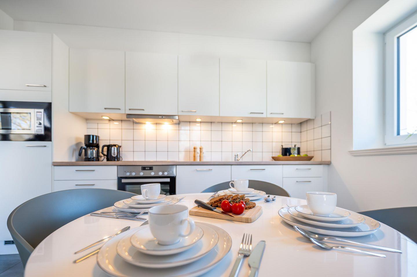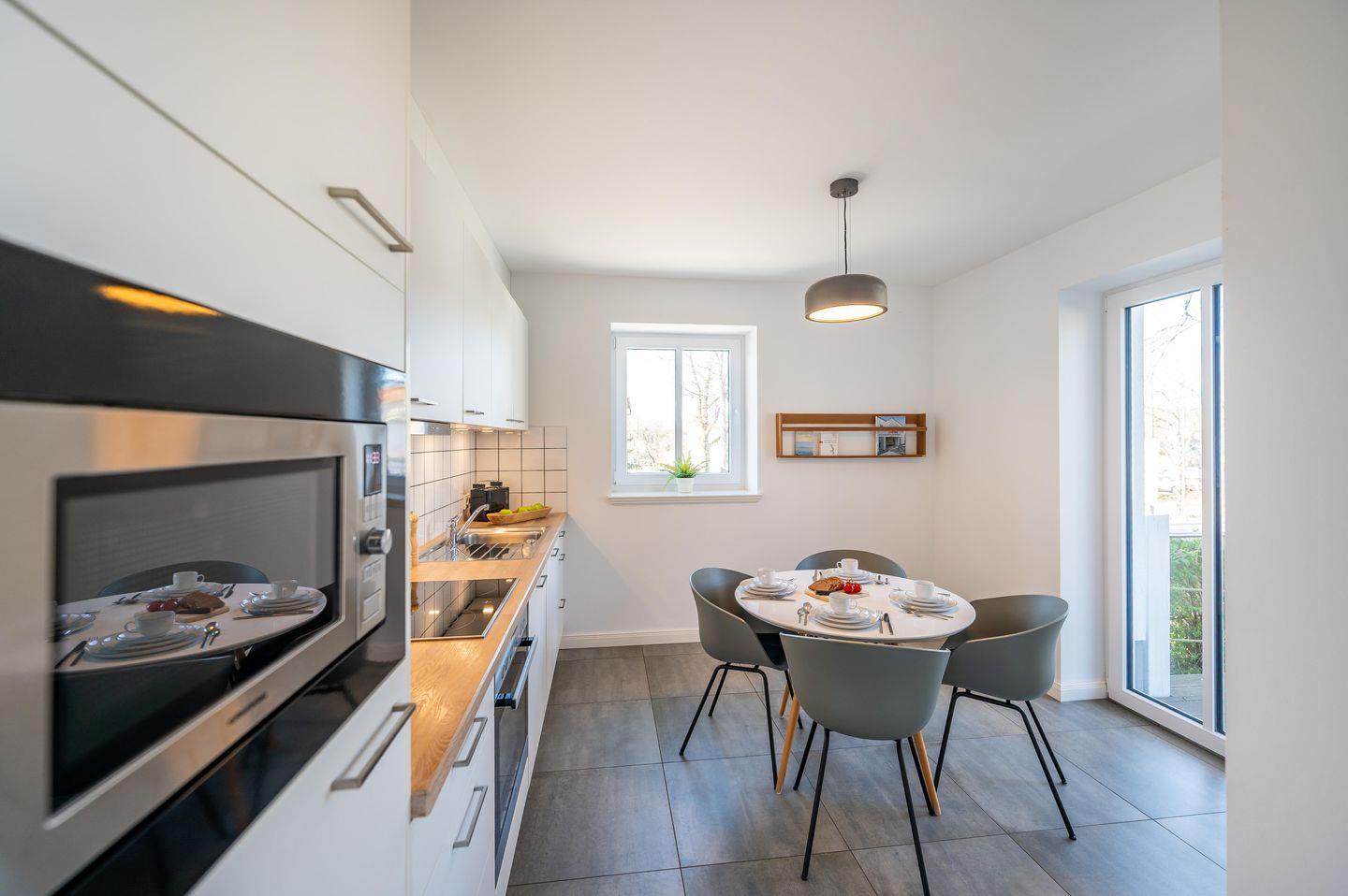 Küche :Mikrowelle, Backofen, Geschirrspülmaschine, Kühlschrank mit Gefrierfach, Kaffeemaschine, Toaster und Wasserkocher