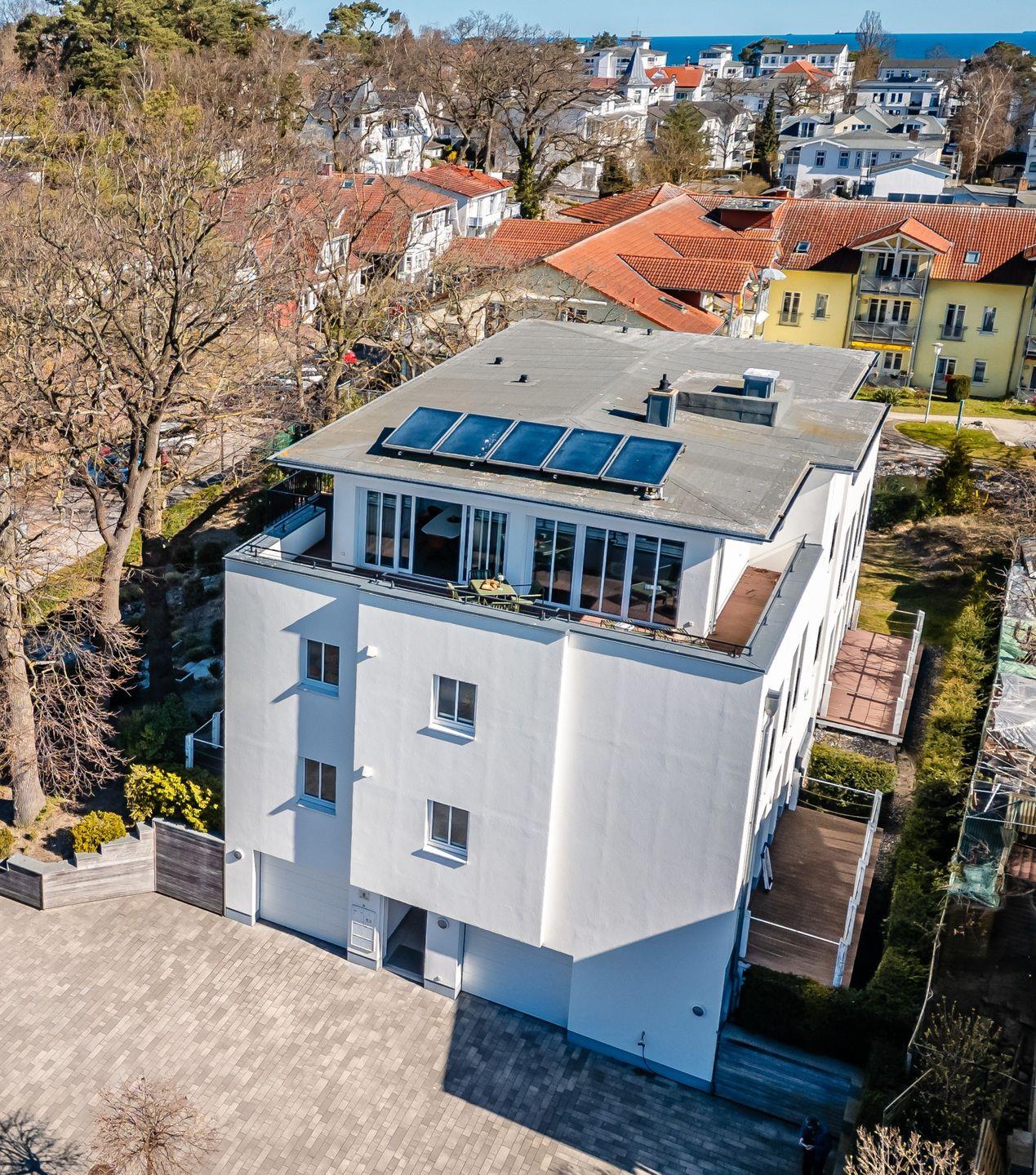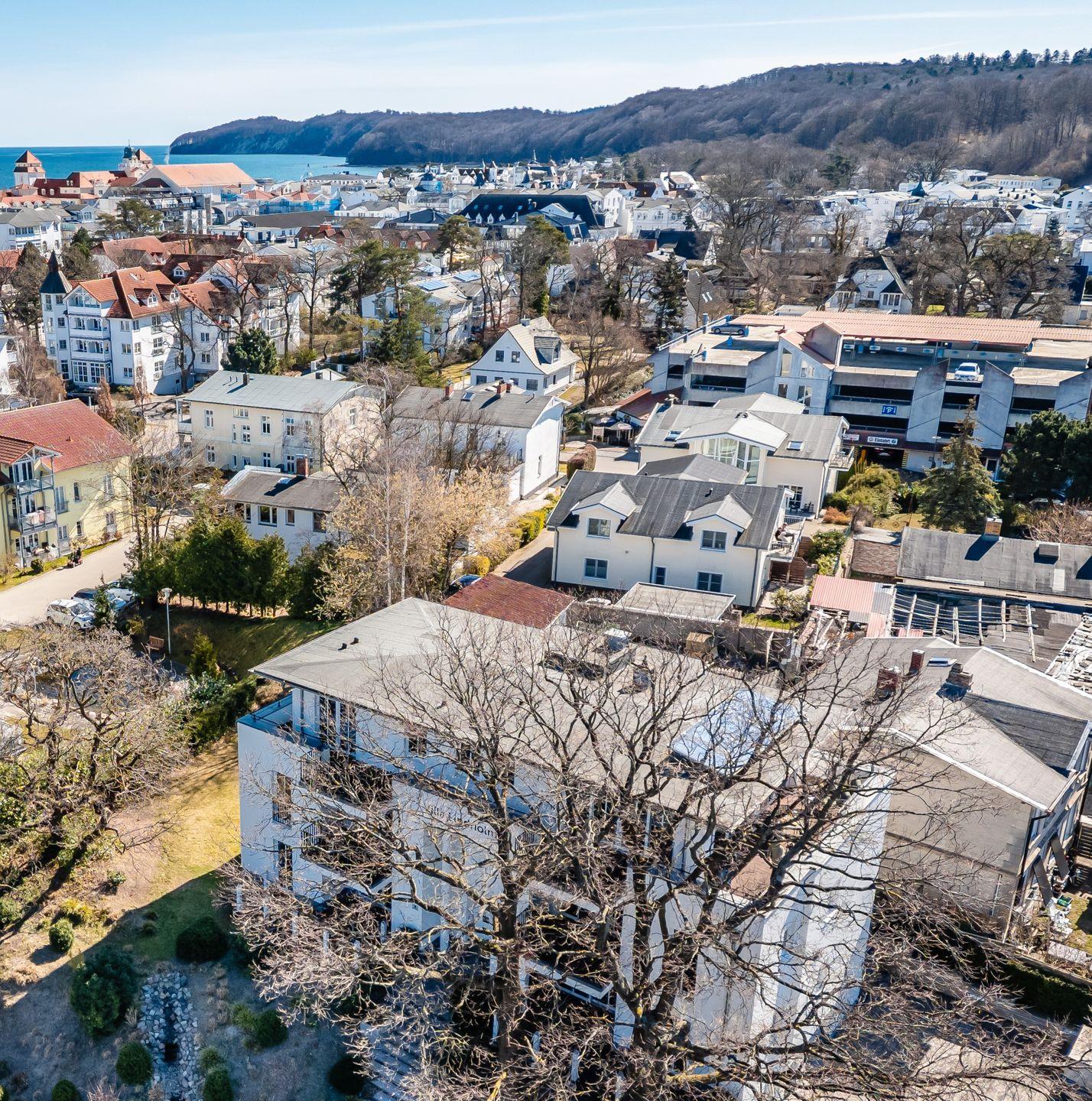 Die luxuriöse Villa Lindholm befindet sich in zentraler Lage des mondänen Seebades Binz. Die Strandpromenade, das Kurhaus, die Seebrücke, die Fußgängerzone und der Schmachter See - all dies befindet sich in unmittelbarer Nähe des Apartmenthauses (jeweils ca. 400 Meter, höchstens fünf Minuten zu Fuß). Ihr Auto können Sie direkt an der Villa parken (gegen eine Gebühr ). Ein ebenerdiger Fahrradraum steht zur Verfügung. Eine Bäckerei und einen Supermarkt finden Sie auf der gegenüberliegenden Straßenseite.