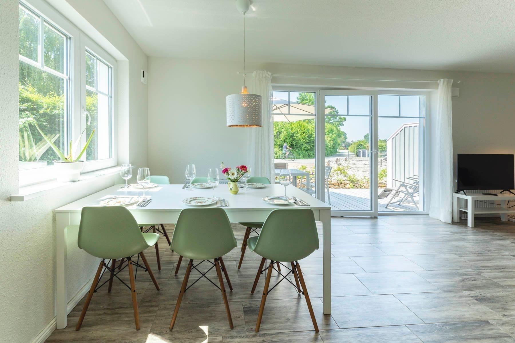 Das Ferienhaus Belvedere 2c, gelegen in einem ruhigen Neubaugebiet im Schwedenstil, bietet einen stilvollen Außenbereich, der direkt vom Wohn- und Essbereich zugänglich ist. Auf der Terrasse laden gemütliche Gartenmöbel zum Entspannen ein. Nur etwas mehr als einen Kilometer entfernt erstreckt sich einer der feinsten Sandstrände der Region, wo saisonbedingt ein Strandkorb zur Verfügung steht. Für Autofahrer sind zwei PKW-Stellplätze direkt vor dem Haus vorhanden, während Fahrräder bequem neben dem Hauseingang abgestellt werden können. Das Haus ist ein Nichtraucherhaus und bietet Platz für bis zu 8 Personen (4 Erwachsene und 4 Kinder). WLAN und Hundezugang sind ebenfalls gegeben. Genießen Sie die harmonische Verbindung von Innen- und Außenbereich im Ferienhaus Belvedere 2c!