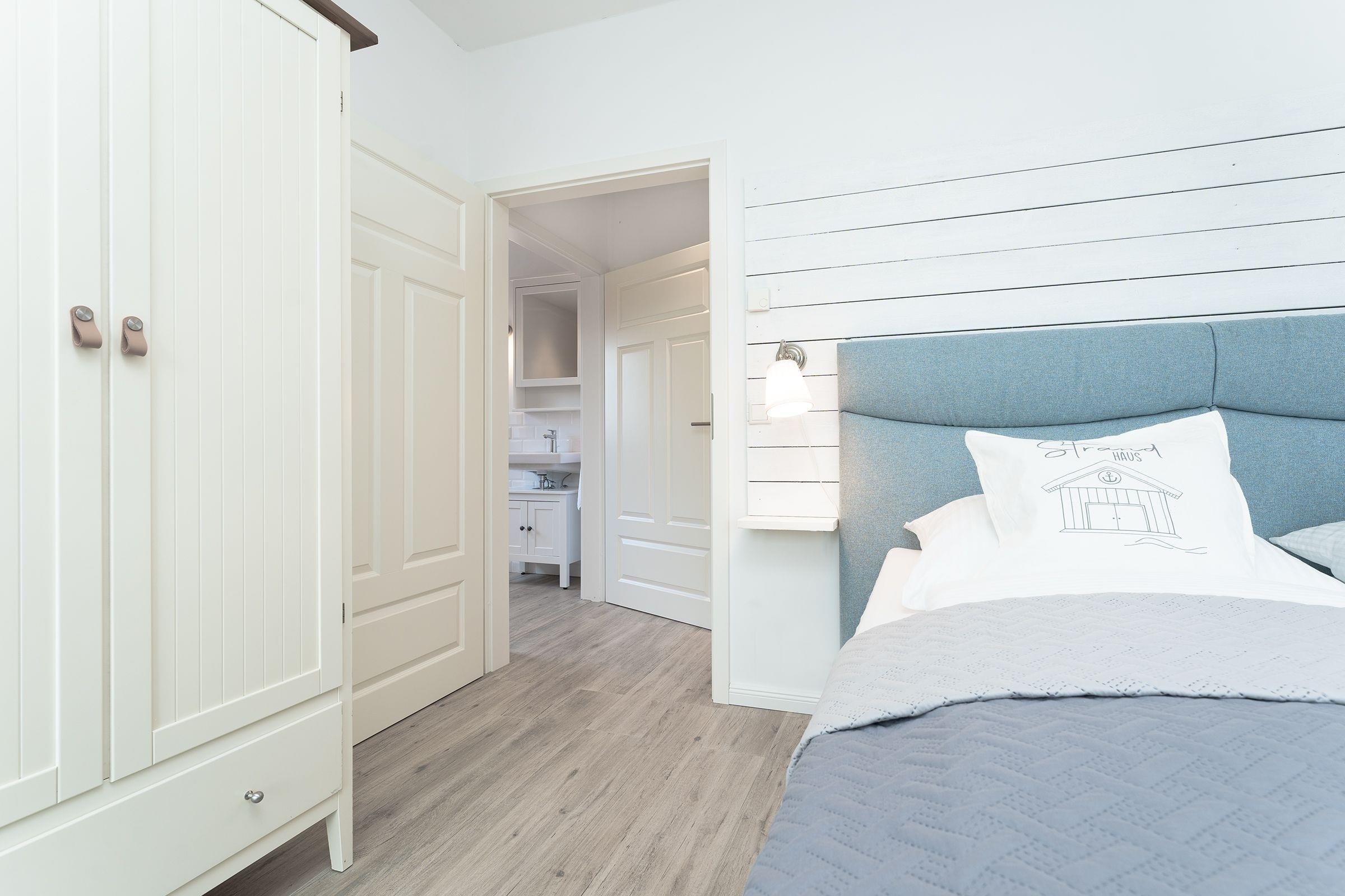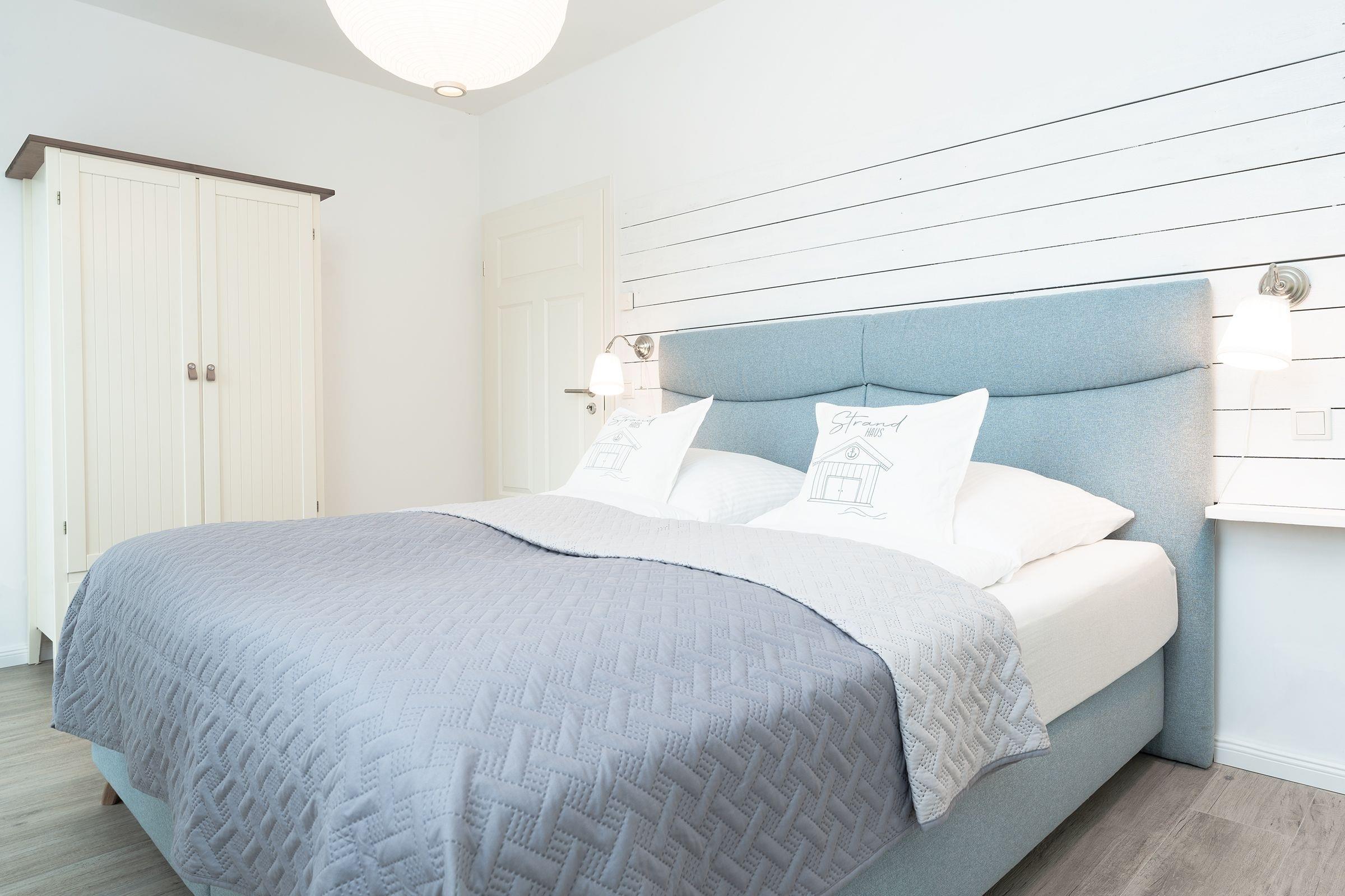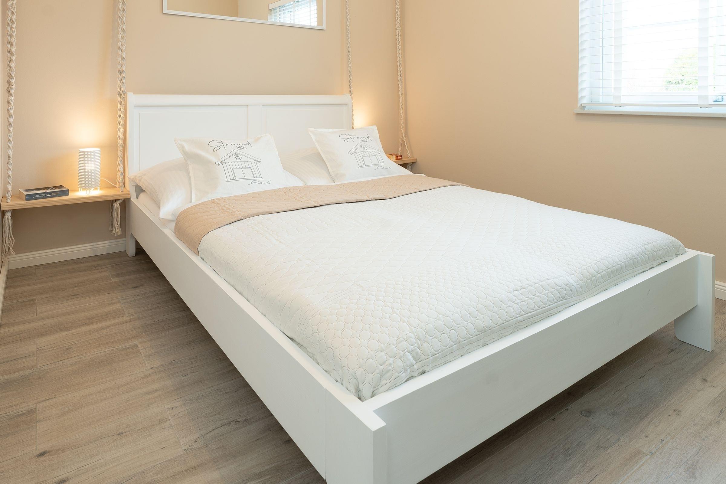 Schlafzimmer 1: 1 Boxspring-Doppelbett (180x200 cm), Kleiderschrank, Verdunkelung (Holzjalousien), Platz für Babybett