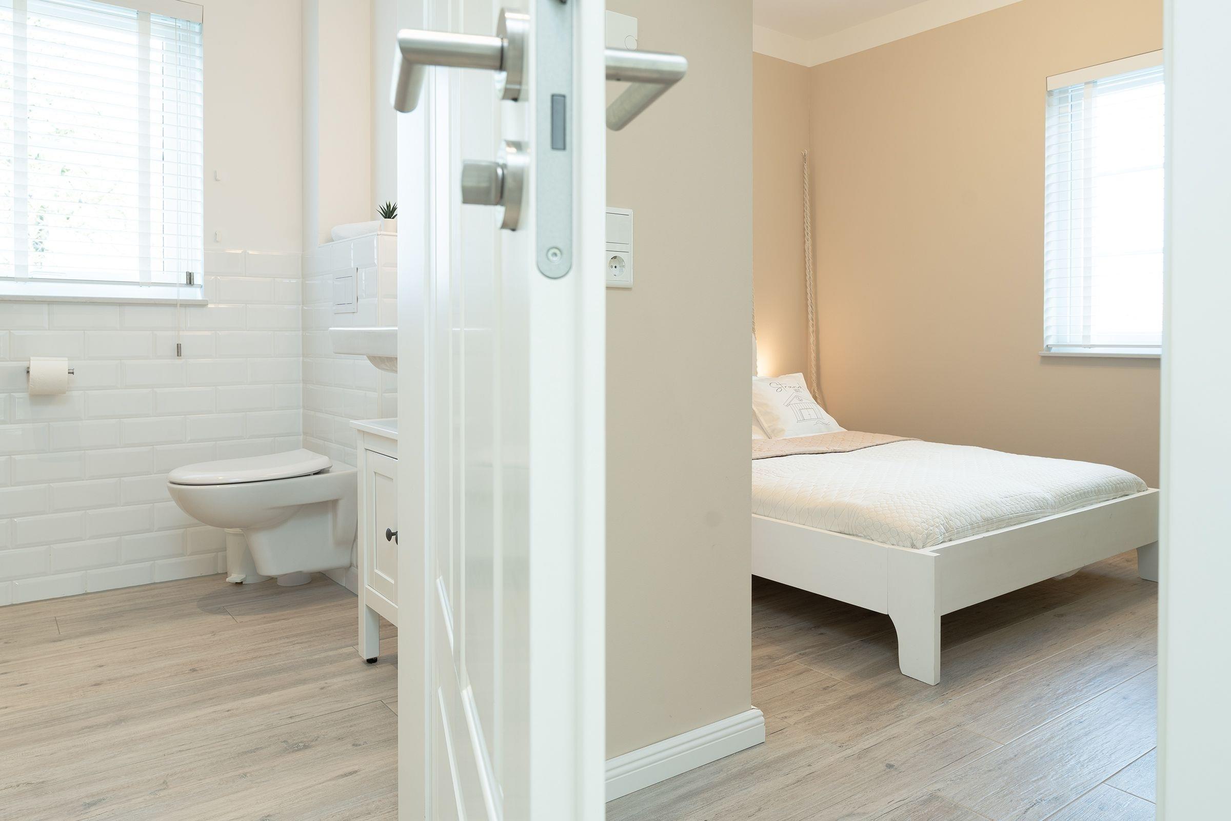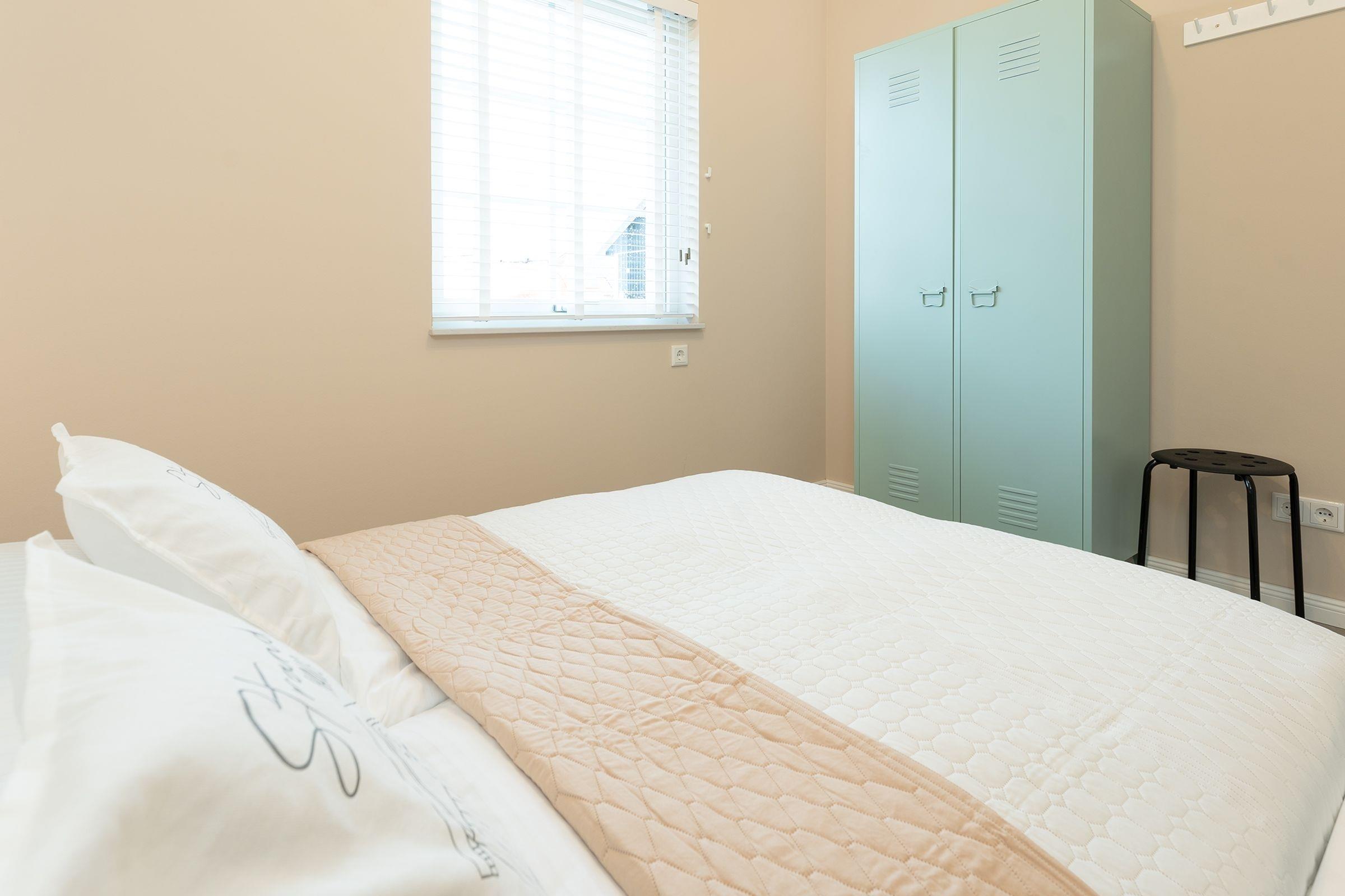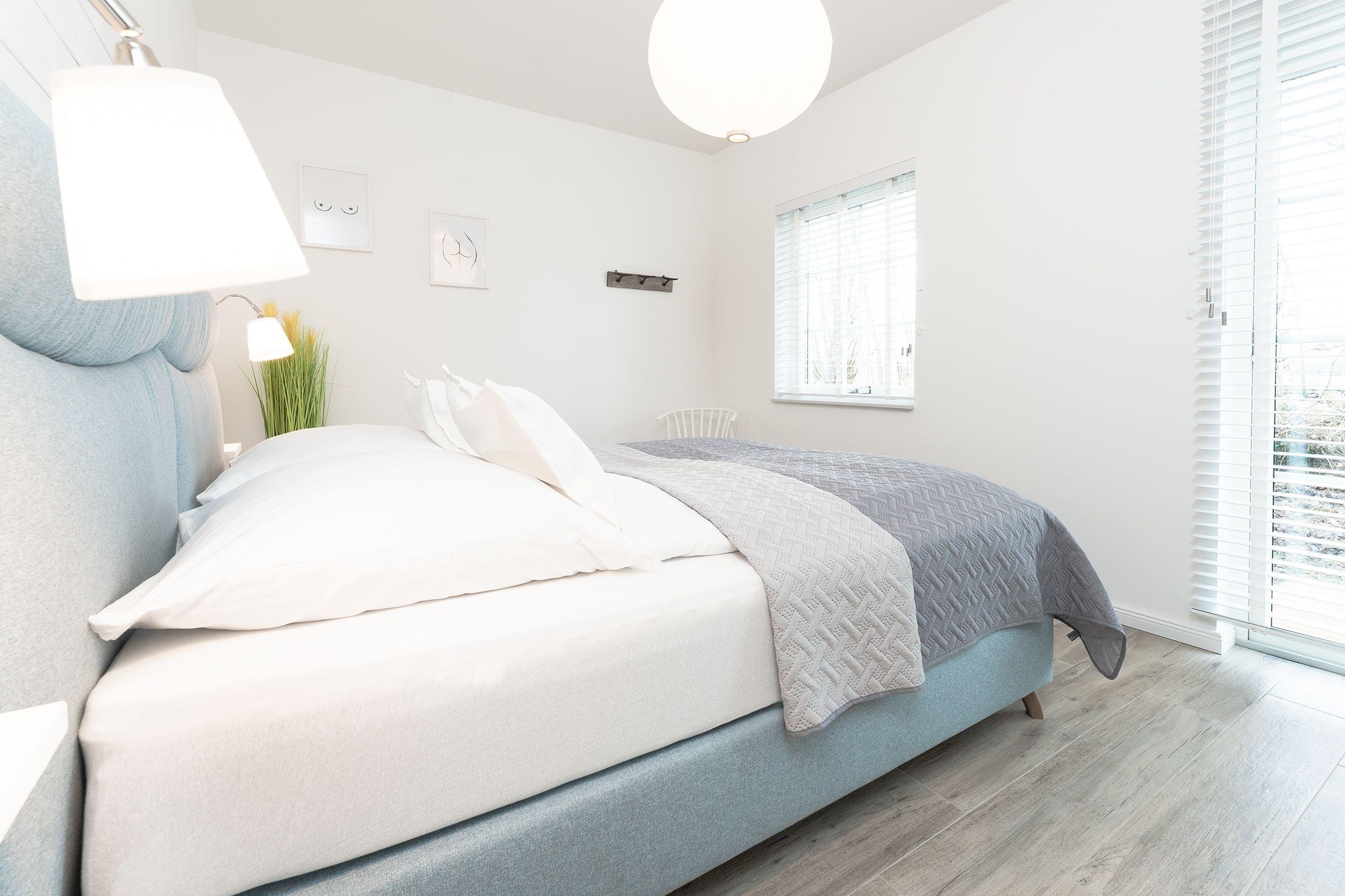 Schlafzimmer 1: 1 Boxspring-Doppelbett (180x200 cm), Kleiderschrank, Verdunkelung (Holzjalousien), Platz für Babybett