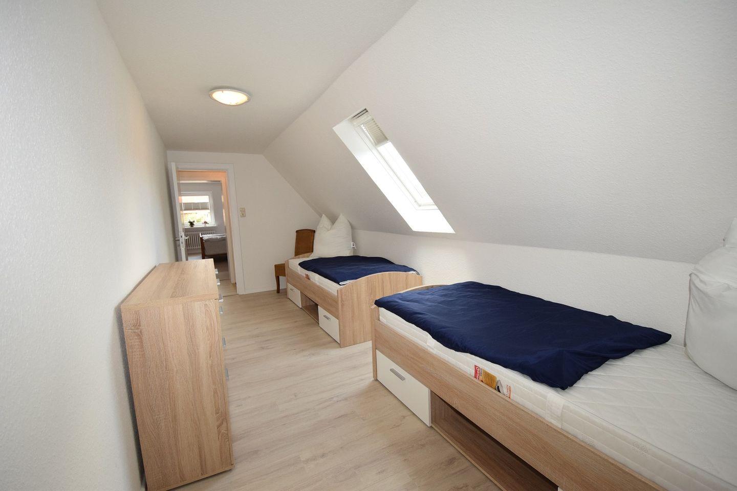 Im 3. Schlafzimmer des Hauses befinden sich 2 Einzelbetten, welche über Stauraum verfügen. Des Weiteren finden Sie in diesem Schlafzimmer eine Kommode vor.