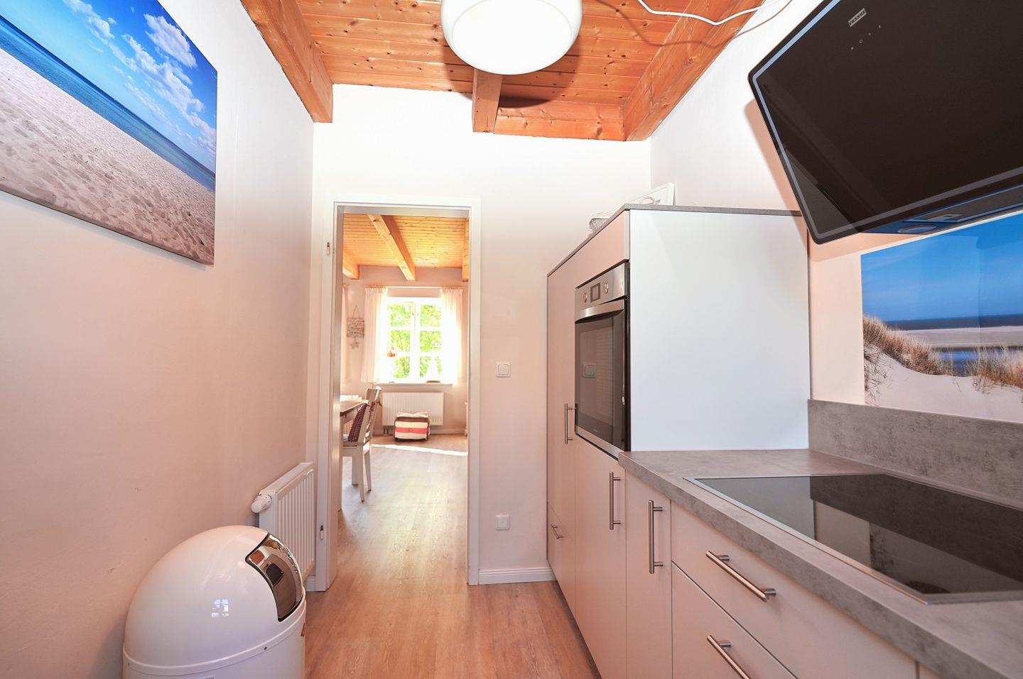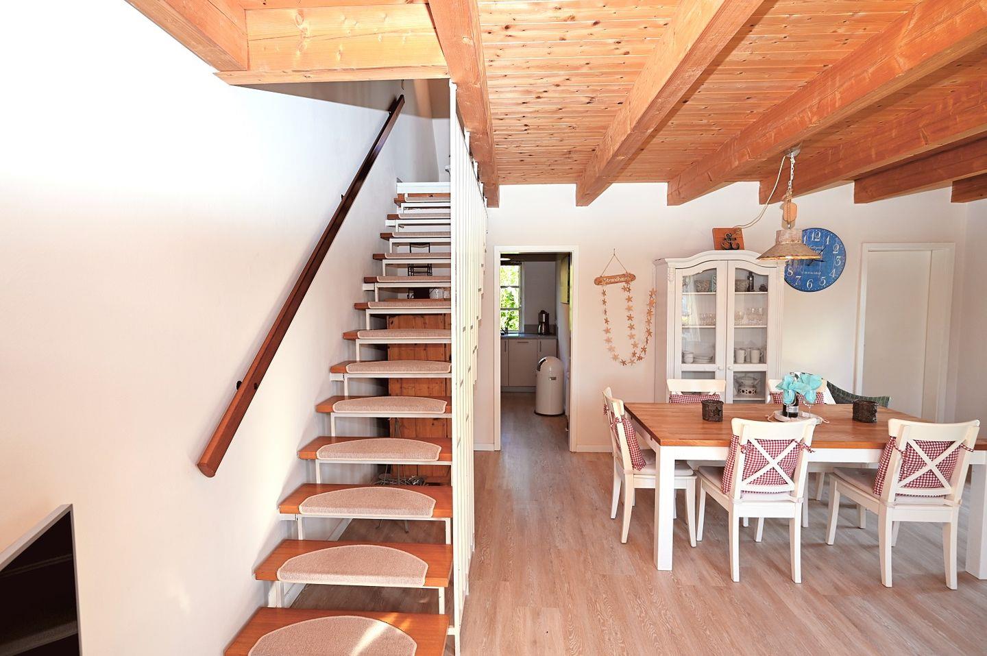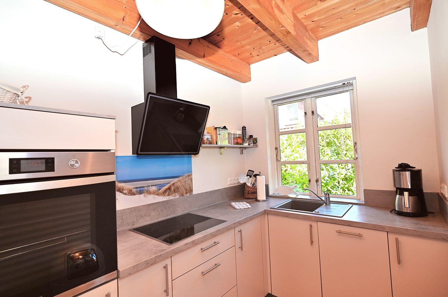 Das Herzstück des Hauses ist die moderne, voll ausgestattete Küche, die keine Wünsche offenlässt. Mit Induktionskochfeld, Mikrowelle, Backofen, Toaster, Wasserkocher, einem Kühlschrank mit Gefrierfach und einem Geschirrspüler ist sie perfekt für alle, die gerne kochen. Die separate Küche bietet ausreichend Platz, um gemeinsam Mahlzeiten vorzubereiten und in geselliger Runde zu genießen.
