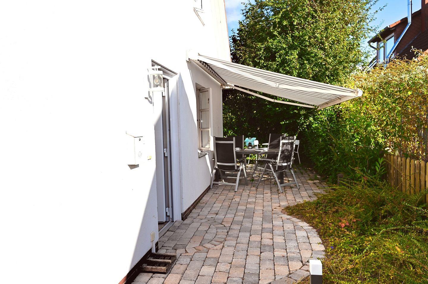 Ein absolutes Highlight des Ferienhauses ist die großzügige Süd-West-Terrasse. Hier können Sie die Sonne genießen, in gemütlichen Gartenmöbeln entspannen oder den Tag bei einem Grillabend mit dem hochwertigen Weber-Grill ausklingen lassen. Die Terrasse ist perfekt ausgerichtet, sodass Sie den ganzen Tag über Sonnenstrahlen genießen können.