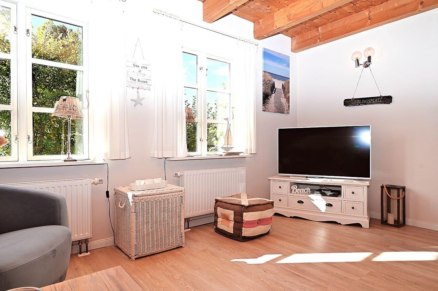 Das Ferienhaus wurde im modernen Beachhaus-Stil eingerichtet, sodass eine warme und einladende Atmosphäre entsteht. Hier können Sie abschalten und den Alltag hinter sich lassen. Der großzügige Wohnbereich ist mit bequemen Sitzmöbeln ausgestattet und bietet Ihnen die Möglichkeit, es sich nach einem Strandtag gemütlich zu machen. Zwei Flat-Screen-Fernseher und eine Soundbox sorgen für beste Unterhaltung. Für die Technikfreunde steht eine PlayStation 4 bereit – ideal für gemütliche Abende oder regnerische Tage.