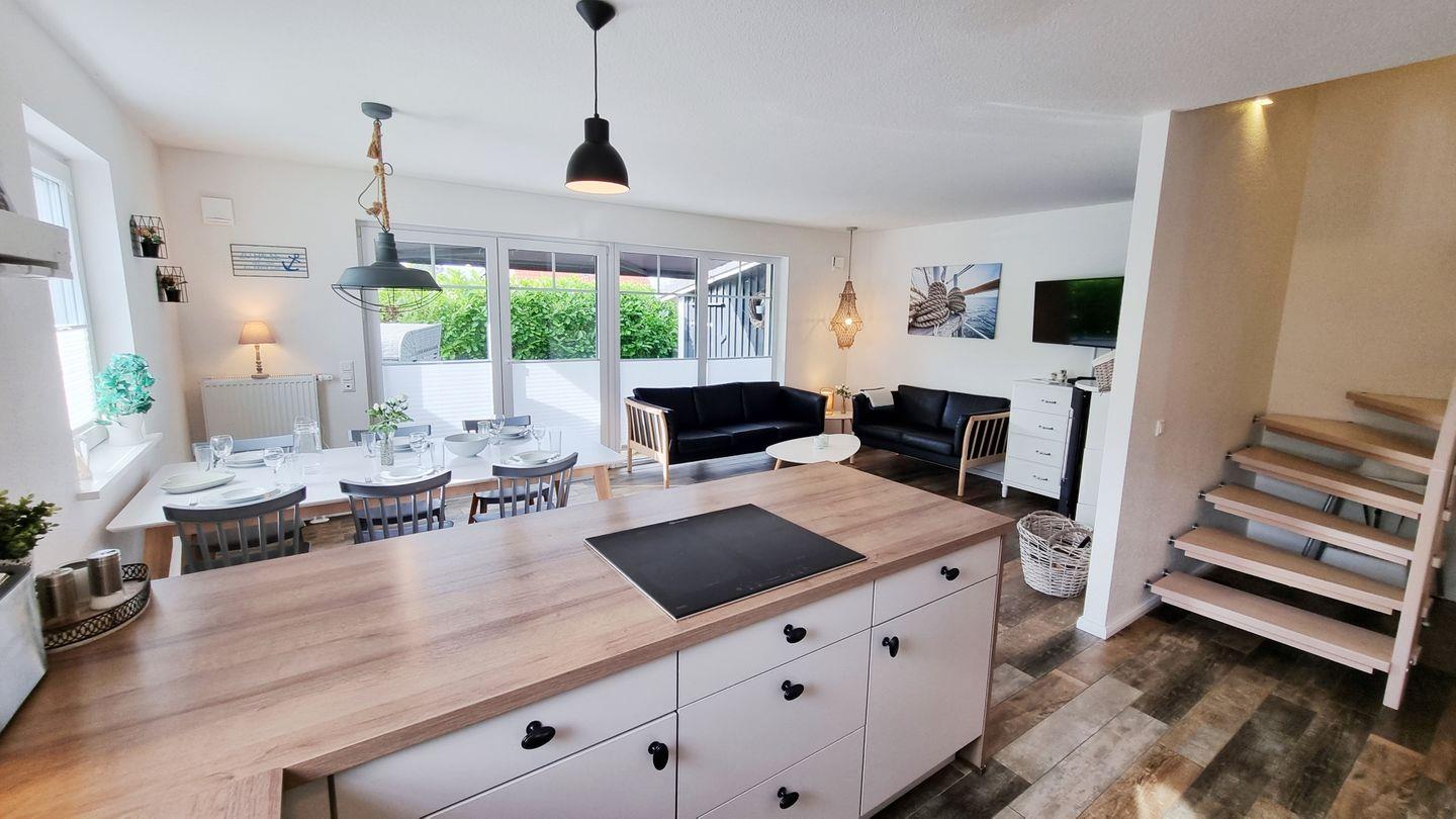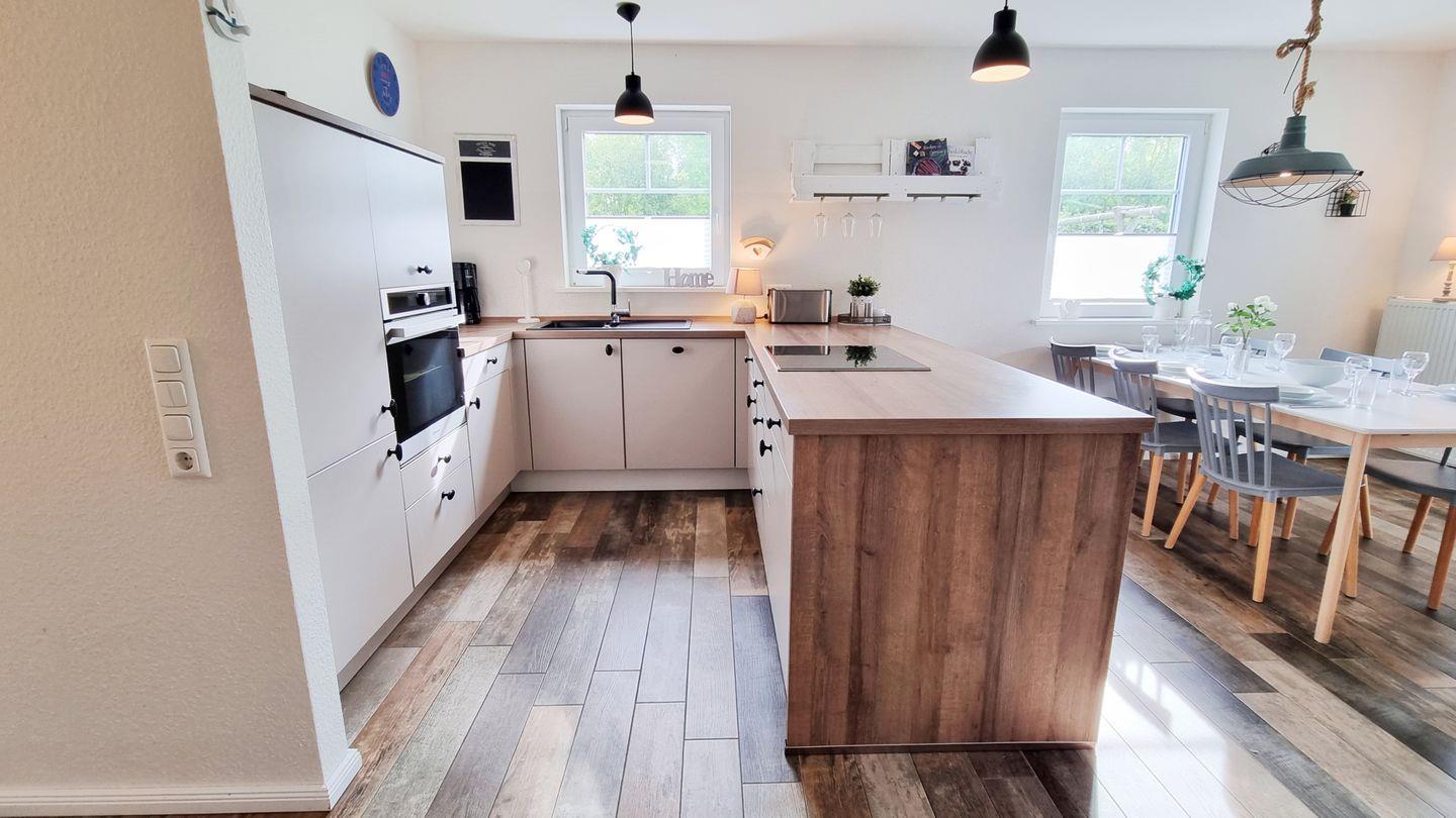 Küche: großzügige Küche / Backofen / Geschirrspüler / Induktionskochfeld / Toaster / Mikrowelle / Filterkaffeemaschine / Wasserkocher / Kühlschrank mit Gefrierfach