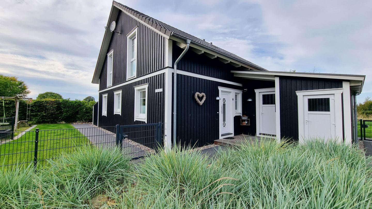 Gemütliche Schwedenhaushälfte „Lieblingsplatz“ nahe Sehlendorfer Ostseestrand mit Sauna, Kamin und eingezäuntem Garten.