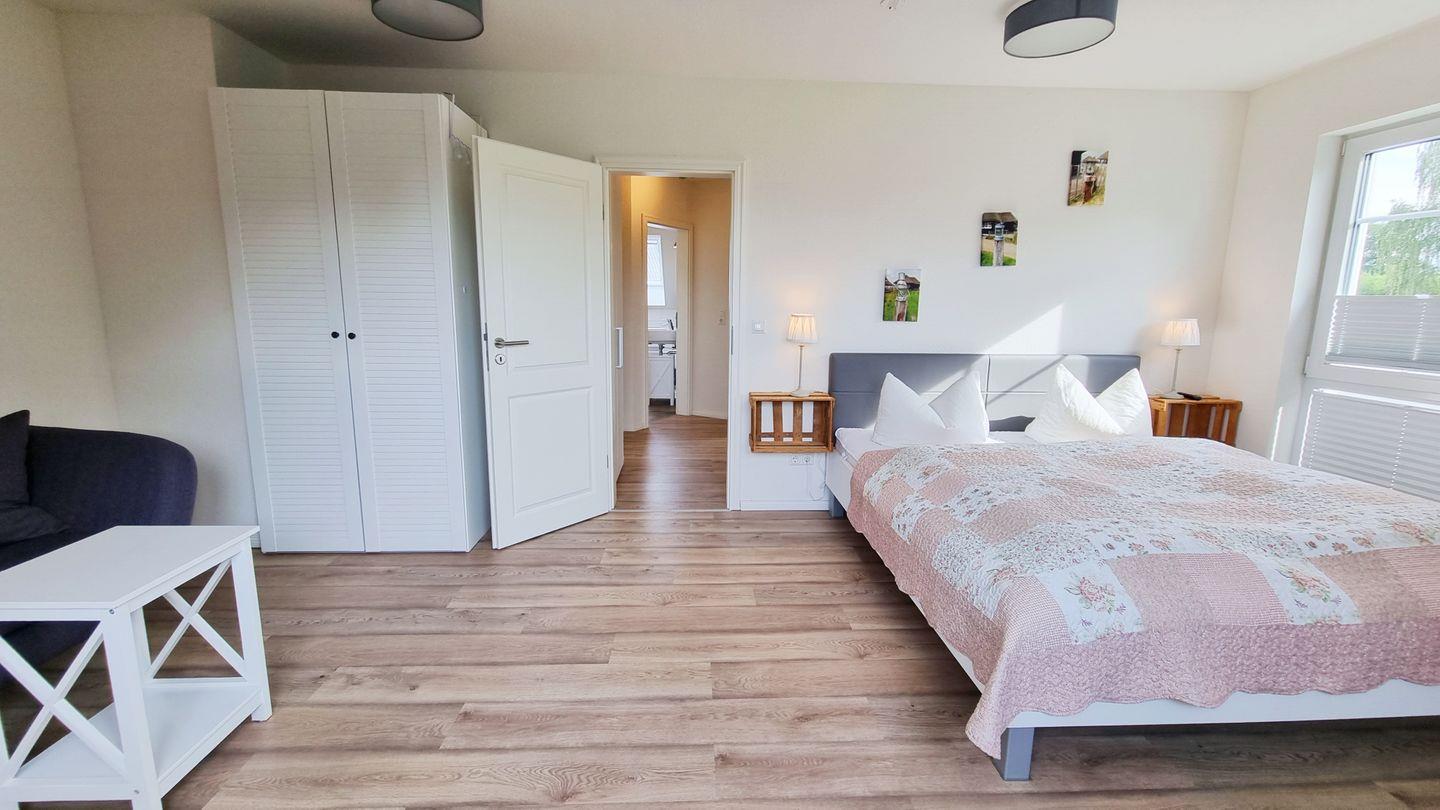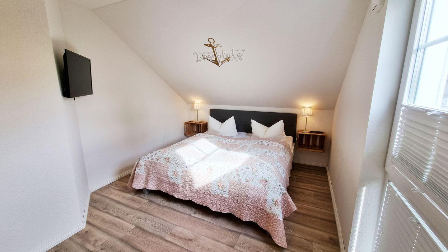Schlafzimmer I (OG): Doppelbett (180x200cm) / Schrank / Fernseher / Plissees