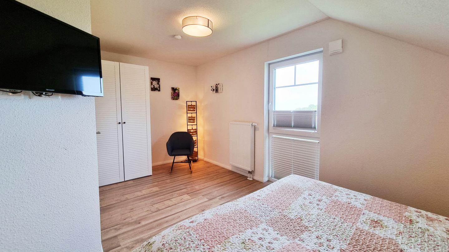 Schlafzimmer II (OG): Doppelbett (180x200cm) / Schrank / Fernseher / Sessel / Plissees