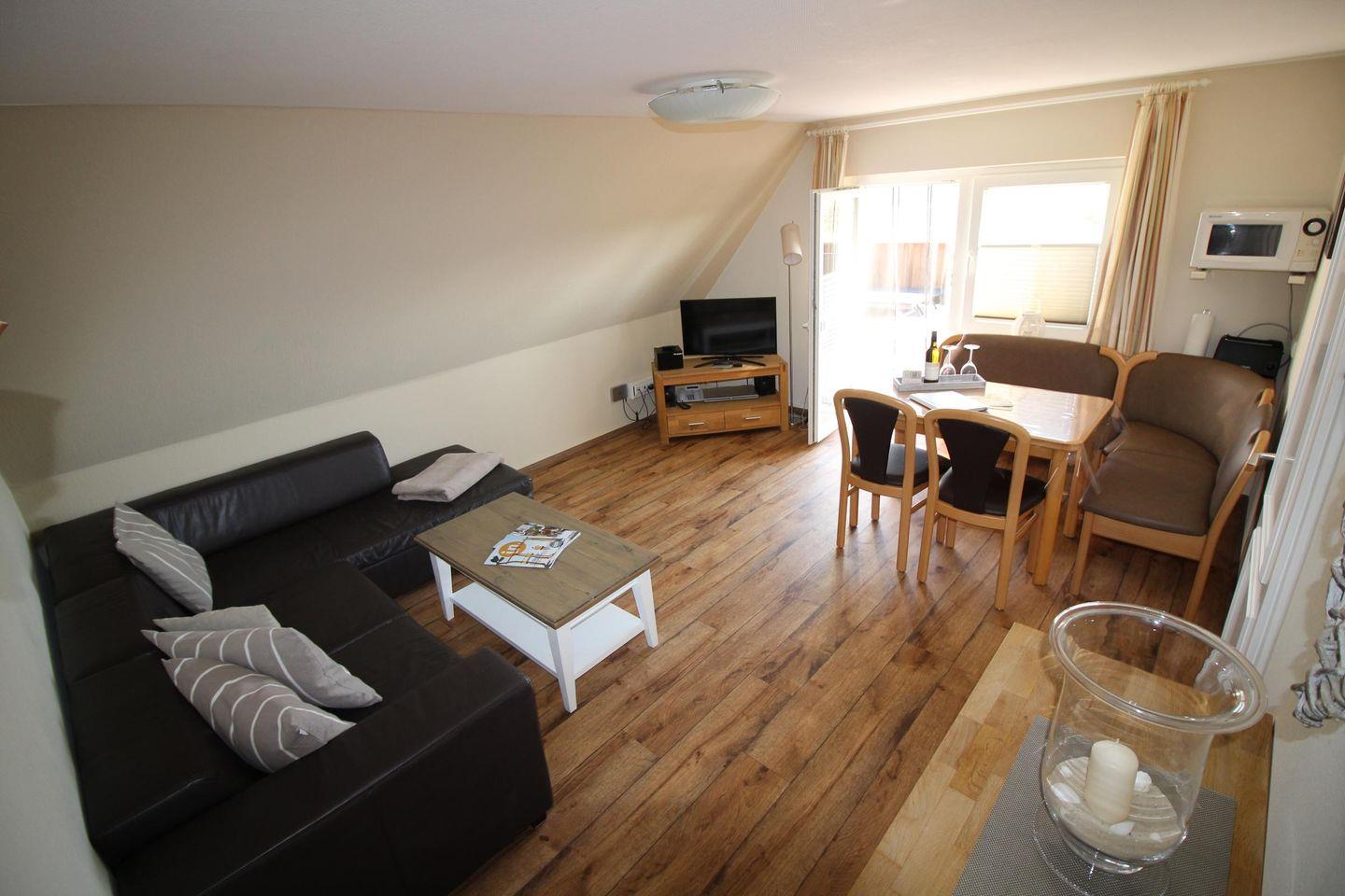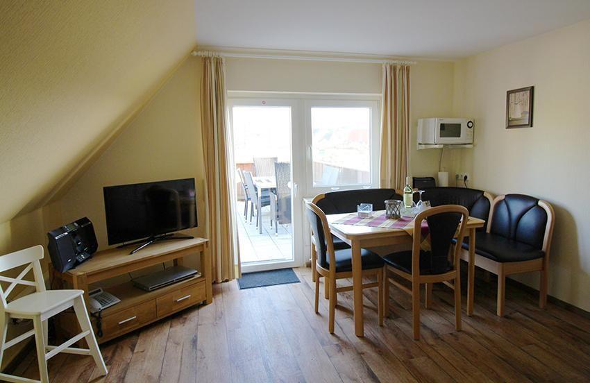 Die 4-Sterne Ferienwohnung Adlerhorst bietet 60 m² Wohnkomfort mit Meerblick an der Ostsee und einer sonnigen Dachterrasse.