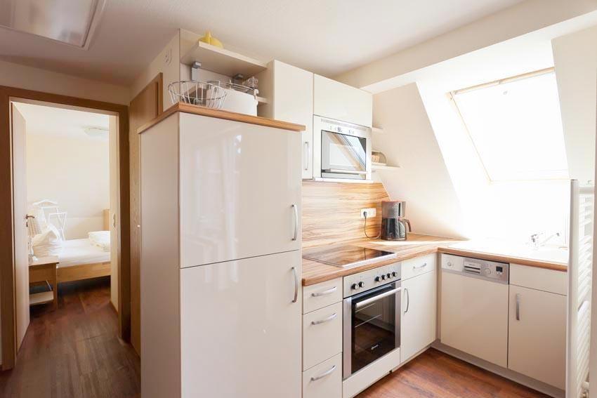 Es ist eine Ferienwohnung im zweiten Stock im gemütlichen Bauernhaus und befindet sich auf dem Ostsee Ferienhof Bendfeldt mit direktem Blick über die Felder zur Ostsee. Das geräumige Elternschlafzimmer mit einem Doppelbett, sowie das Kinderzimmer mit zwei Einzelbetten laden zum gemütlichen Schlafen ein. In der Wohnung befindet sich ein helles, modernes Duschbad mit WC.