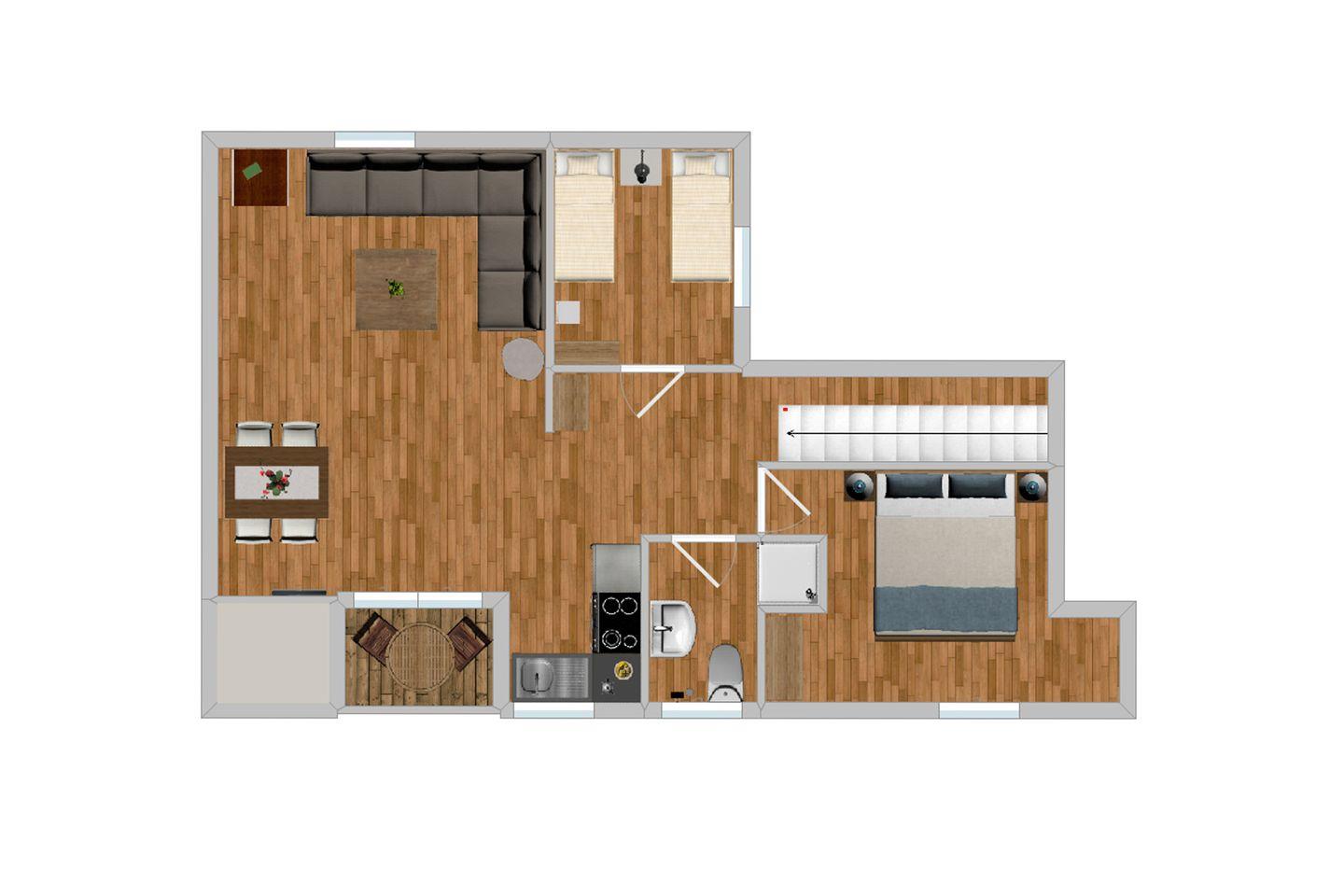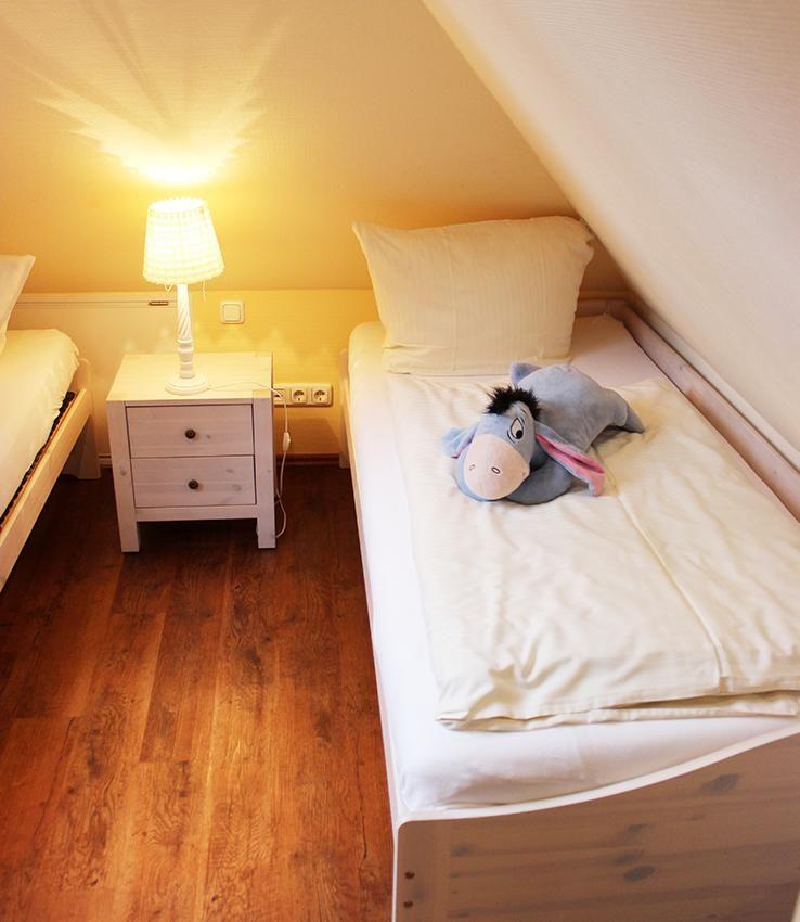 Die 4* Ferienwohnung Sperlingslust befindet sich mit 60 qm in der 2. Etage in unserem Bauernhaus zentral zwischen den Spielbereichen. Sie bietet euch: