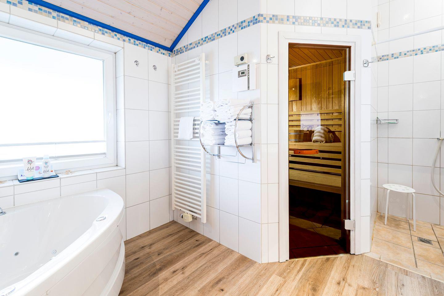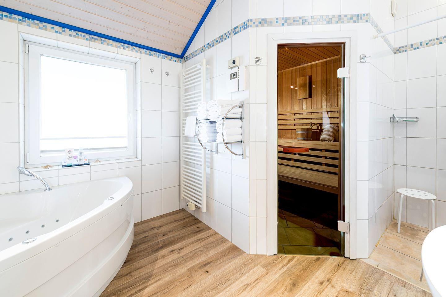Wellnesshaus Strandläufer in Bliesdorf bietet luxuriösen Komfort mit Sauna, Whirlpool und Meerblick.