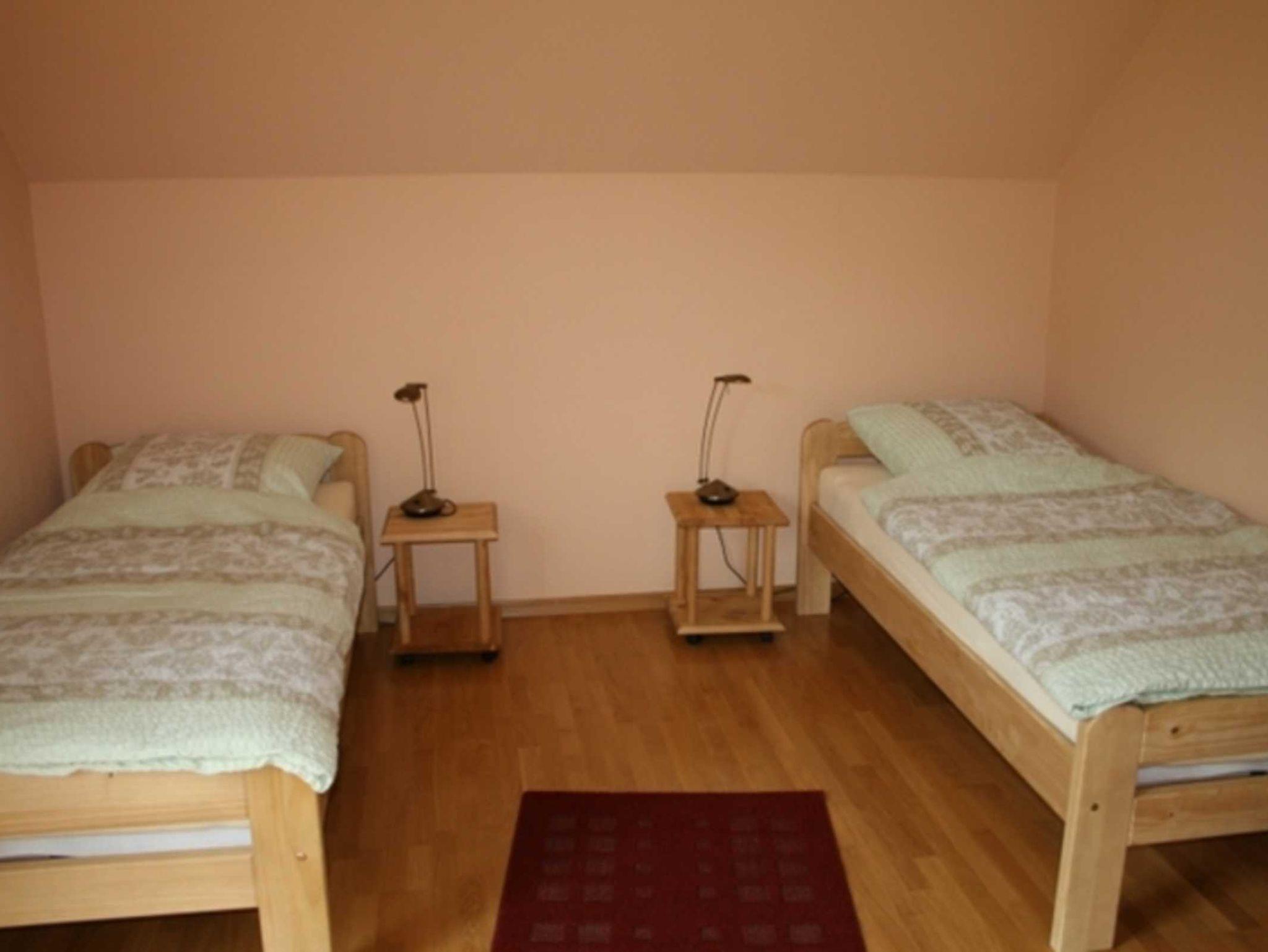 Unterkunft: Geräumige 4-Zimmer-Ferienwohnung im Dachgeschoss, mit separatem Eingang. Wohnzimmer mit integrierter Küche, 3 separate Schlafzimmer, Balkon, Bad mit Wanne und Dusche, eigene Sitzecke im Garten, Kinderspielplatz im Garten.