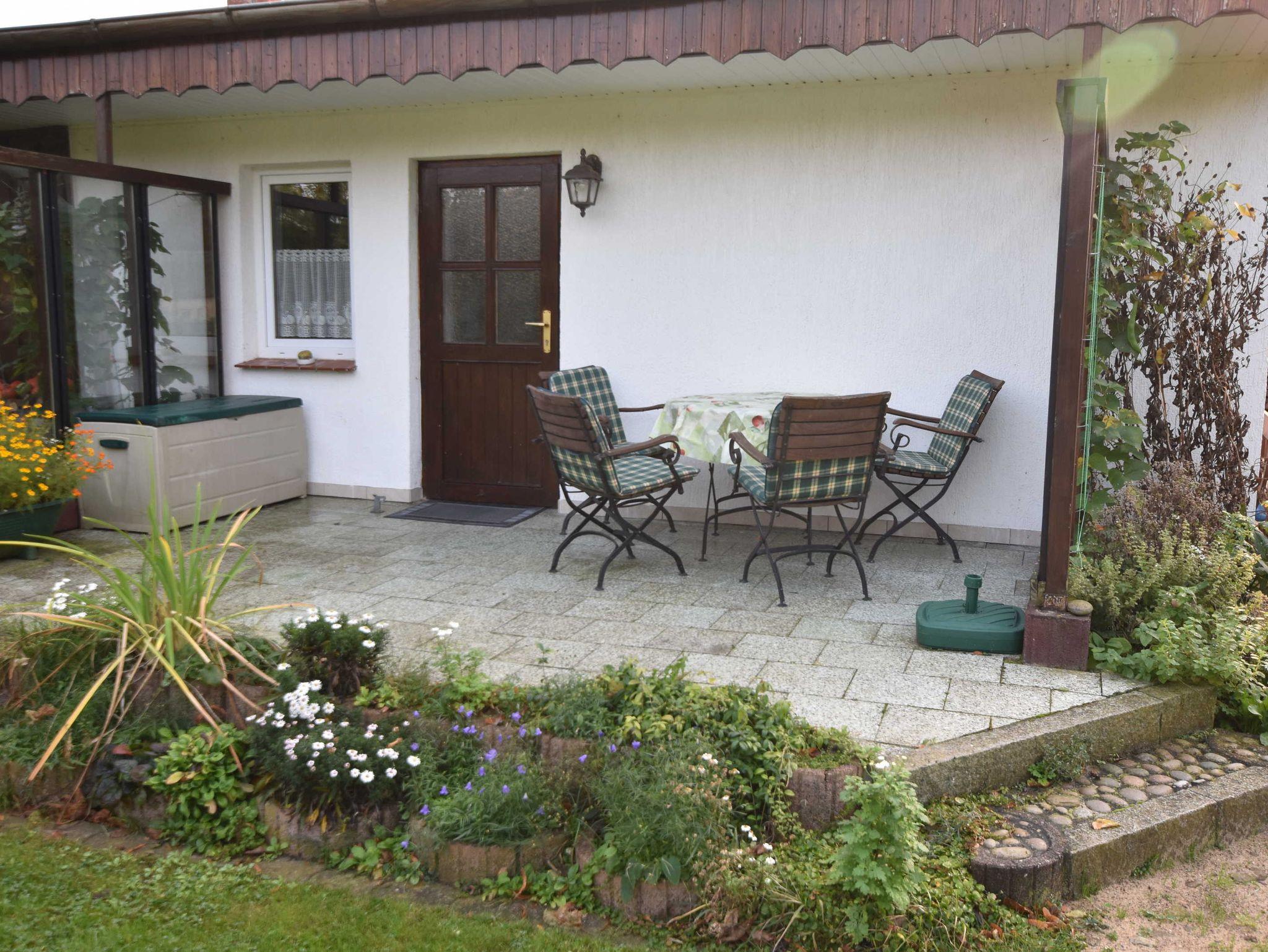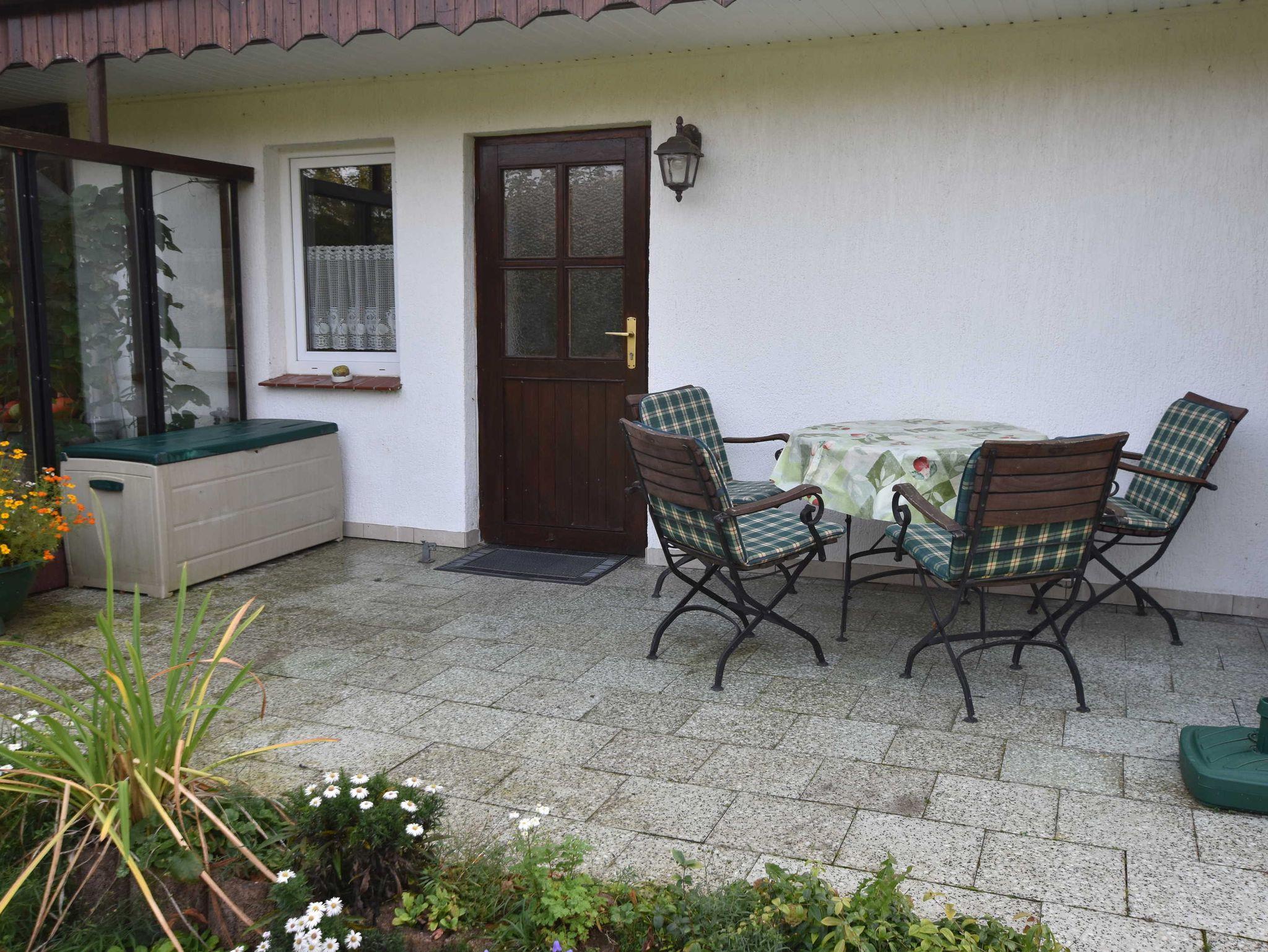 Auf der Terrasse bzw. im Garten Gartenmöbel und Grill sowie Tischtennisplatte.