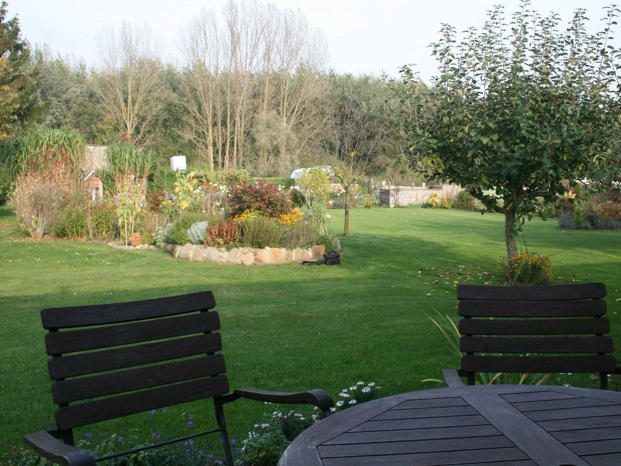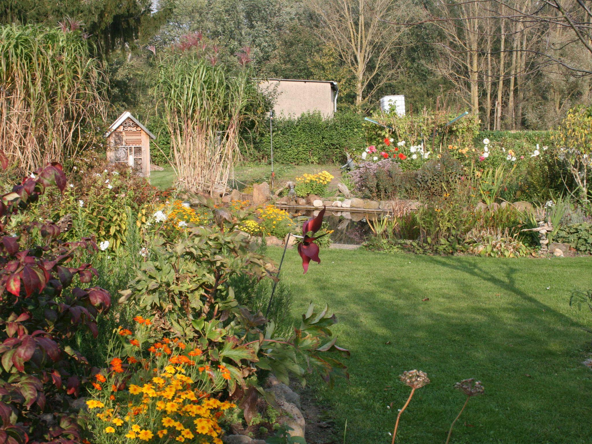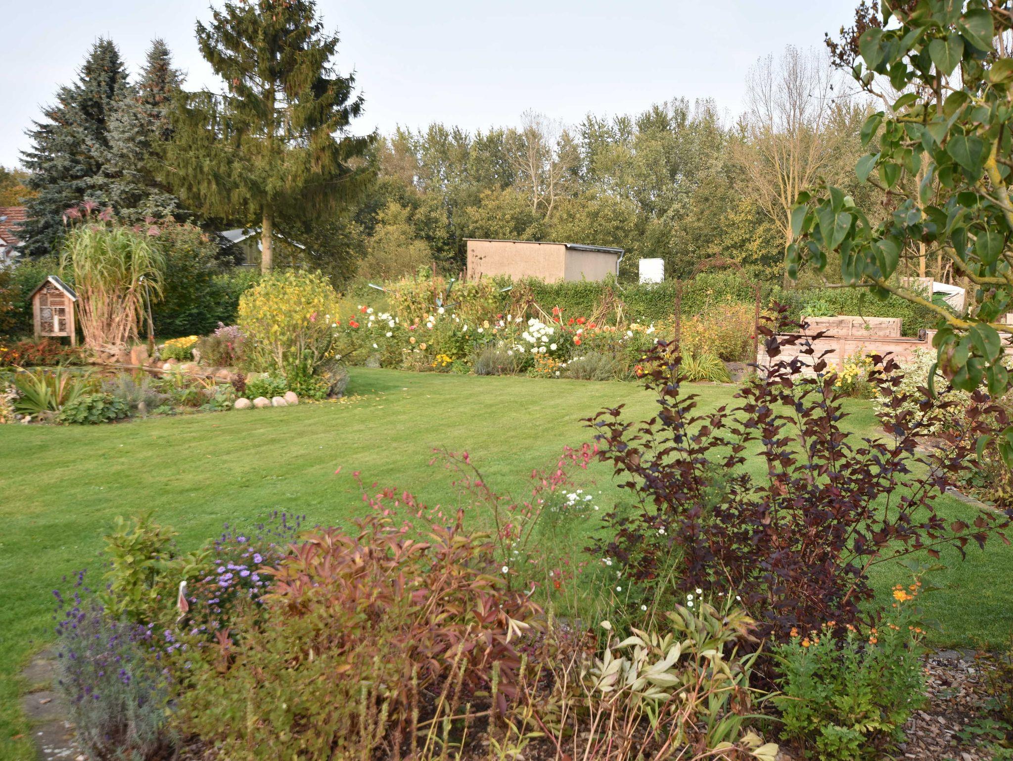 Am Haus: Gartenteich, Gartenterrasse, Sitzecke und Grill, Liegewiese, Tischtennis und Federball, Sandkasten.