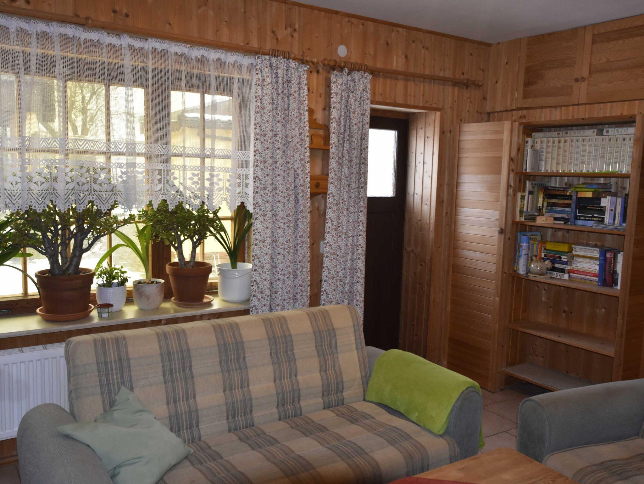 Wohnraum mit Sitzecke (Schlafcouch nur für Kinder geeignet), Sat-TV und Radio.