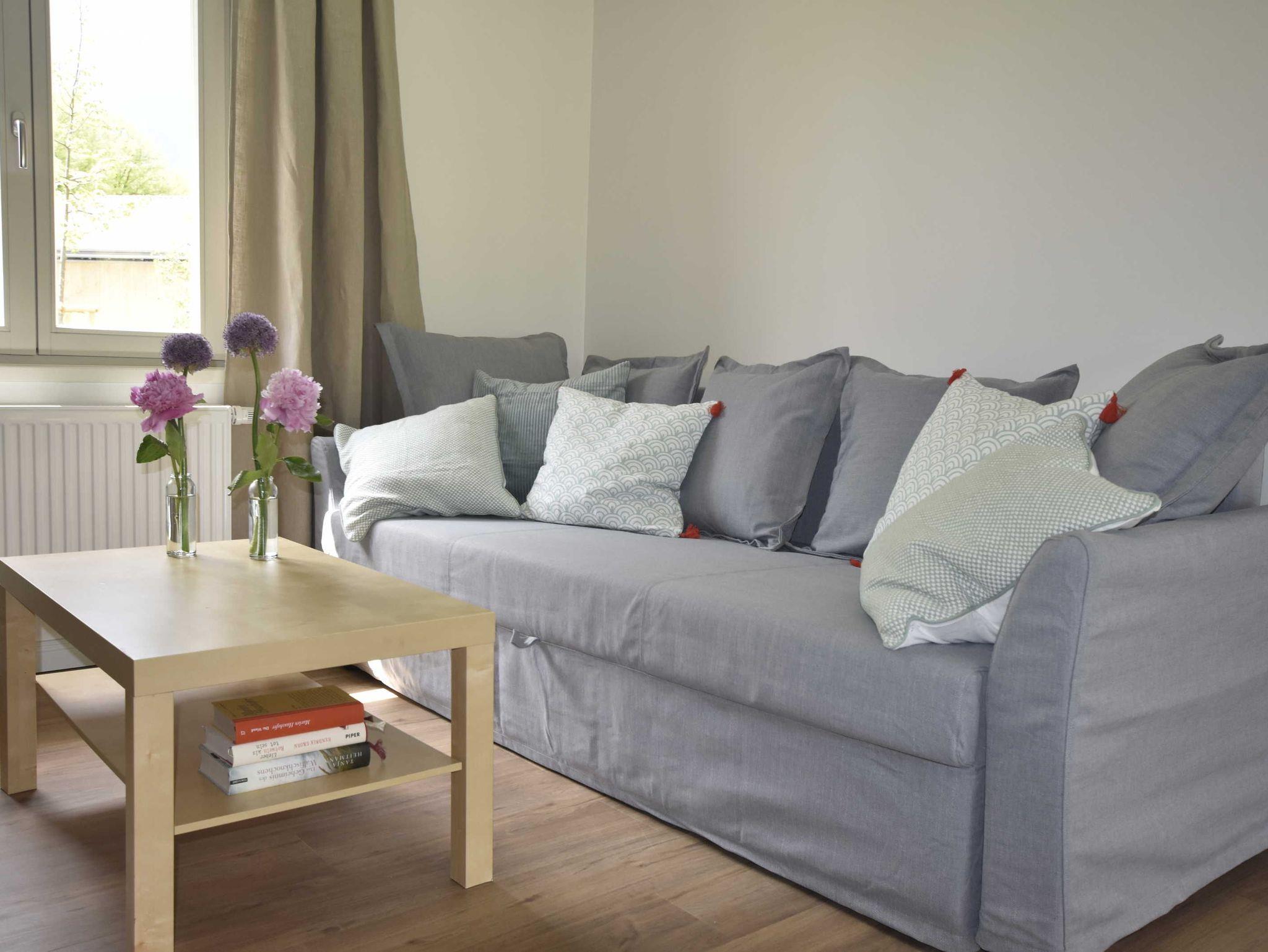 Neu gebautes (Fertigstellung April 2021) 4-Raum-Ferienhaus (94 qm) bis zu 8 Personen mit 2 Bädern. Ideal für Familien mit Kindern. Modern, farbenfroh und freundlich eingerichtet. Wohnzimmer mit integrierter Küche, großem Eßtisch und Sitzecke. Küche ausgestattet mit 4 Platten Ceranfeld, Geschirrspülmaschine, Backofen, Mikrowelle, Kaffeemaschine, Wasserkocher. 1 Schlafzimmer mit Doppelbett, 2 Schlafzimmer mit jeweils 2 Einzelbetten. Aufbettung für 7. und 8. Person im Wohnzimmer auf ausziehbarer Schlafcouch (=Doppelbett). Es gibt 2 Badezimmer; 1 Badezimmer mit Dusche, WC und Waschbecken und 1 Badezimmer mit Badewanne, WC und Waschbecken. Direkter Zugang vom Wohnzimmer zur Terrasse mit Gartenmöbel.