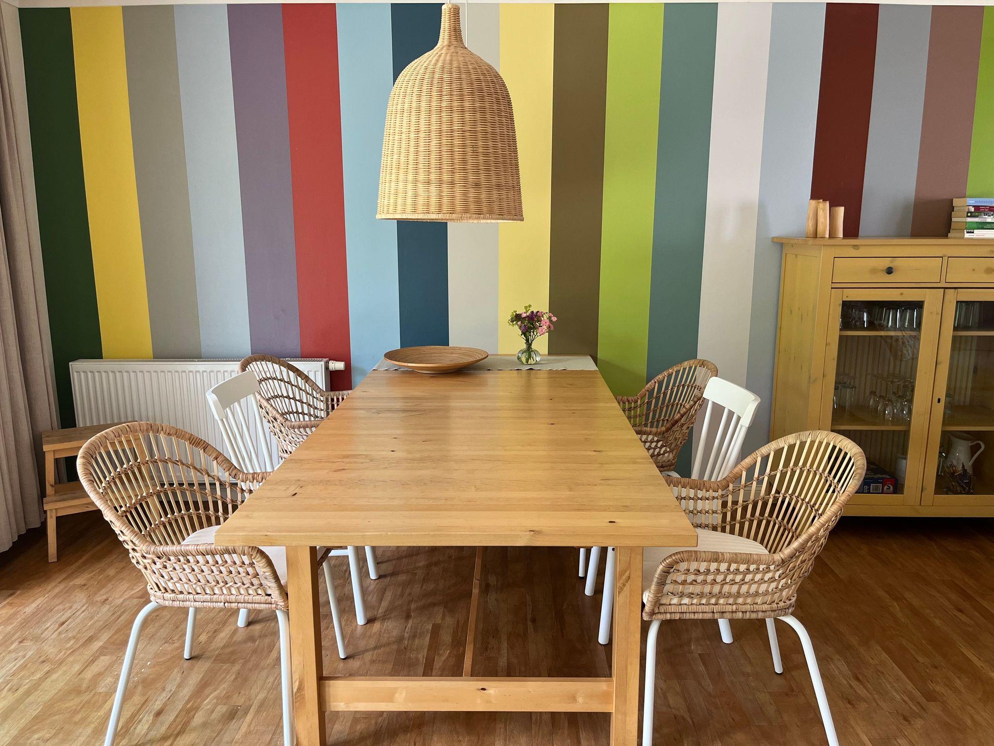 Farbenfrohes 4-Raum-Ferienhaus in ruhiger Lage nahe Ostseestrand, ideal für Familien und Naturfreunde.