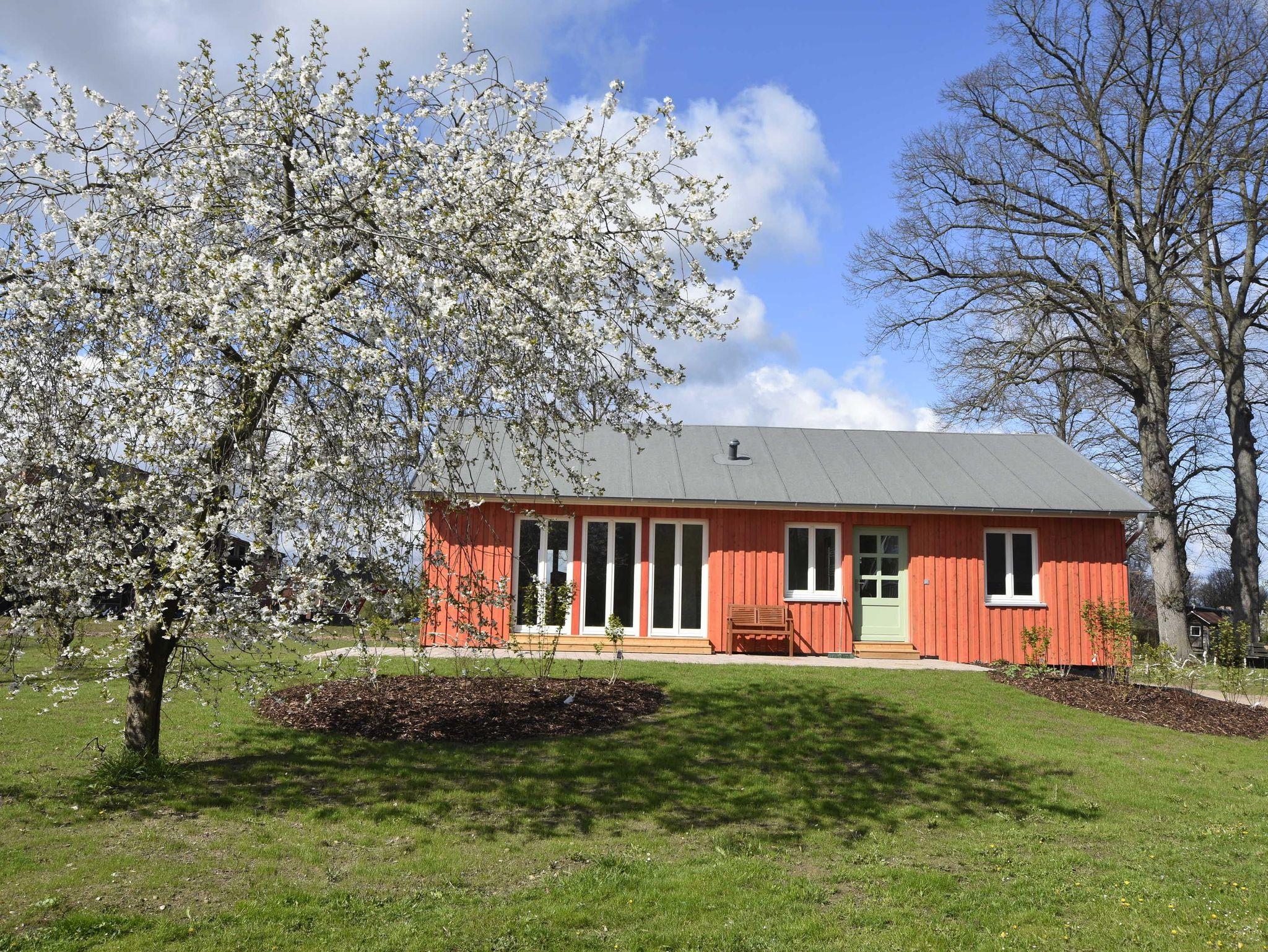 Unterkunft: Ein rotes und ein grünes 4-Raum-Ferienhaus im modernen Landhausstil (95 qm) für bis zu 8 Personen. Die Ferienhäuser bestehen aus einem großen, hellen Wohnzimmer mit integrierter Küche. Vom Wohnzimmer haben Sie durch 3 Terrassentüren direkten Zugang zur Terrasse / Garten. 3 Schlafzimmer, 1 Badezimmer mit WC, Waschbecken und Dusche, 1 Badezimmer mit WC, Badewanne und Waschbecken. Aufbettung für 7. & 8. Person auf auziehbarer Schlafcouch (= Doppelbett) im Wohnzimmer.