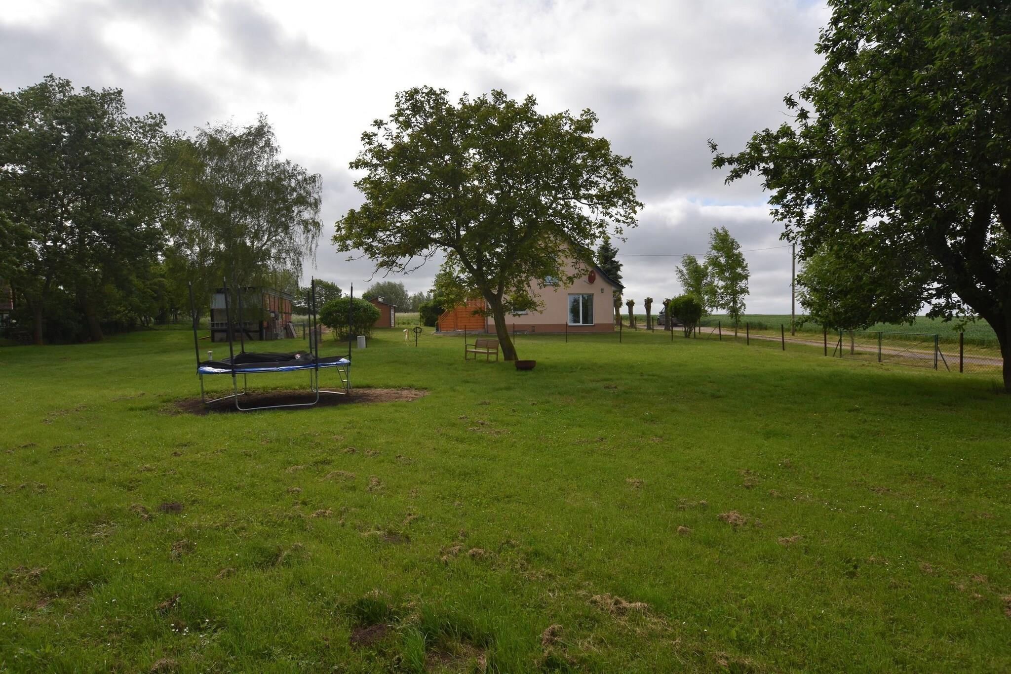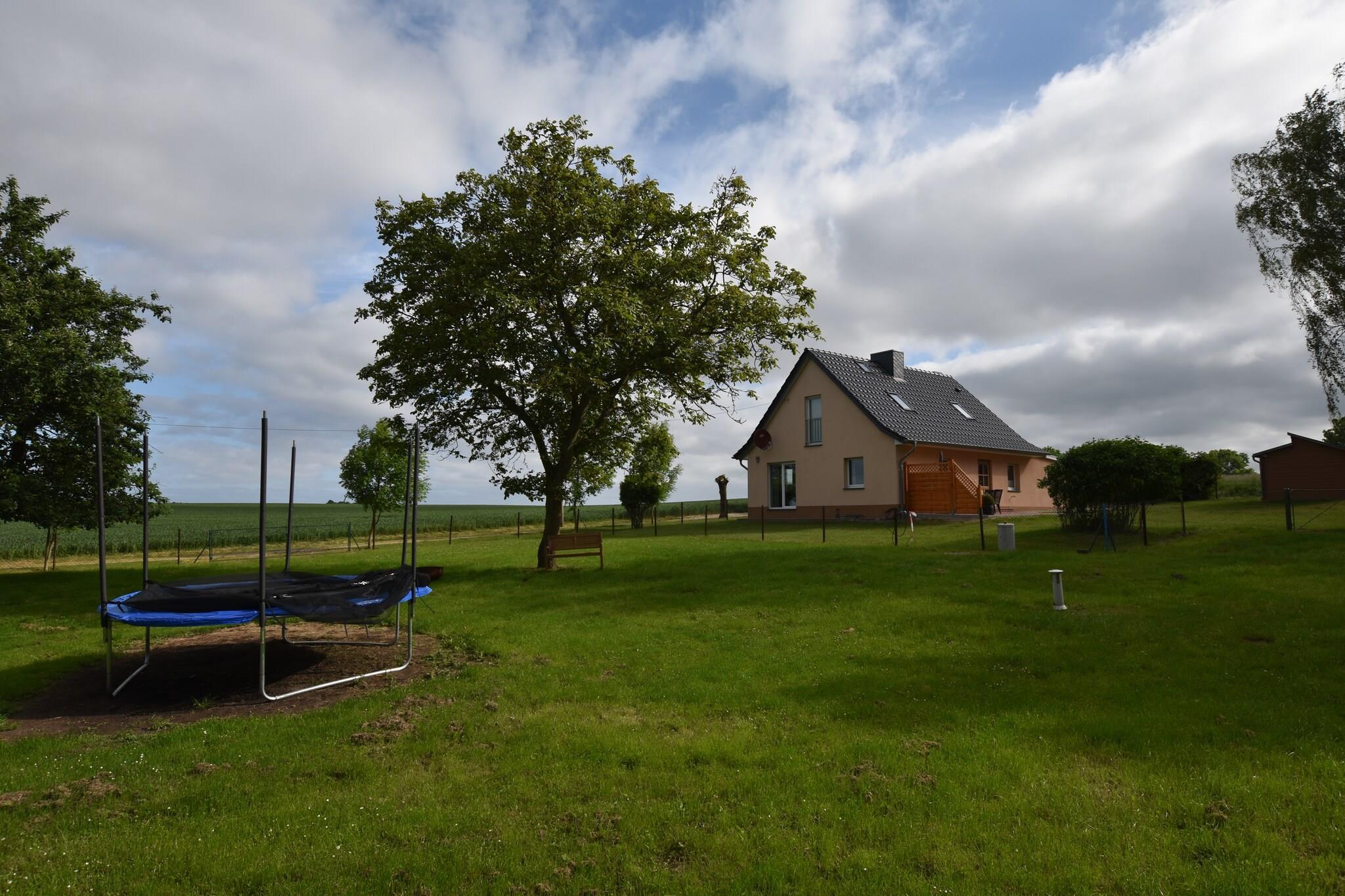 Parterre: (Küche(Esstisch, Kochherd, Dunstabzugshaube, Kaffeemaschine, Backofen, Mikrowelle, Kühlschrank), Wohn-/Schlafzimmer(Einzelklappbett , Schlafcouch 1 Pers., TV, Esstisch, Kaminofen, Herd, Sitzecke), Schlafzimmer(Doppelbett, Etagenbett), Badezimmer(Badewanne, Dusche, Waschbecken, Toilette, Waschmaschine), Kinderbett, Hochstuhl) Badewanne oder Dusche, Heizung, Terrasse, Garten(umzäunt), Fahrradabstellraum, Gartenmöbel, Liegen, Grill, Parkplatz, Trampolin, Liegestühle, Sonnenschirm, Bügelbrett, Gesellschaftsspiele