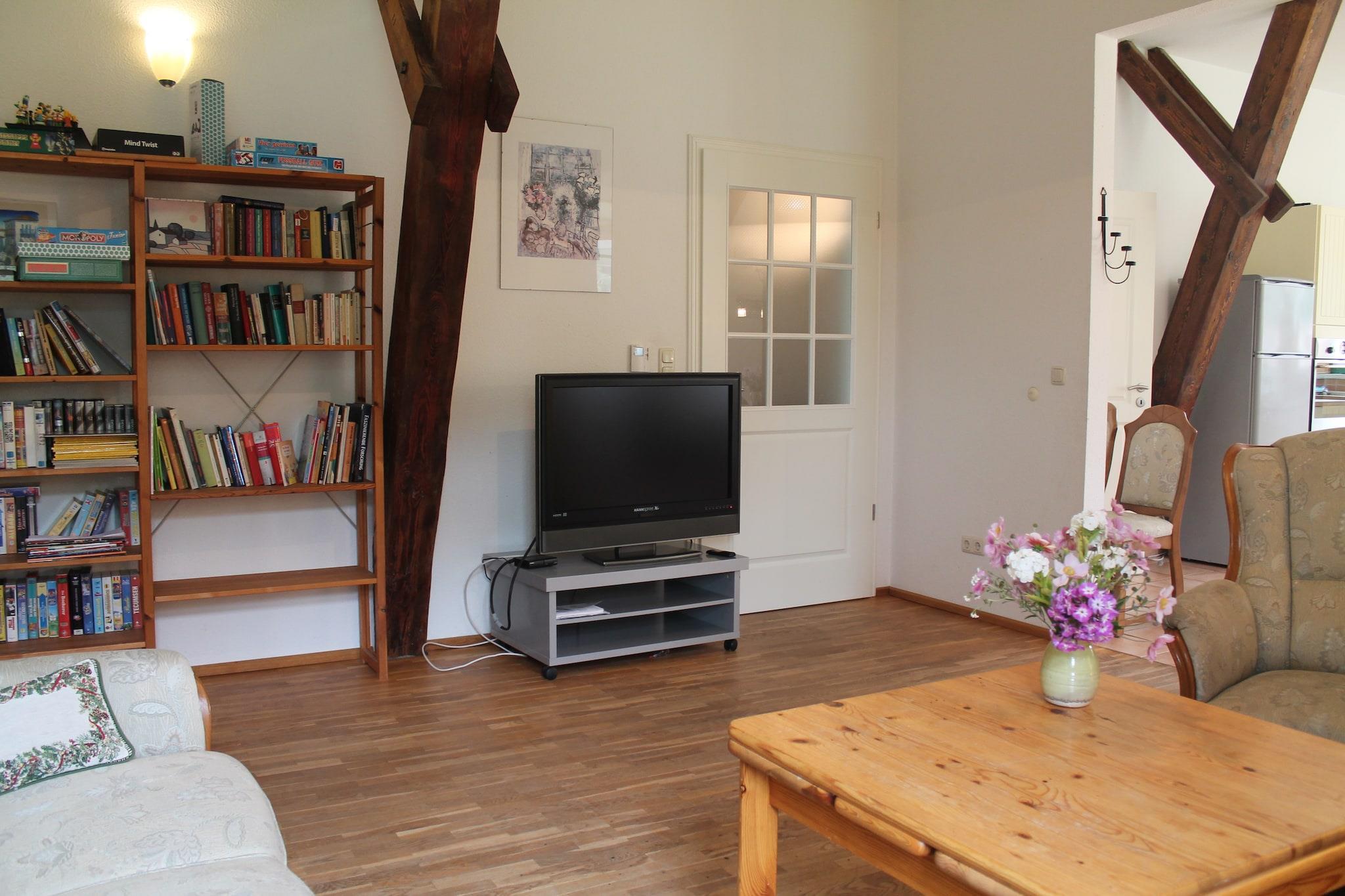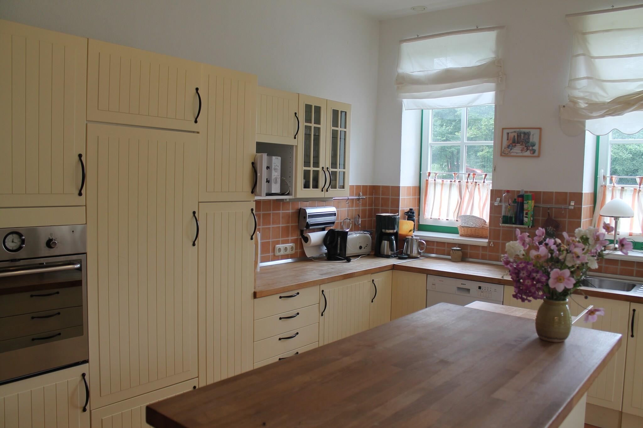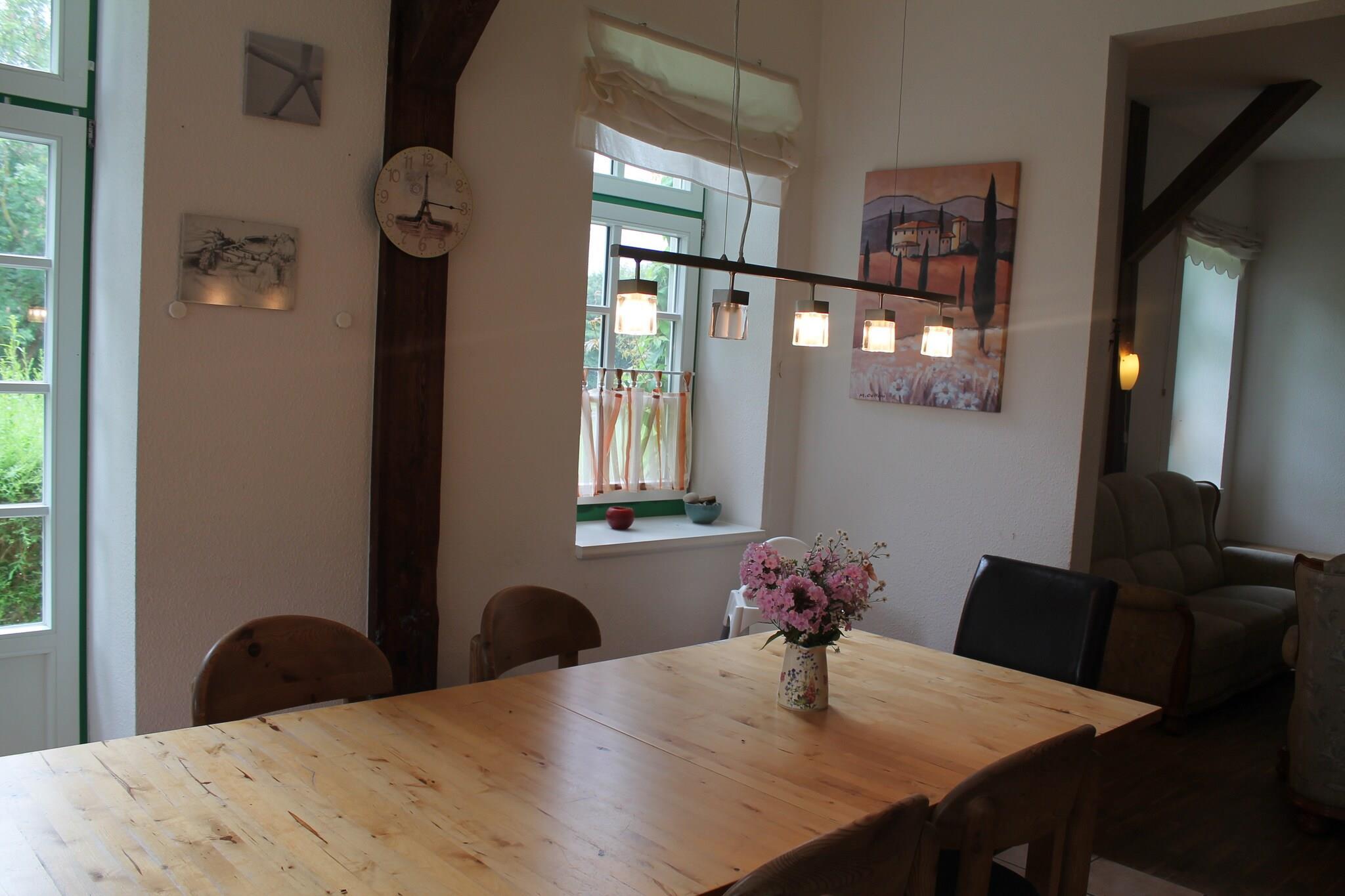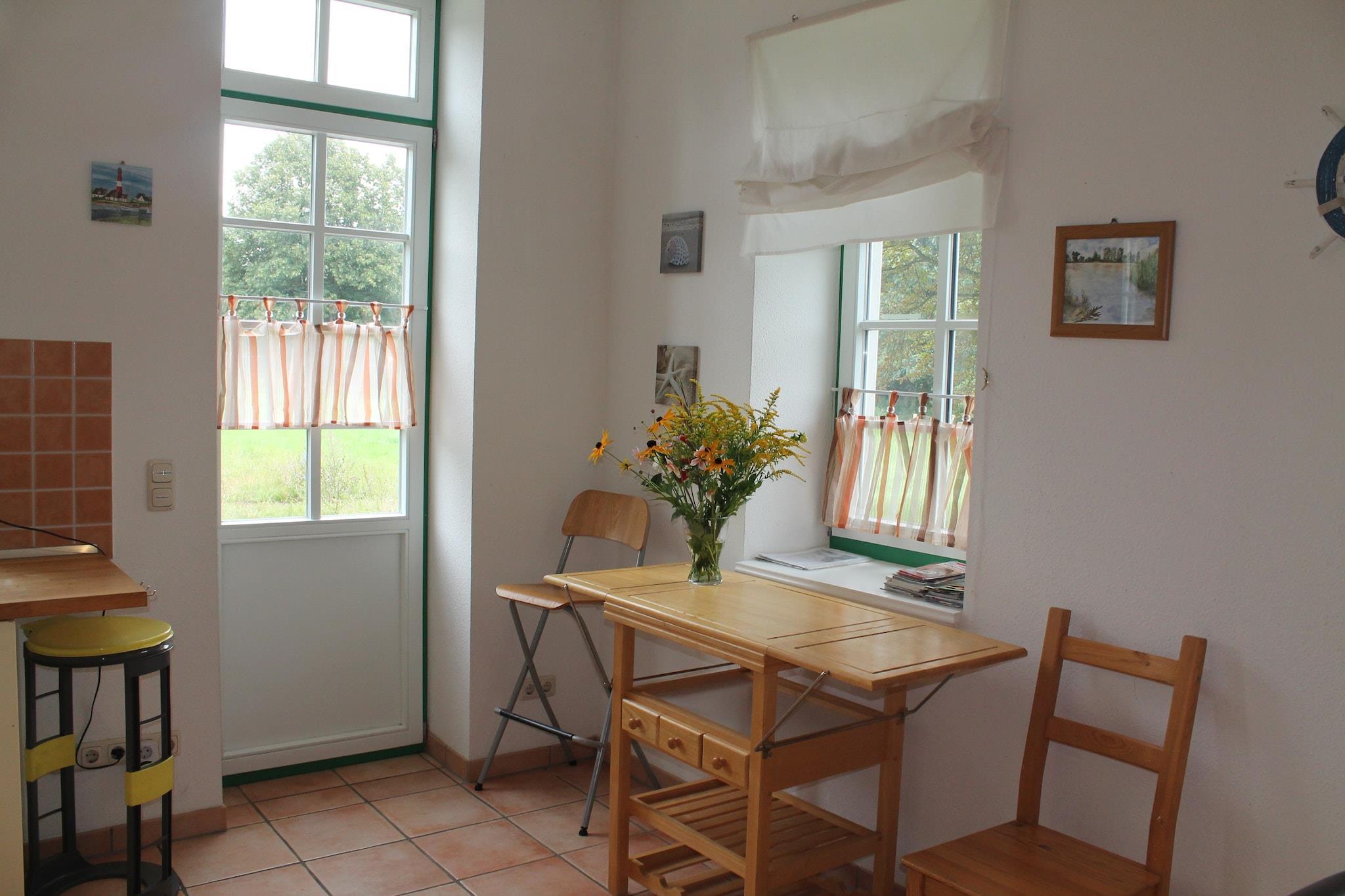 Komfortabel eingerichtete Ferienwohnung in einem alten Pferdestall, der 1937 erbaut und 2005 saniert wurde, im kleinen ruhigen Dorf Blowatz, direkt am Ostseeradweg gelegen. In dem Haus befindet sich noch eine weitere Ferienwohnung. Diese 5-Raum-Ferienwohnung bietet Platz für max. 7 Personen, liegt im Erdgeschoß mit umlaufender Terrasse (Ost-Süd-West). Zu den Räumlichkeiten gehört 1 große Wohnküche mit 6 m Küchenzeile. Es gibt 2 Terrassenausgänge. Desweiteren gibt es 1 geräumiges Wohnzimmer, 4 separate Schlafzimmer sowie 2 separate Bäder, davon ein großes Bad mit Wanne und bodengleicher Dusche und WC und ein kleines Bad mit Dusche/ WC. Babybett und Hochstuhl stehen kostenlos zur Verfügung. Bitte bringen Sie für die Kinderbetten die Bettwäsche für Ihr Kind selber mit! Für die kleinen Gäste befindet sich im Garten ein Gartentrampolin, eine Sandspielkiste, ein Klettergerüst sowie eine Schaukel. Hinweis: Jugendgruppen sind nicht erwünscht! Per Rad, zu Fuß oder auf dem Pferderücken können Sie direkt vom Haus aus viele Feld- und Waldwege erkunden. Im Ort befindet sich ein kleiner Dorfladen für den ersten Bedarf. Zum Ostseestrand sind es 3 km, mit dem Fahrrad 15 Minuten zum Naturstrand des Salzhaffs