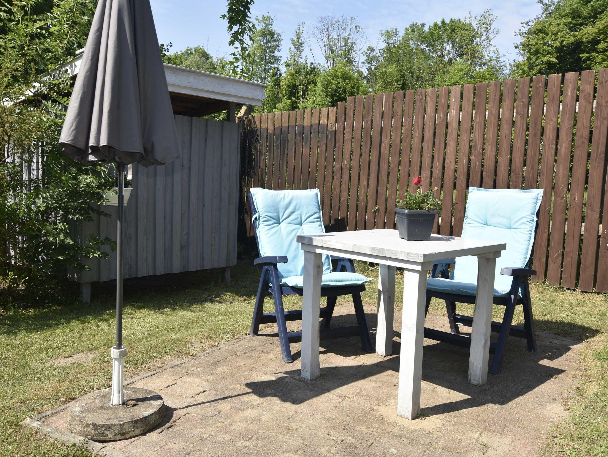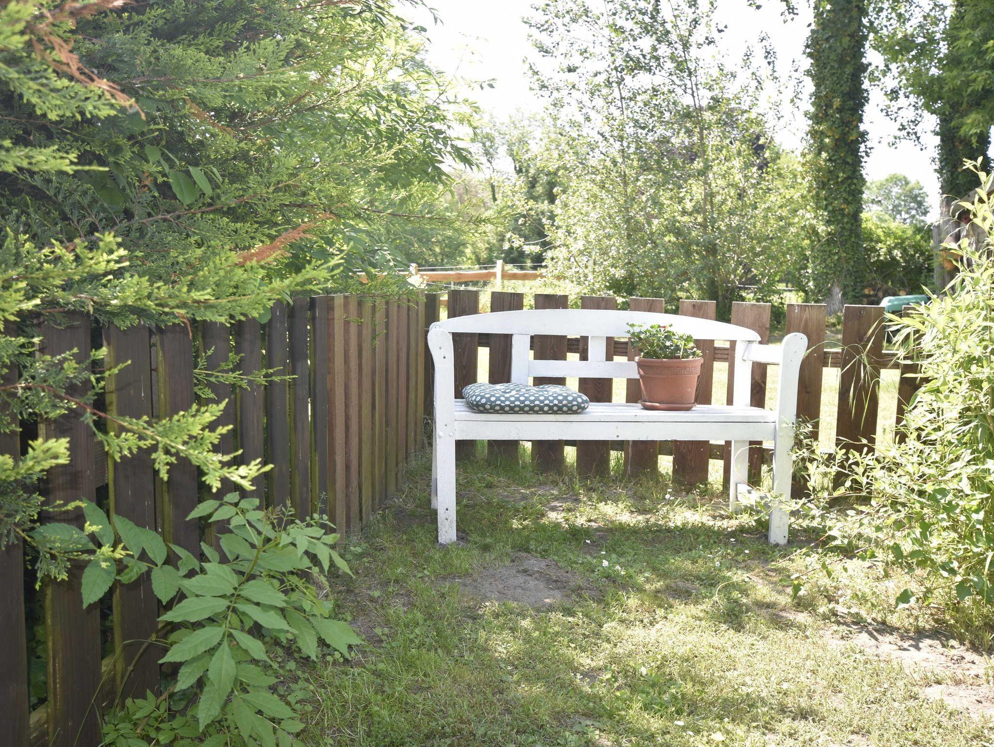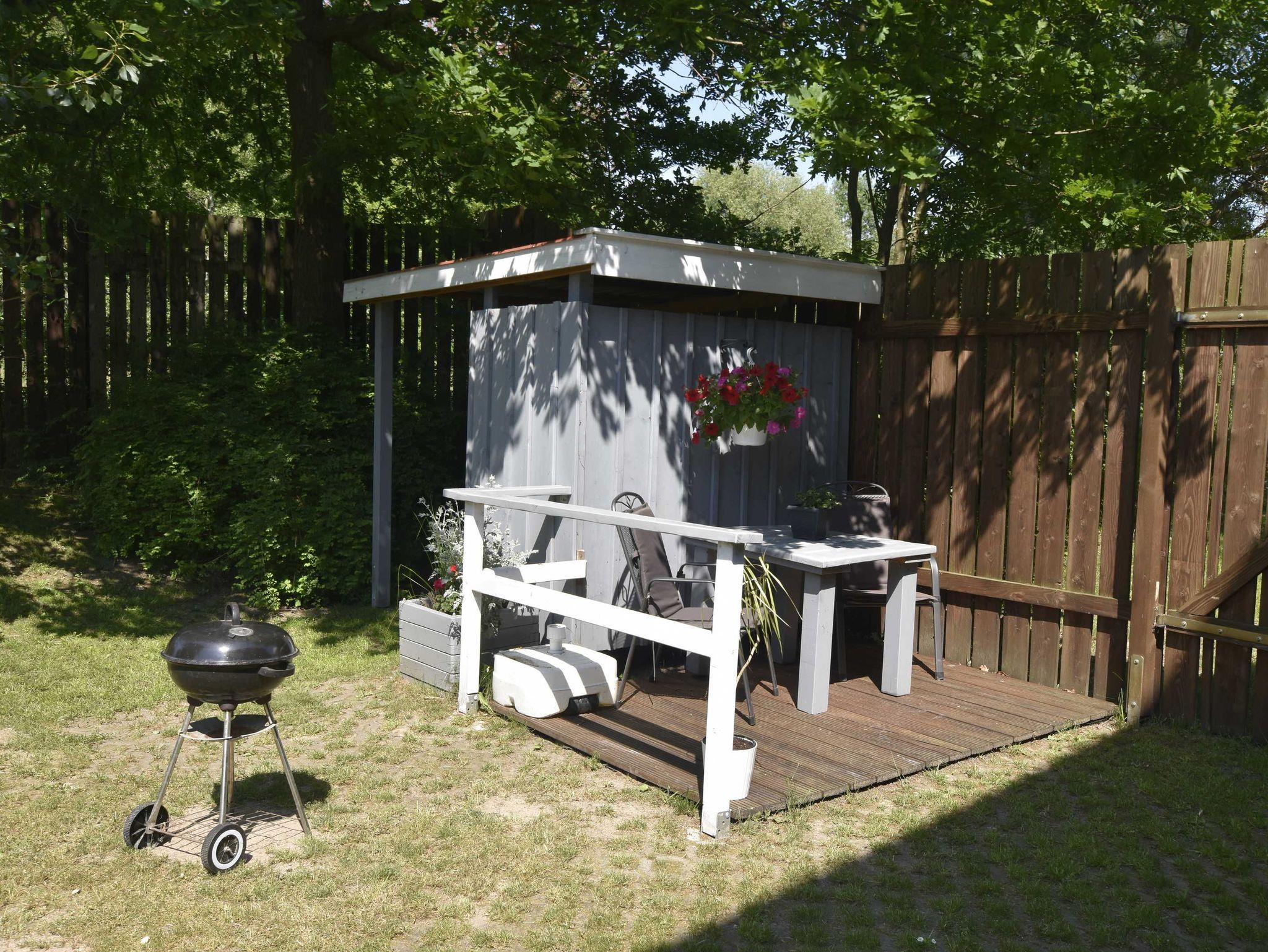 Ferienwohnung ist komplett ausgestattet mit Herd, Kühlschrank, Kaffeemachine, Bad mit Du & WC, Doppelbett und Sitzecke im Garten.