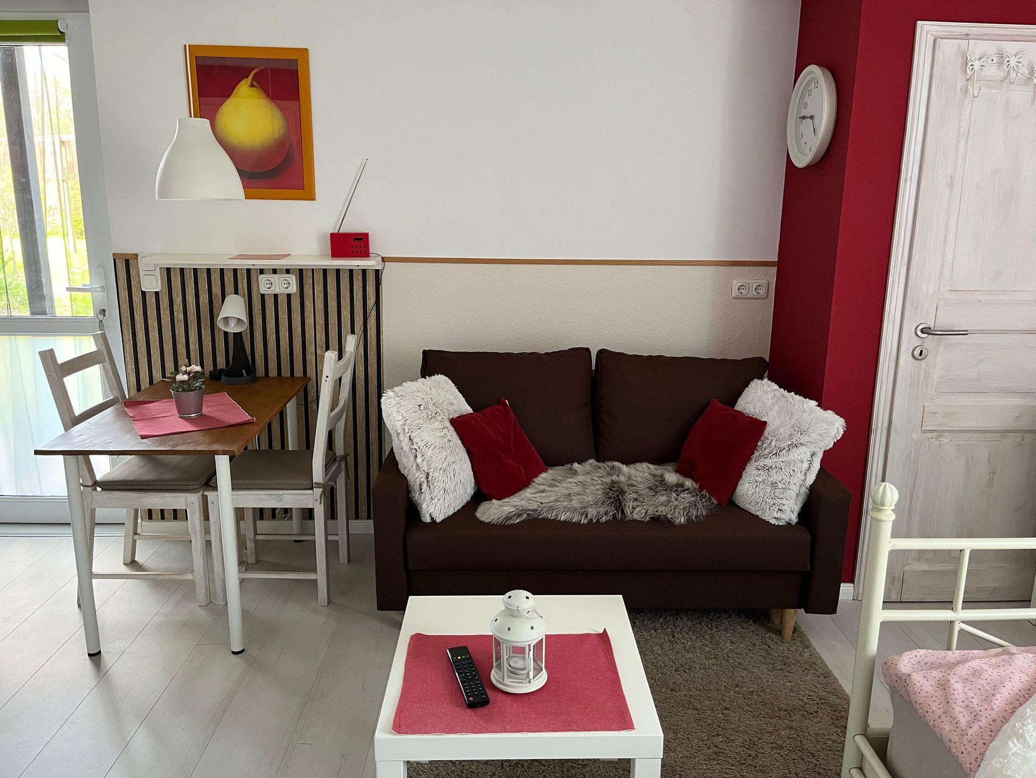 1-Raum-Ferienwohnung mit Wohn/Schlafraum im Erdgeschoß.