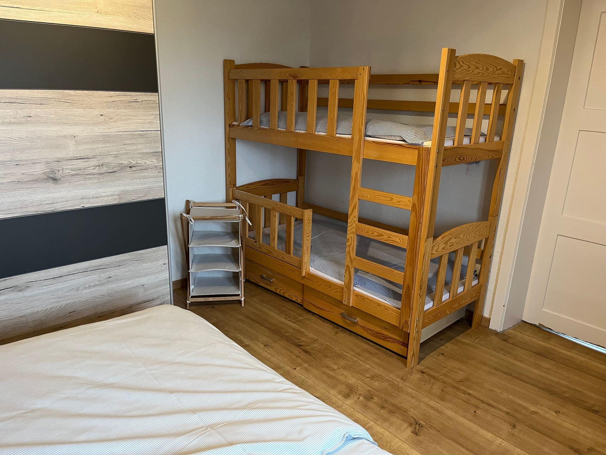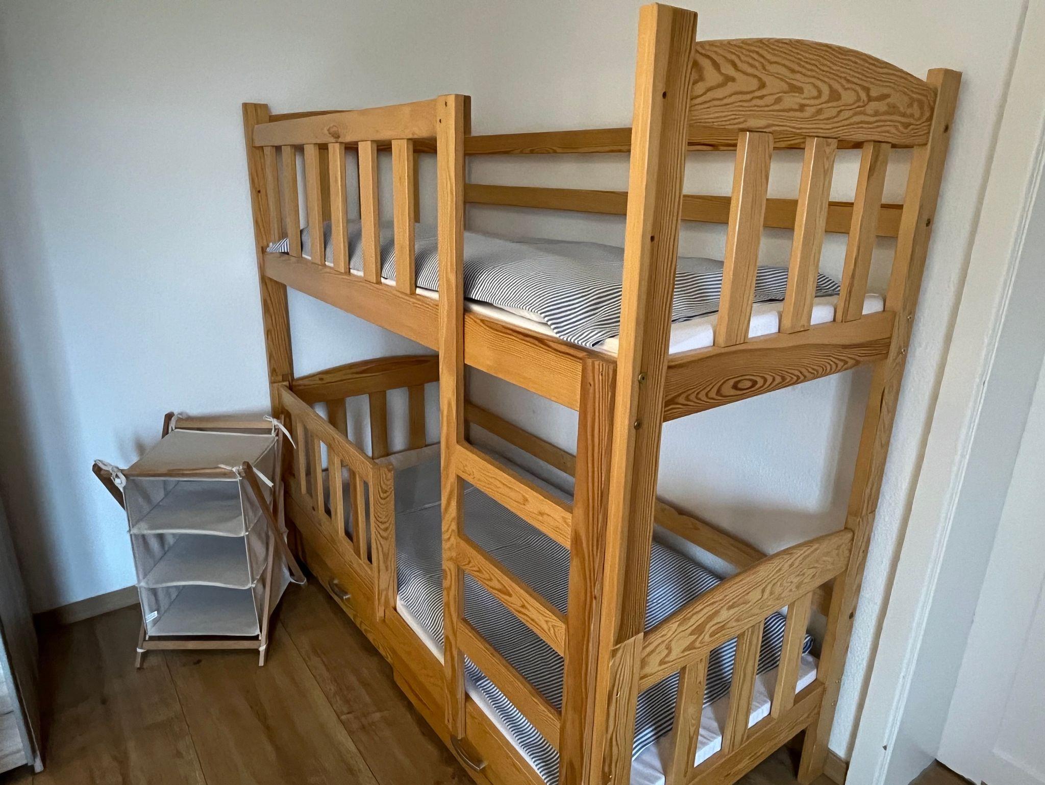 Im Schlafzimmer steht ein Doppelstockbett speziell für Kinder (bis 10 Jahre).