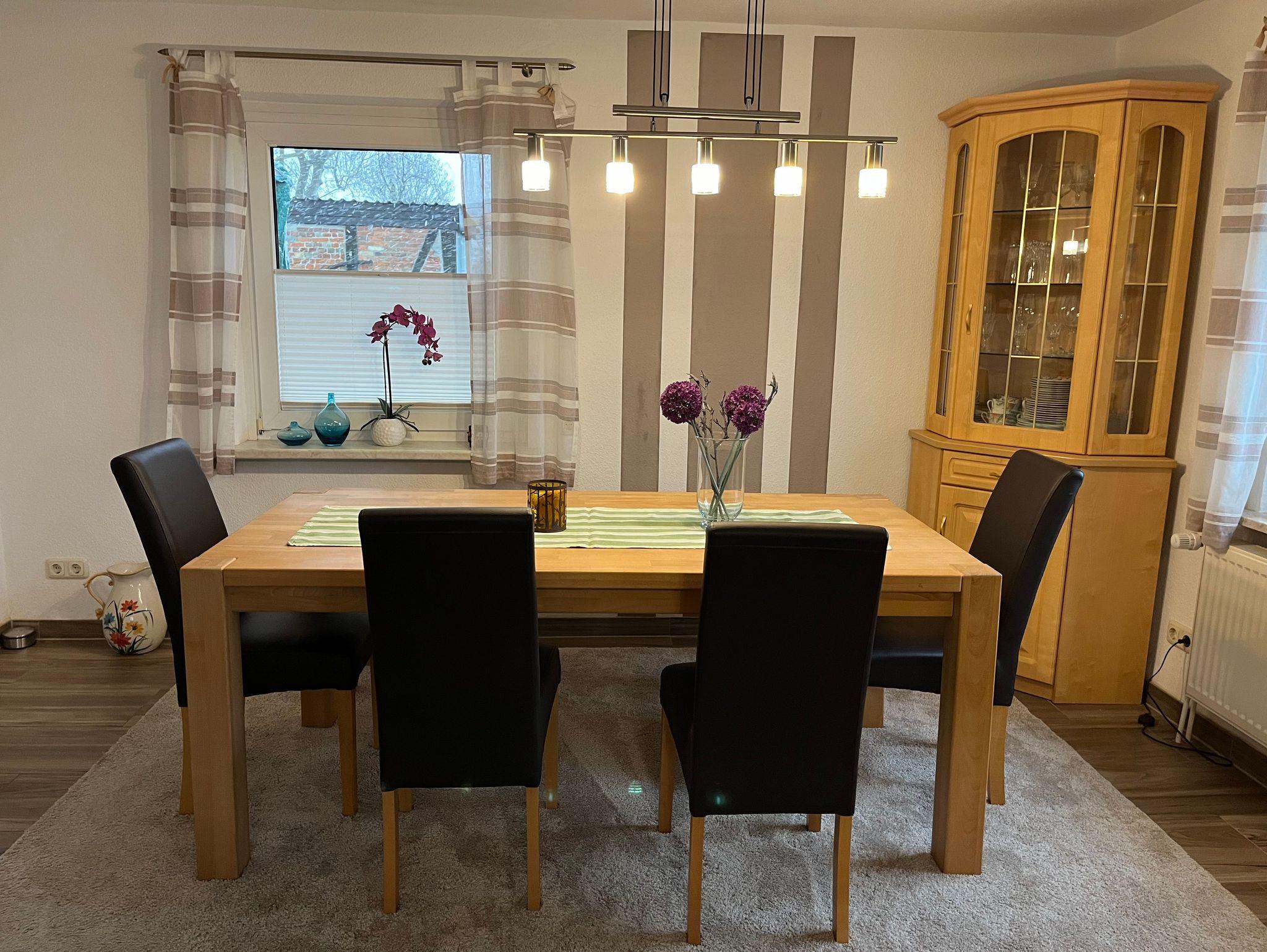 2-Zimmer-Ferienhaus (bis zu 5 Personen). Wohnzimmer (mit Schlafcouch), extra Küche, 1 Schlafzimmer, Badezimmer mit Badewanne, Dusche/WC. Die Wohnung ist liebevoll eingerichtet und sehr gepflegt. Den Urlaubern steht der Garten mit Möbeln und Grill zur Verfügung.