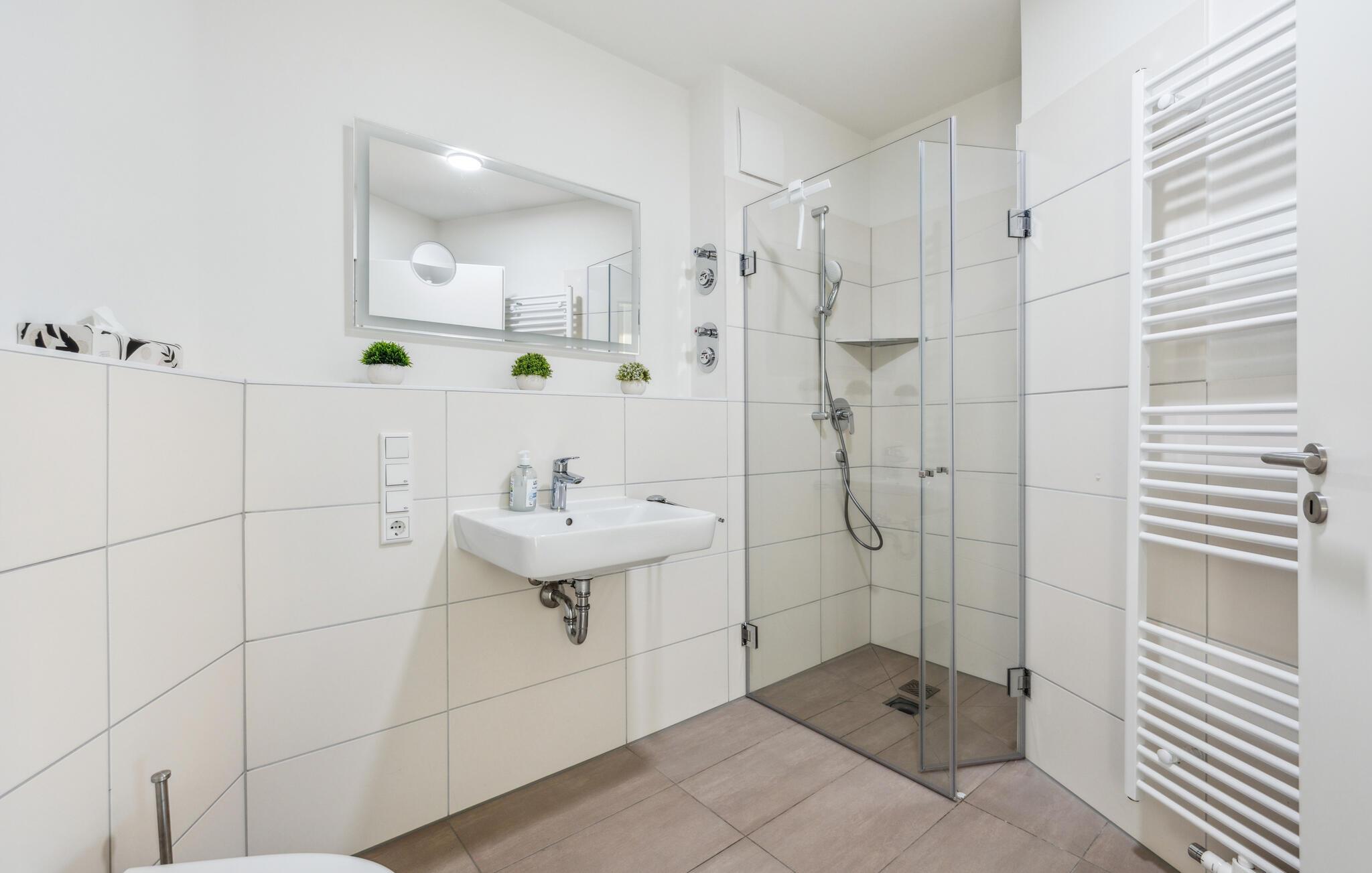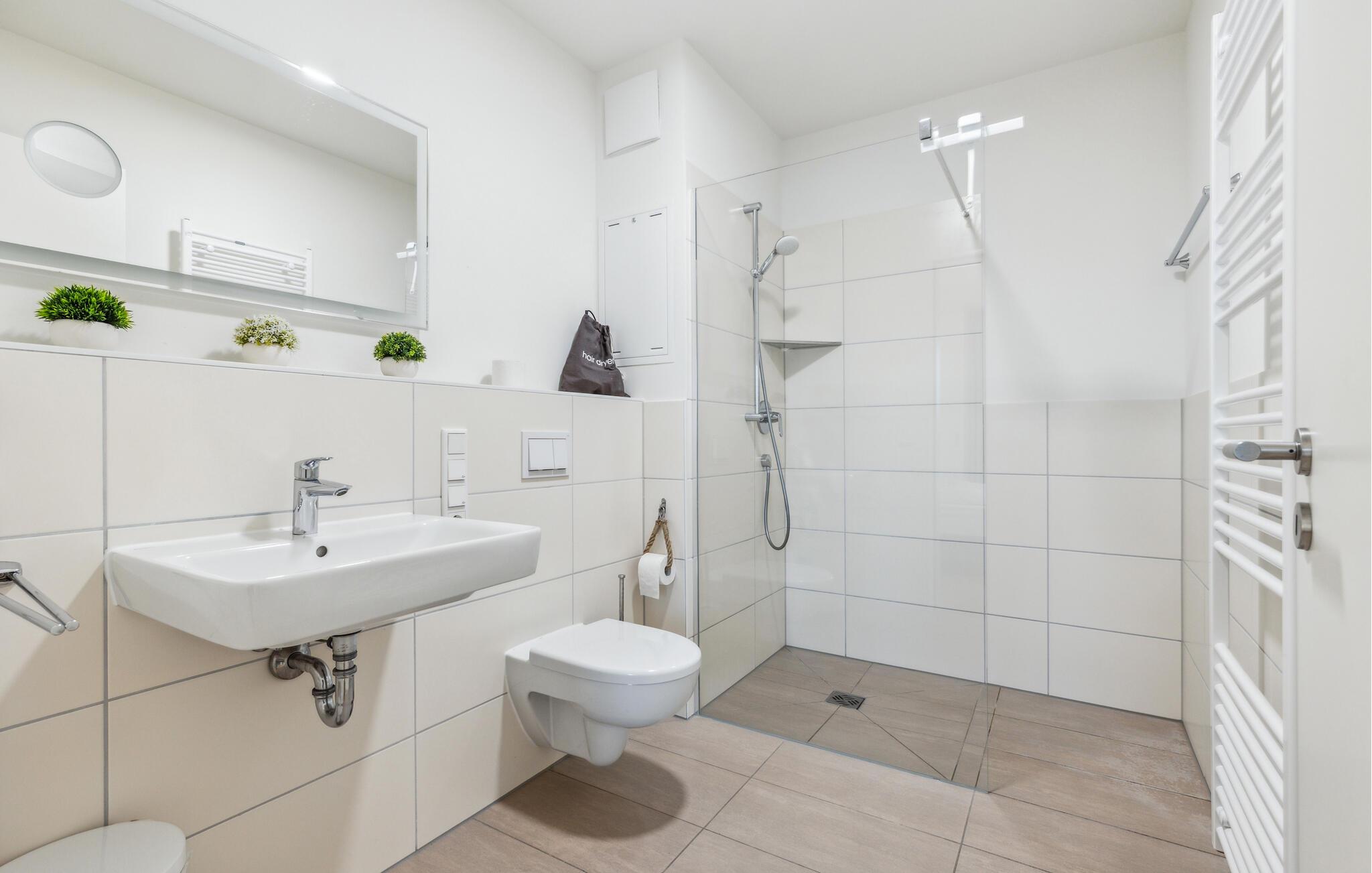Beide Bäder sind großzügig gestaltet und mit bodengleichen Duschen versehen.