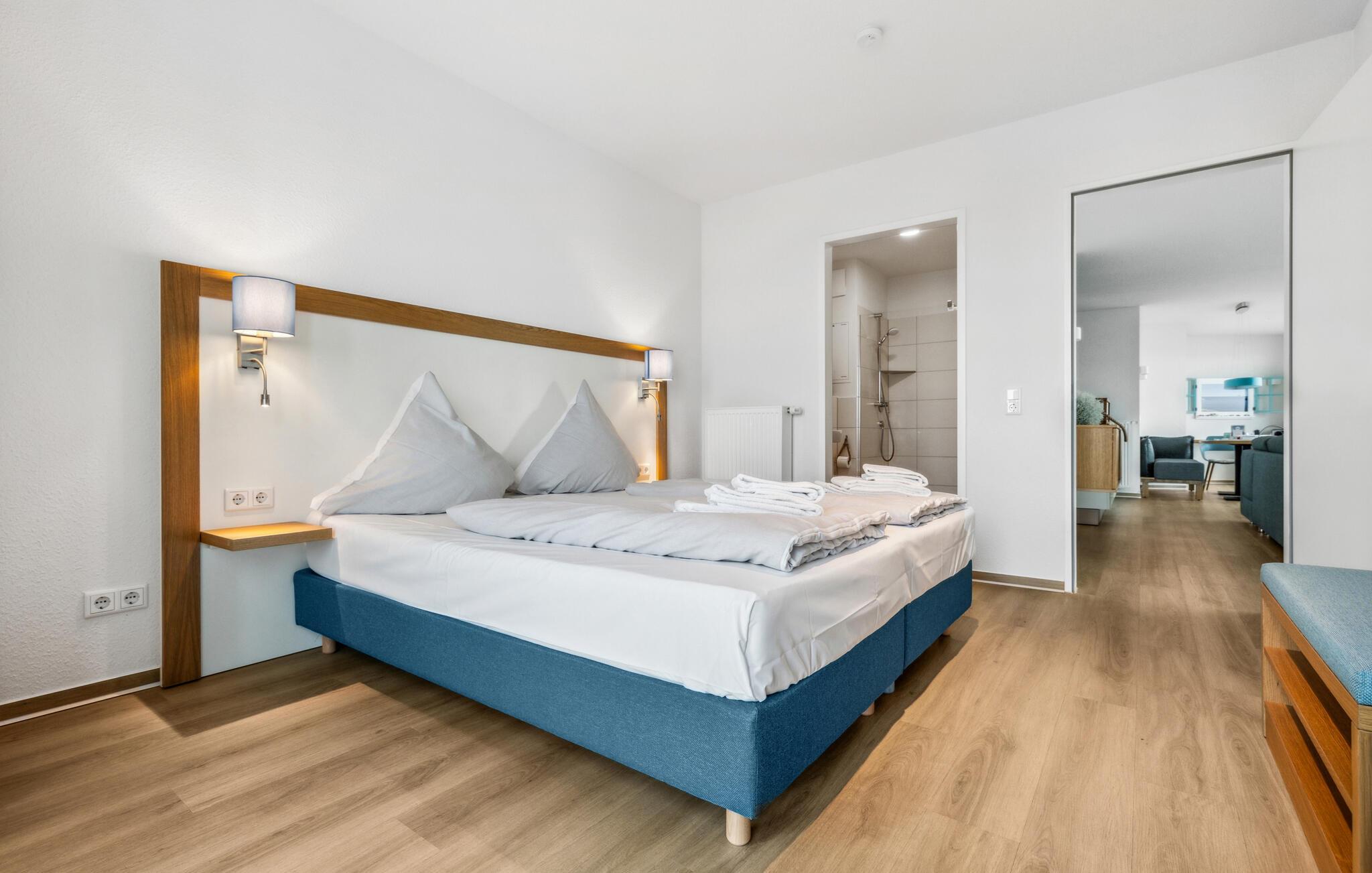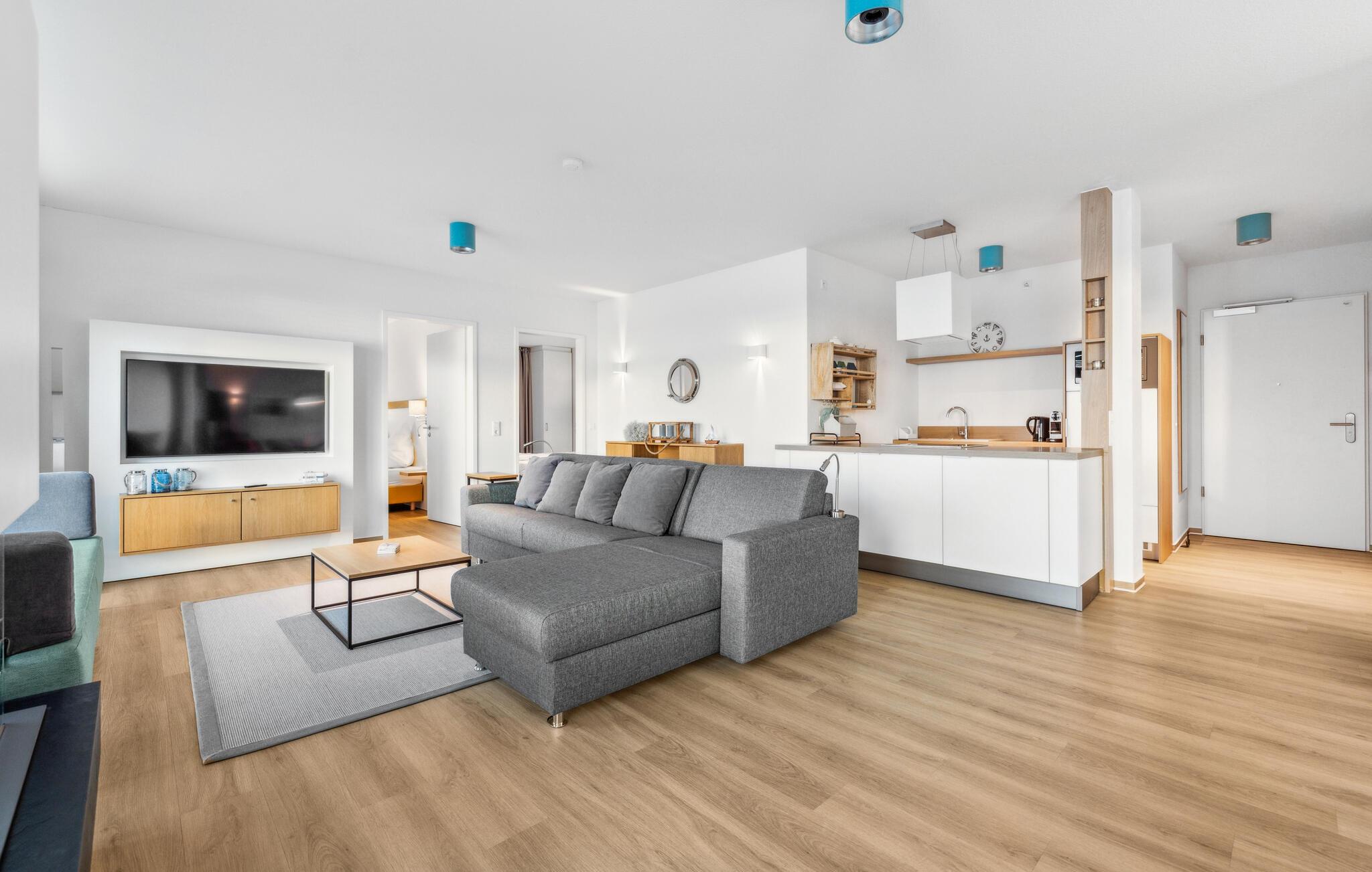 In dem Nebengebäude des Komplexes wartet ein exklusiver Pool- und Wellnessbereich auf die Gäste, der selbstverständlich kostenfrei genutzt werden kann. Tauchen Sie ein in das angenehm temperierte Wasser und lassen Sie Ihren Blick über die Weite der Ostsee schweifen – ein Erlebnis für alle Sinne. Wohltuende Saunagänge laden zum Verweilen ein und schenken Ihnen tiefe Entspannung. Gönnen Sie sich diese kleinen Auszeiten und lassen Sie den Alltagsstress hinter sich – für einen Urlaub voller Ruhe, Genuss und neuer Energie.