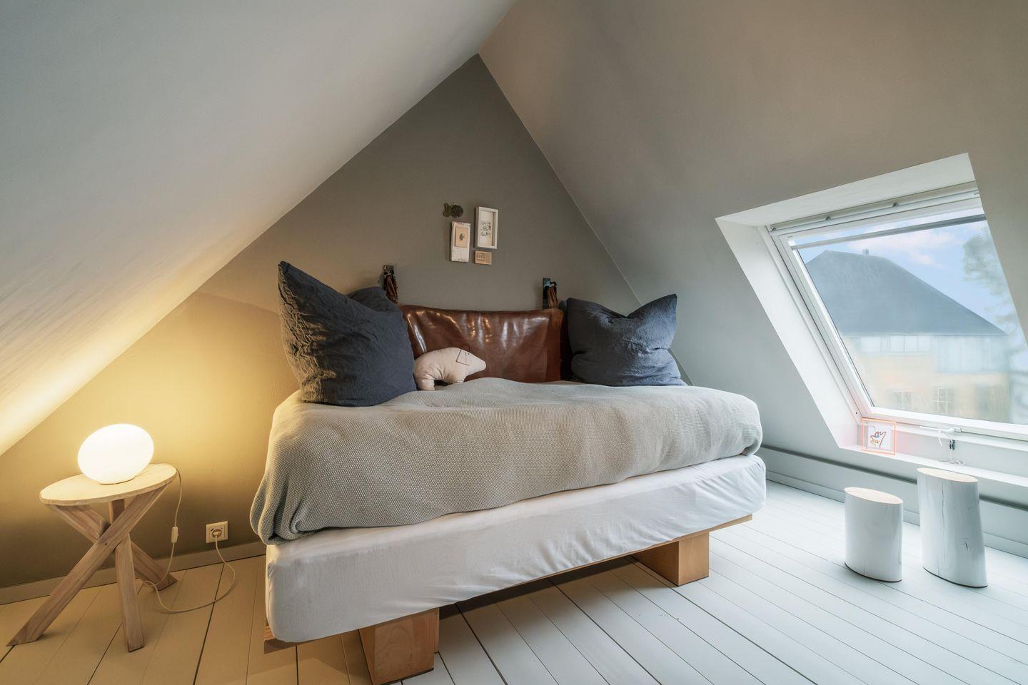 Der großzügige Wohnbereich mit Rund-Um-Meerblick liegt im Obergeschoss und hält eine große, umfangreich ausgestattete Küche, einen Holzofen und eine gemütliche Sofa-TV-Ecke bereit. Der lange Esstisch, der das Zentrum des Wohnbereiches bildet, bietet nicht nur das perfekte Setting, um in geselliger Runde zu tafeln, sondern auch für Spieleabende und lange Gespräche. Genießt hier gemeinsame Stunden mit Blick auf die Flensburger Förde. Von hier aus gelangt man auch auf die erhöhte Terrasse mit Blick auf die Ostsee. Auf den Terrassen rund ums Haus gibt es Platz für jede Tageszeit. Im Haus bietet eine Galerie über dem Wohnbereich, Platz für Workation oder eine Mittagsstunde.