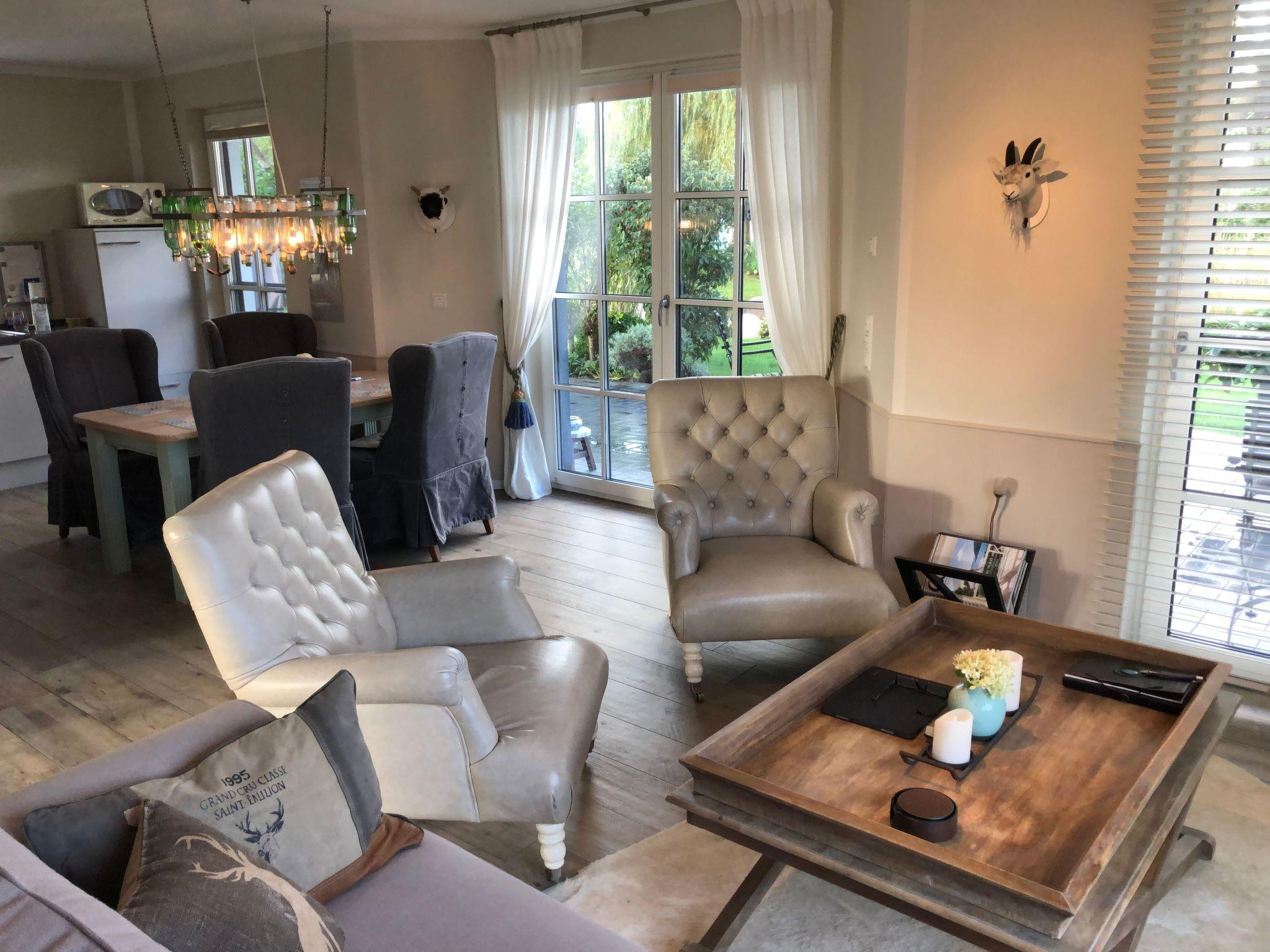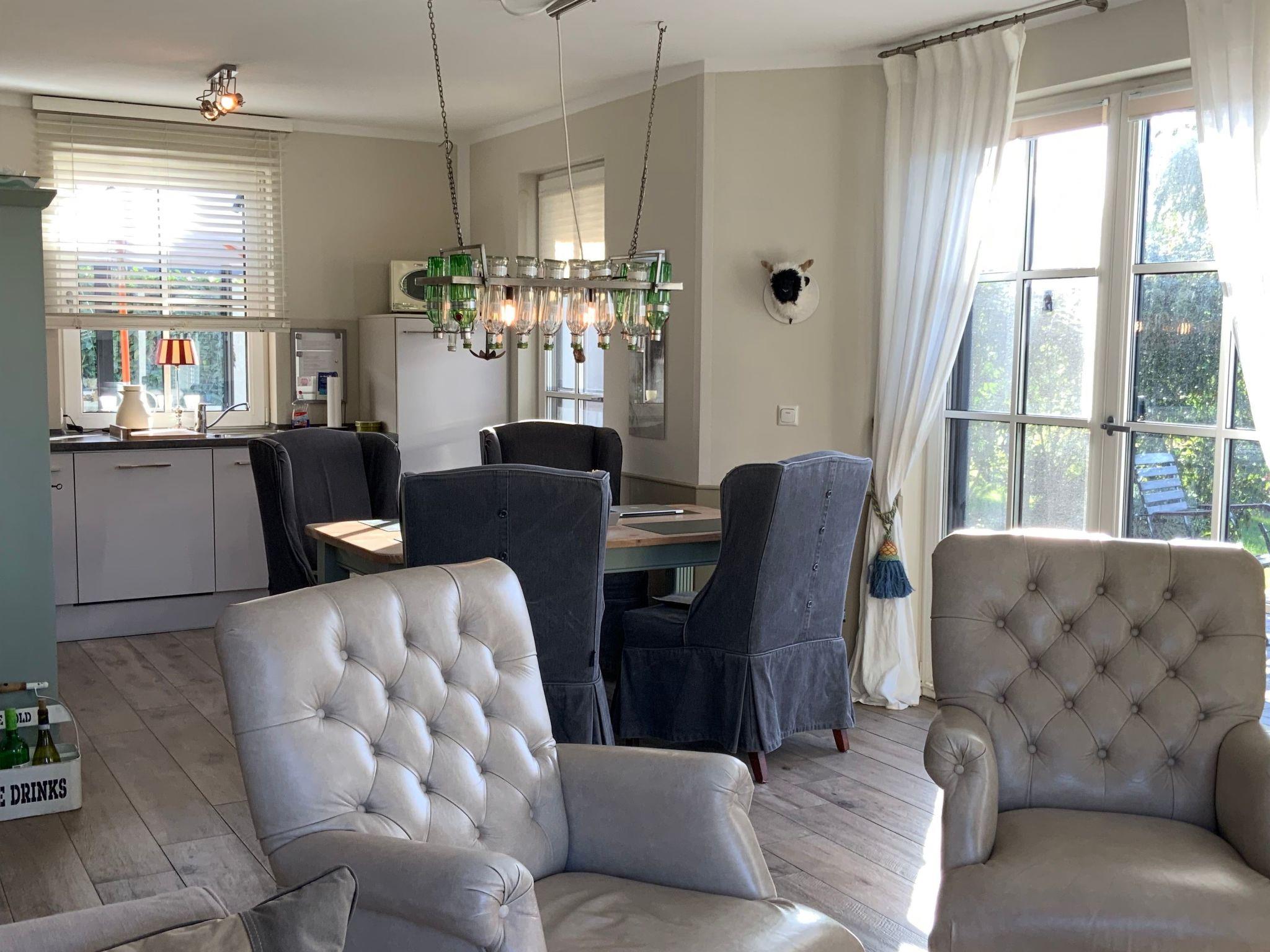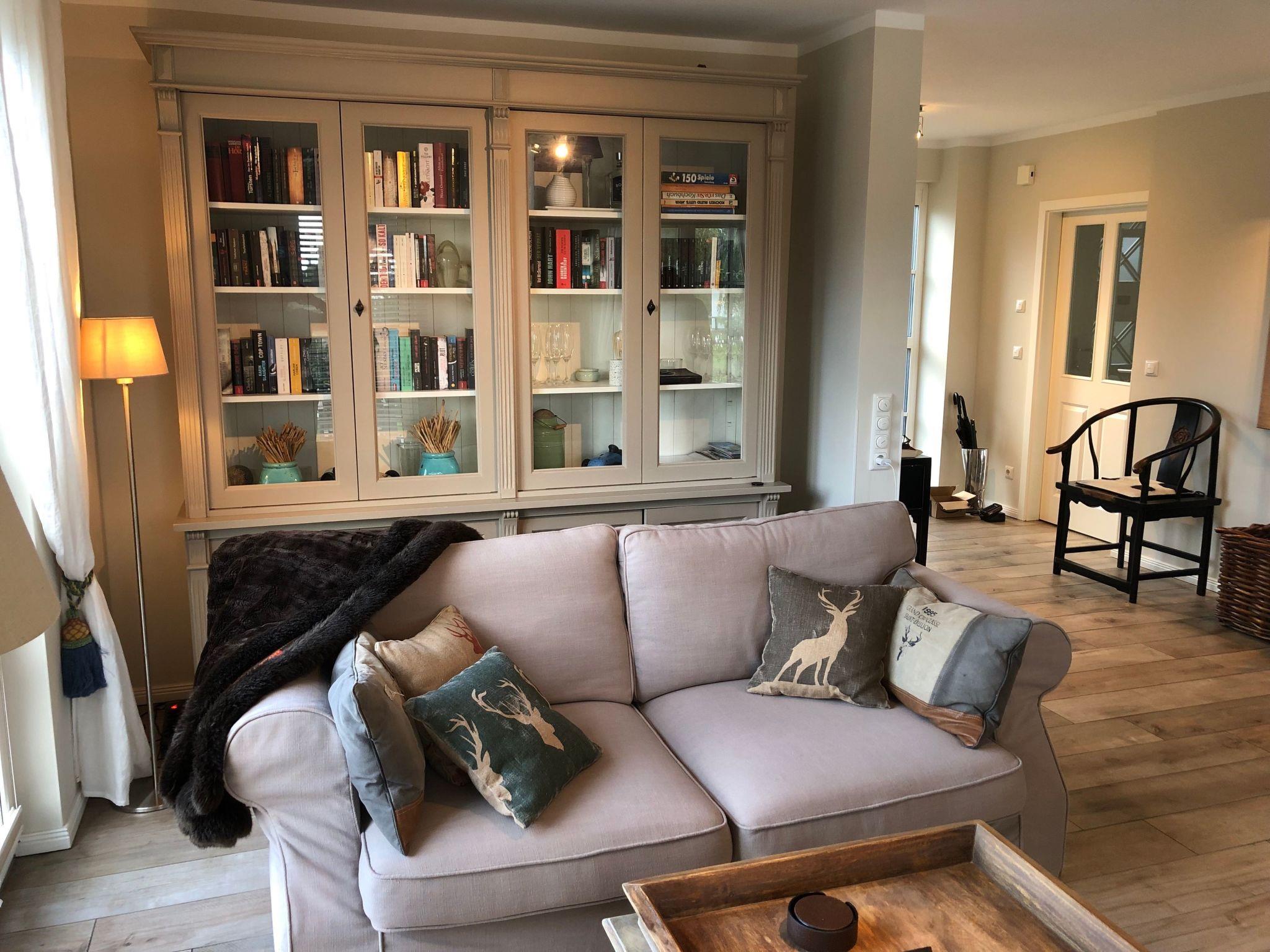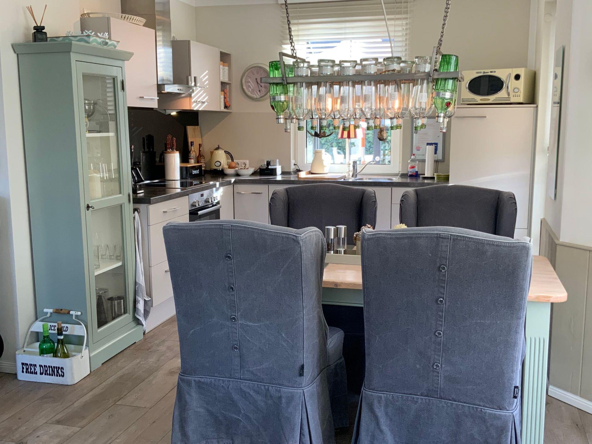 Die hochwertige Einrichtung im Landhausstil und der herrliche Garten am großen Teich, lassen Ihren Urlaub sofort beginnen. Im Erdgeschoss erwartet Sie ein großzügiger Wohn-Essbereich mit voll ausgestatteter Einbauküche, Esstisch mit Blick aufs Wasser, Sitzecke mit Flachbild-TV, Musikanlage mit iPad und kostenlosen WLAN-Internet-Zugang über Glasfasernetz. Das Haus ist mit 5 *****, der höchst möglichen Auszeichnung des DTV ausgezeichnet. Dies bedeutet eine erstklassige Ausstattung mit exklusivem Komfort sowie ein großzügiges Angebot in hervorragender Qualität und gepflegtem außergewöhnlichem Gesamteindruck. Eine Fußbodenheizung im ganzen Haus, Gäste-WC, Garderobe und Hauswirtschaftsraum mit Waschmaschine gehören zur Ausstattung. Ein Kaminofen sorgt für eine wohlige und stimmungsvolle Atmosphäre auch an kühlen Tagen. Das Holz für die Erstbefeuerung stellen wir Ihnen gerne zur Verfügung, Mehrbedarf ergänzen Sie bitte. Für einen erholsamen Schlaf befinden sich im Obergeschoss zwei Schlafzimmer mit komfortablen Boxspringbetten. Im großen Bad mit ebenerdiger großer Dusche und Eckbadewanne genießen Sie die finnische Sauna. Gerne können Sie Ihren Hund mitbringen, vorzugsweise gut erzogen. Die Mitnahme von mehreren Hunden wird hingegen nicht erlaubt, auch Katzen sind nicht gestattet. .